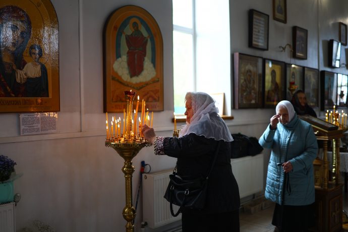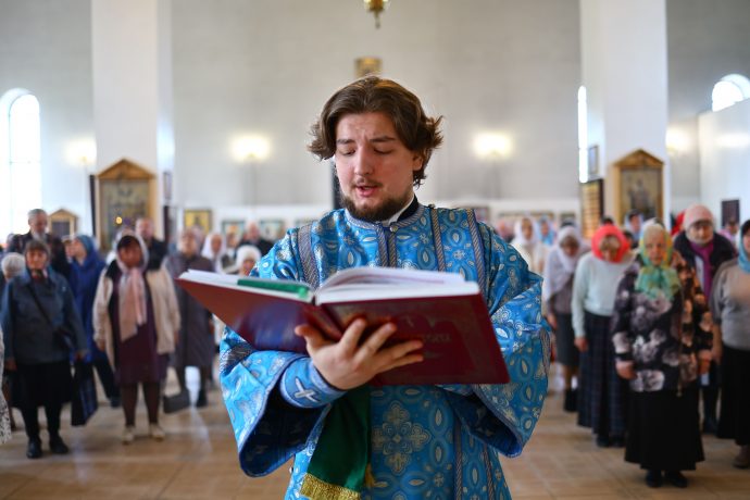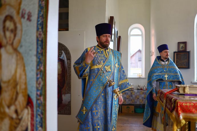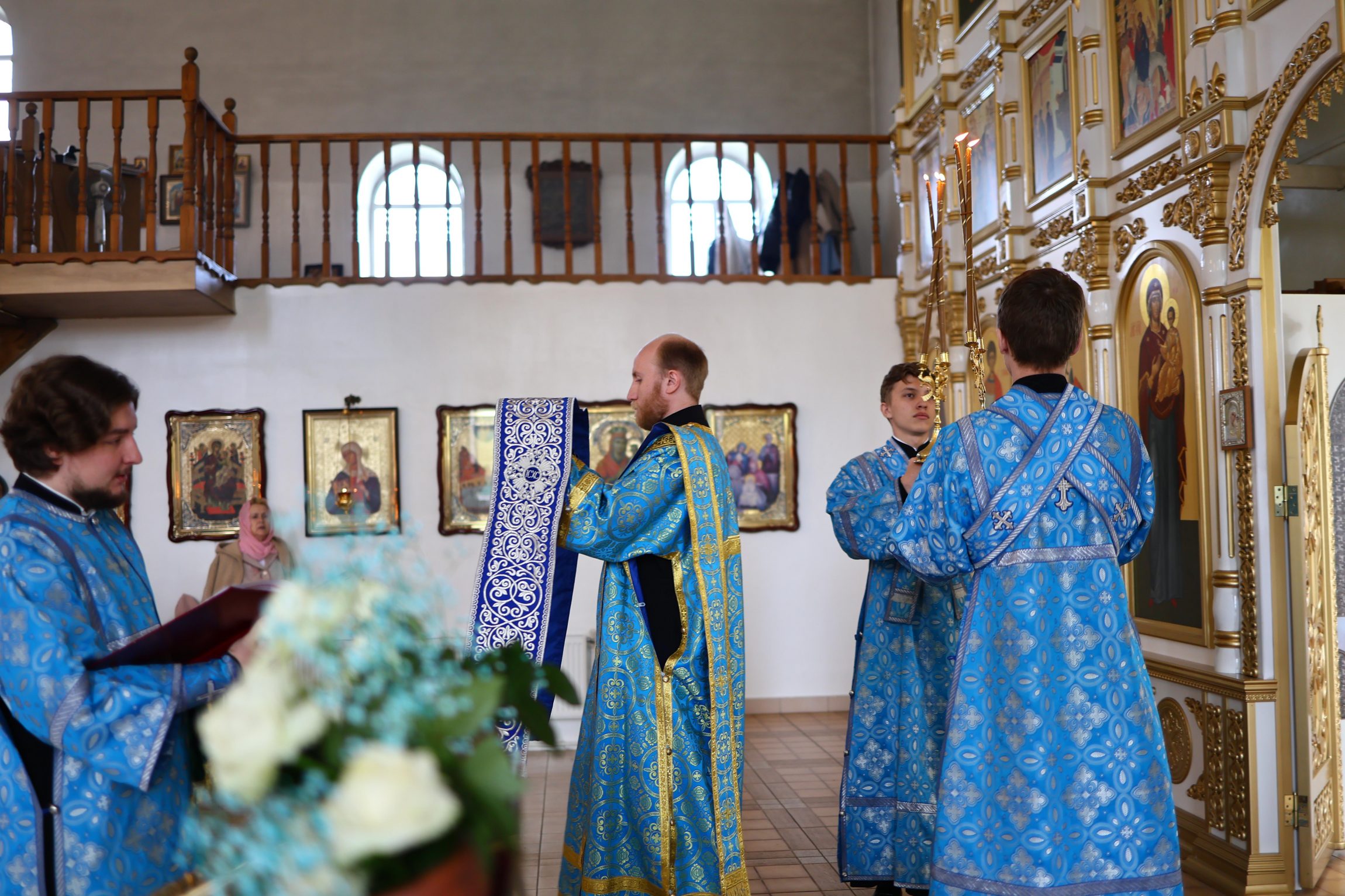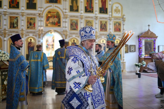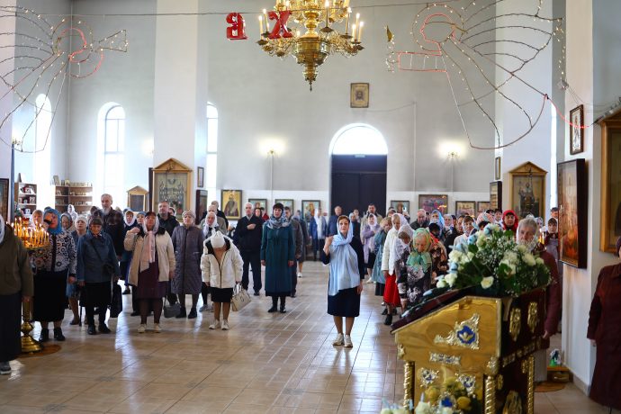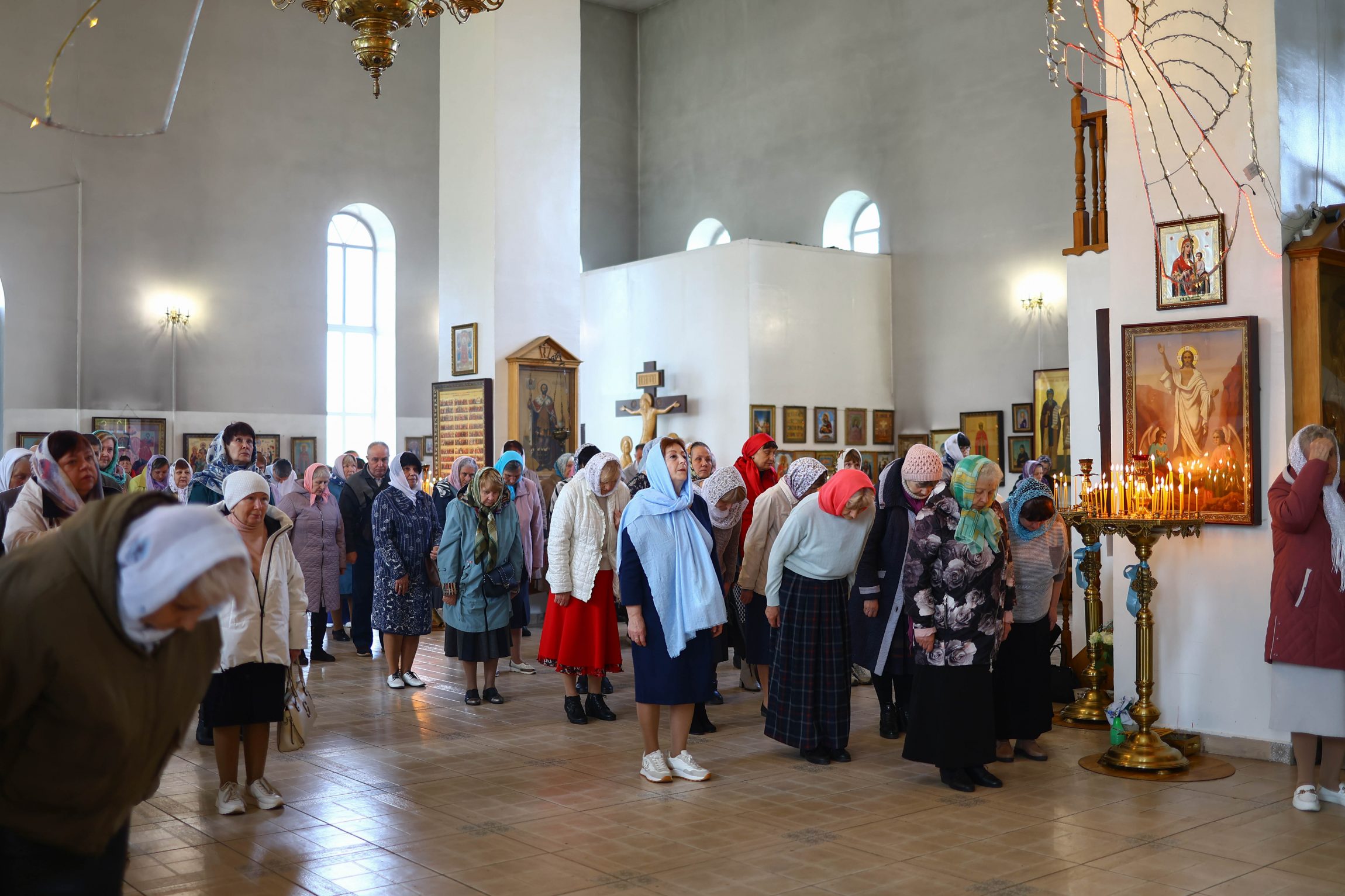 На сугубой ектении вознесены молитвы о благопоспешении христолюбивому Российскому воинству в установлении мира в сию лихую годину, на Святую Русь нашедшую, о мире на Украине, а также о сохранении единства святого Православия.