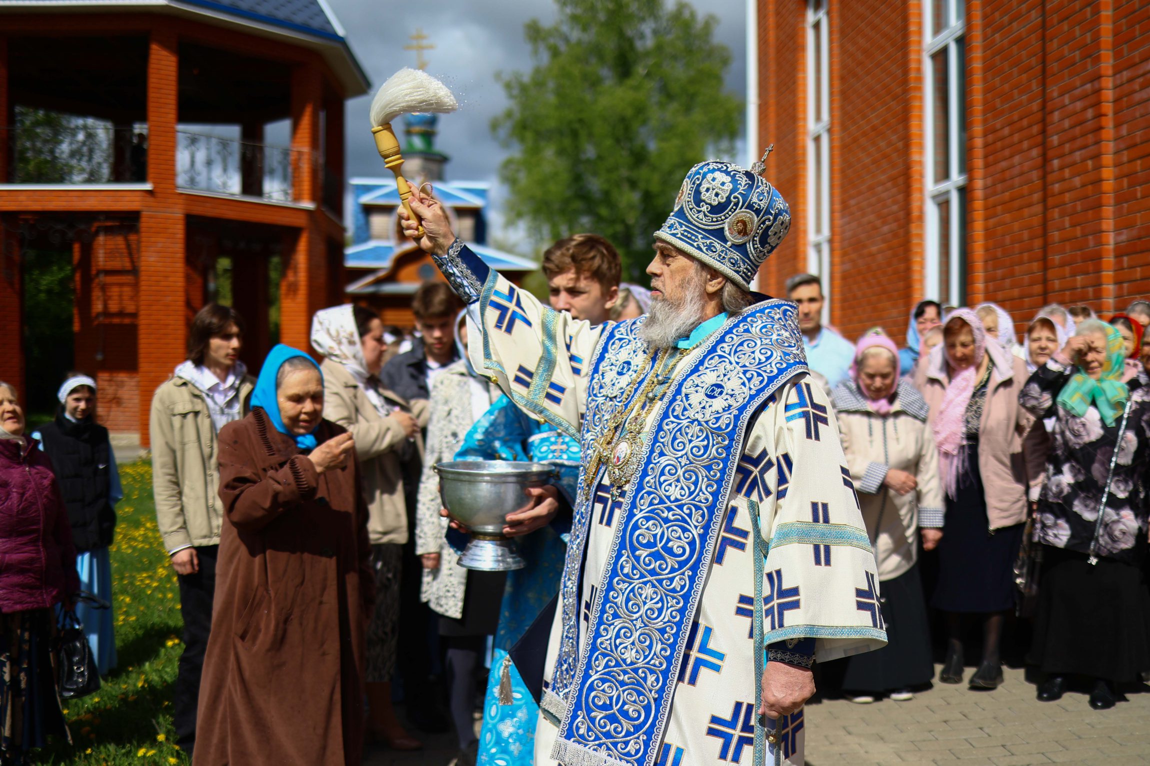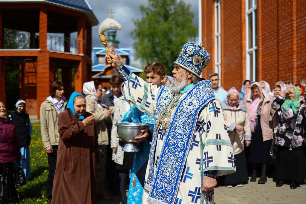 По окончании Литургии владыка обратился к участникам соборной молитвы с приветствием и словом назидания: «В благословенный день Преполовения Пятидесятницы, счастливо совпавший в этом году с престольным праздником сего святого храма, днем молитвенного чествования Пресвятой Госпожи Владычицы нашей Богородицы и Приснодевы Марии, ради чудодейственного Ее пребывания с нами в образе Её, именуемом «Нечаянная Радость», словом мира и любви о Воскресшем Христе Жизнодавце приветствую всех вас, всечестные отцы и возлюбленные о Господе братья и сестры, жители богоспасаемого града Киреевска и прихожане сего дома Пресвятой Богородицы!