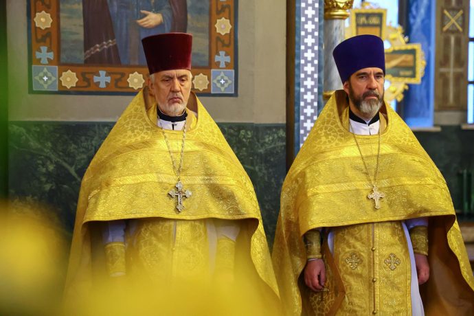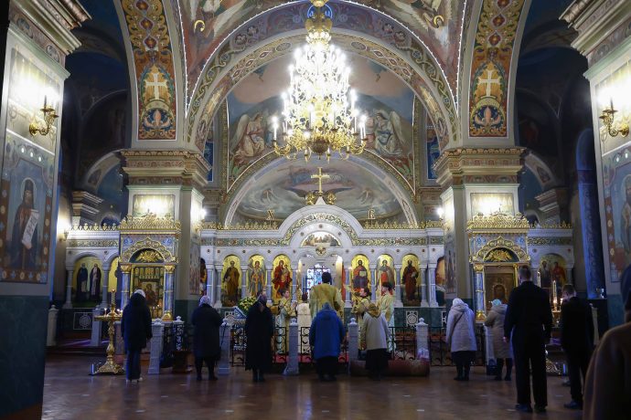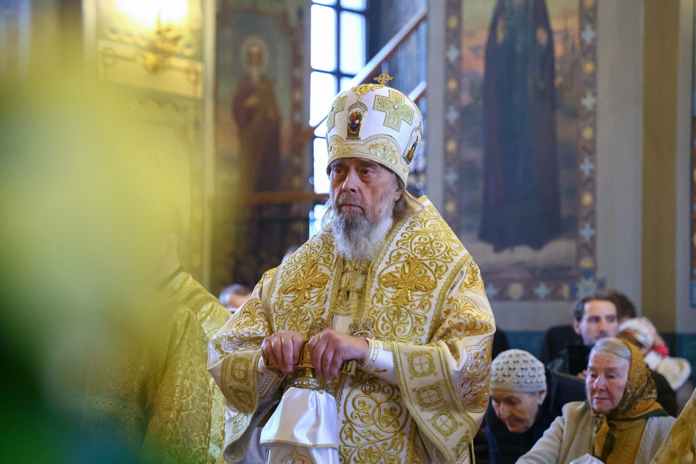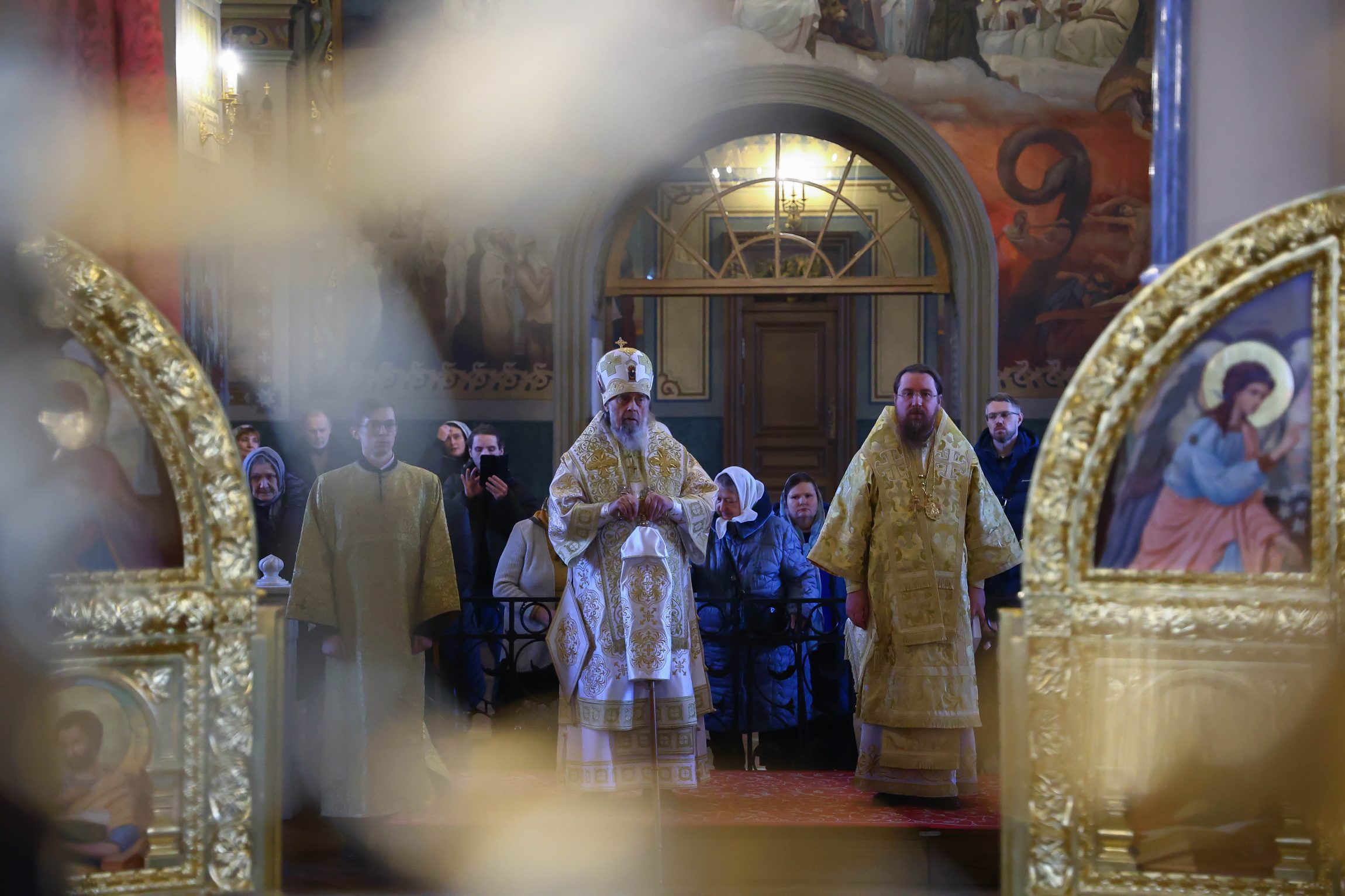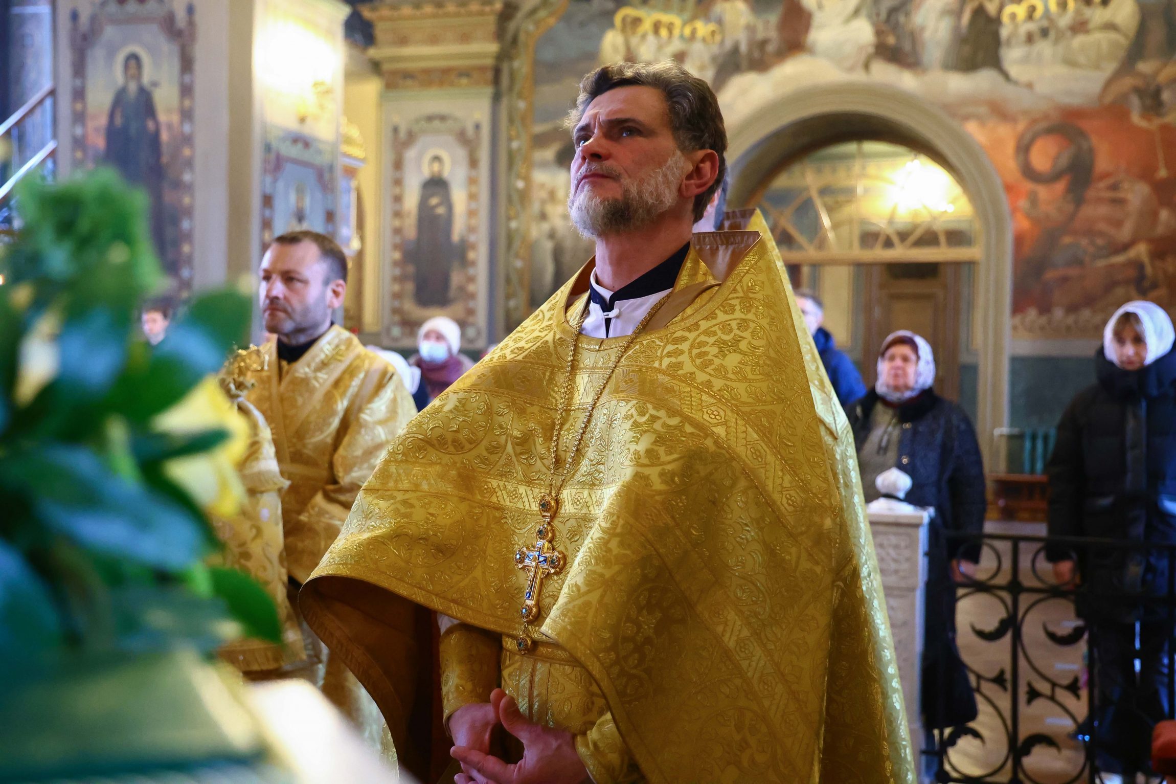 На сугубой ектении вознесены молитвы о благопоспешении христолюбивому Российскому воинству в установлении мира в сию лихую годину, на Святую Русь нашедшую, о мире на Украине, а также о сохранении единства святого Православия.