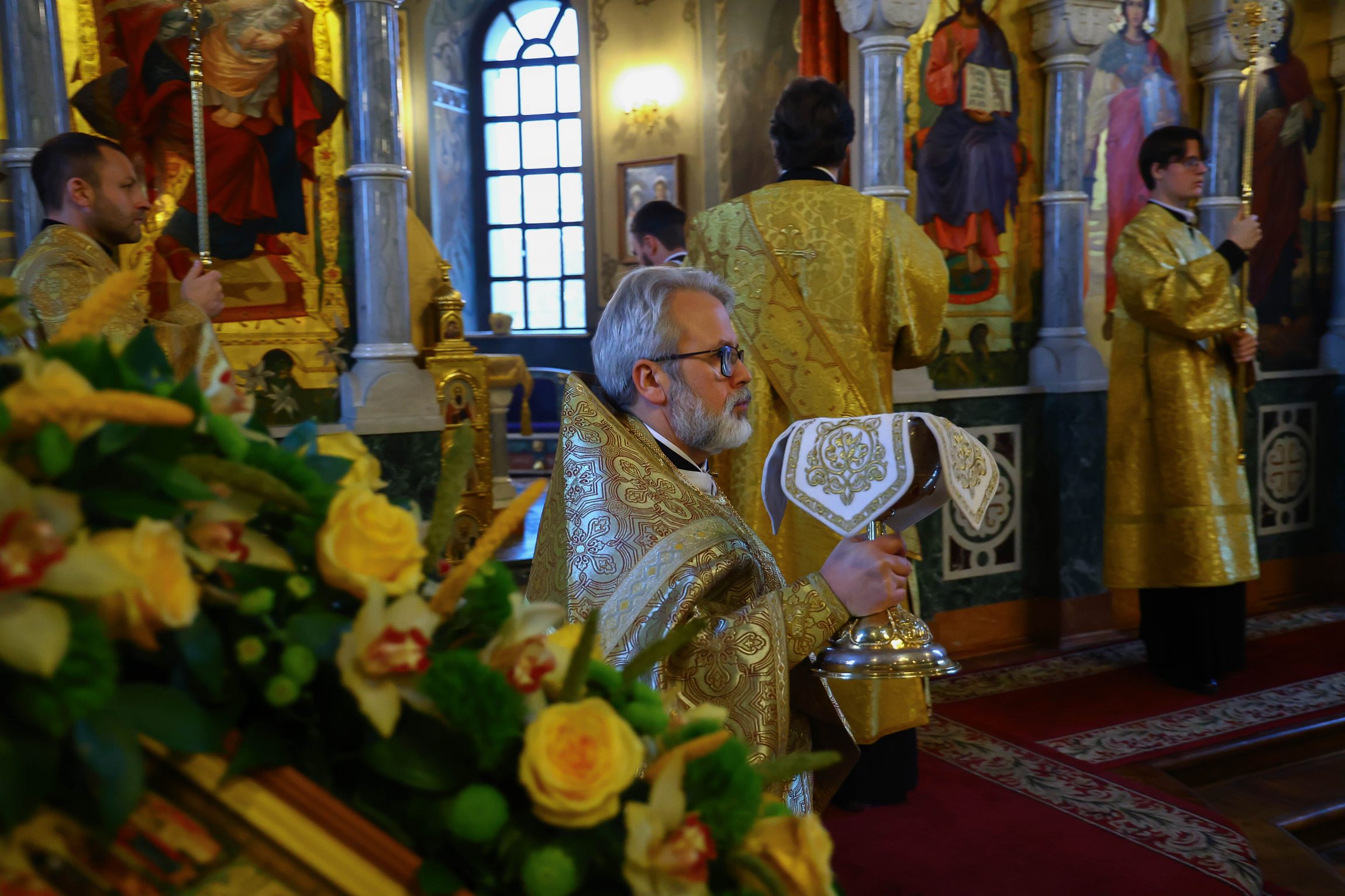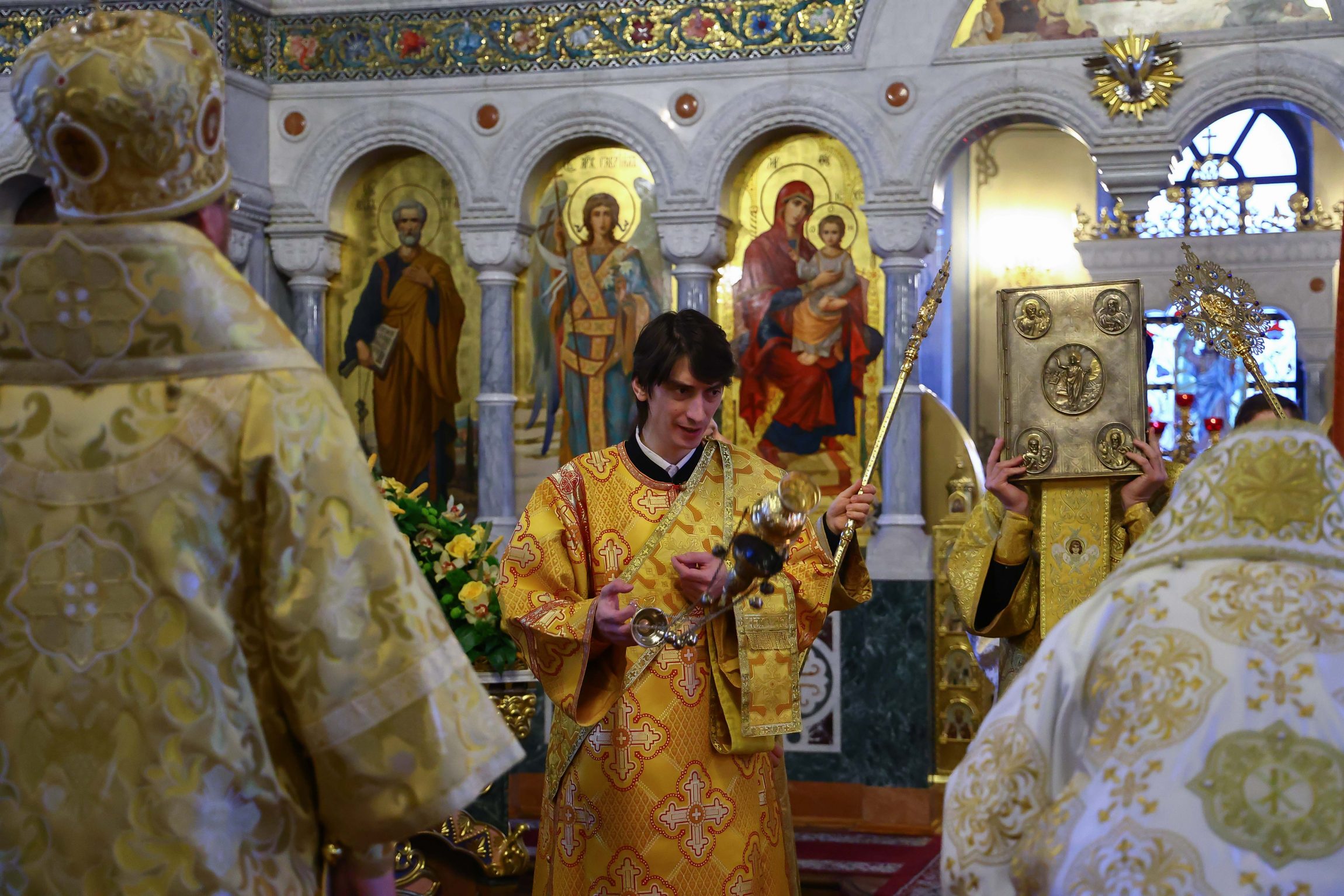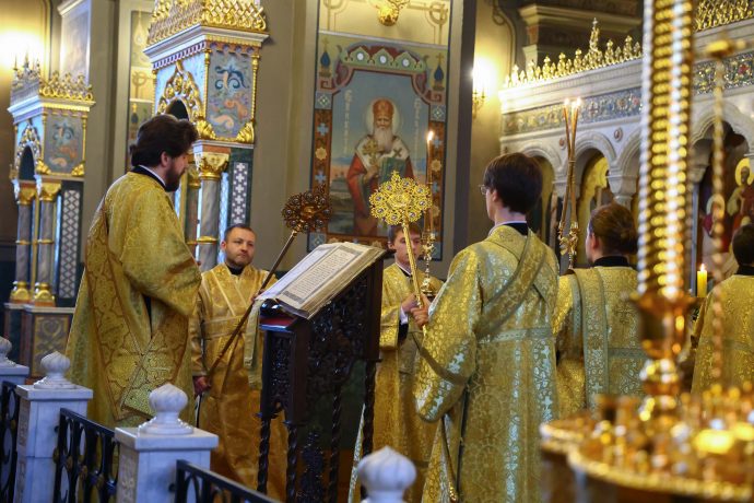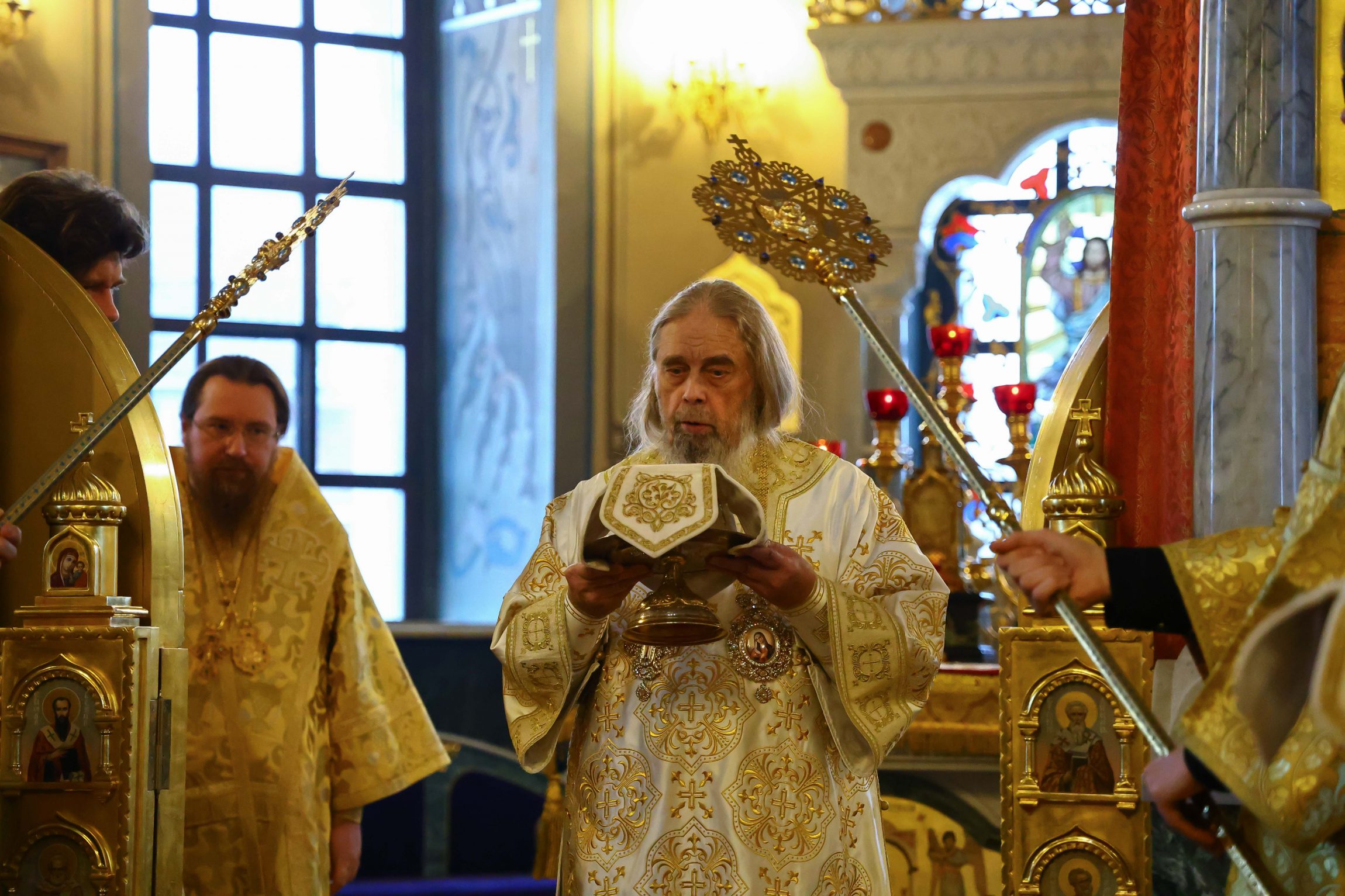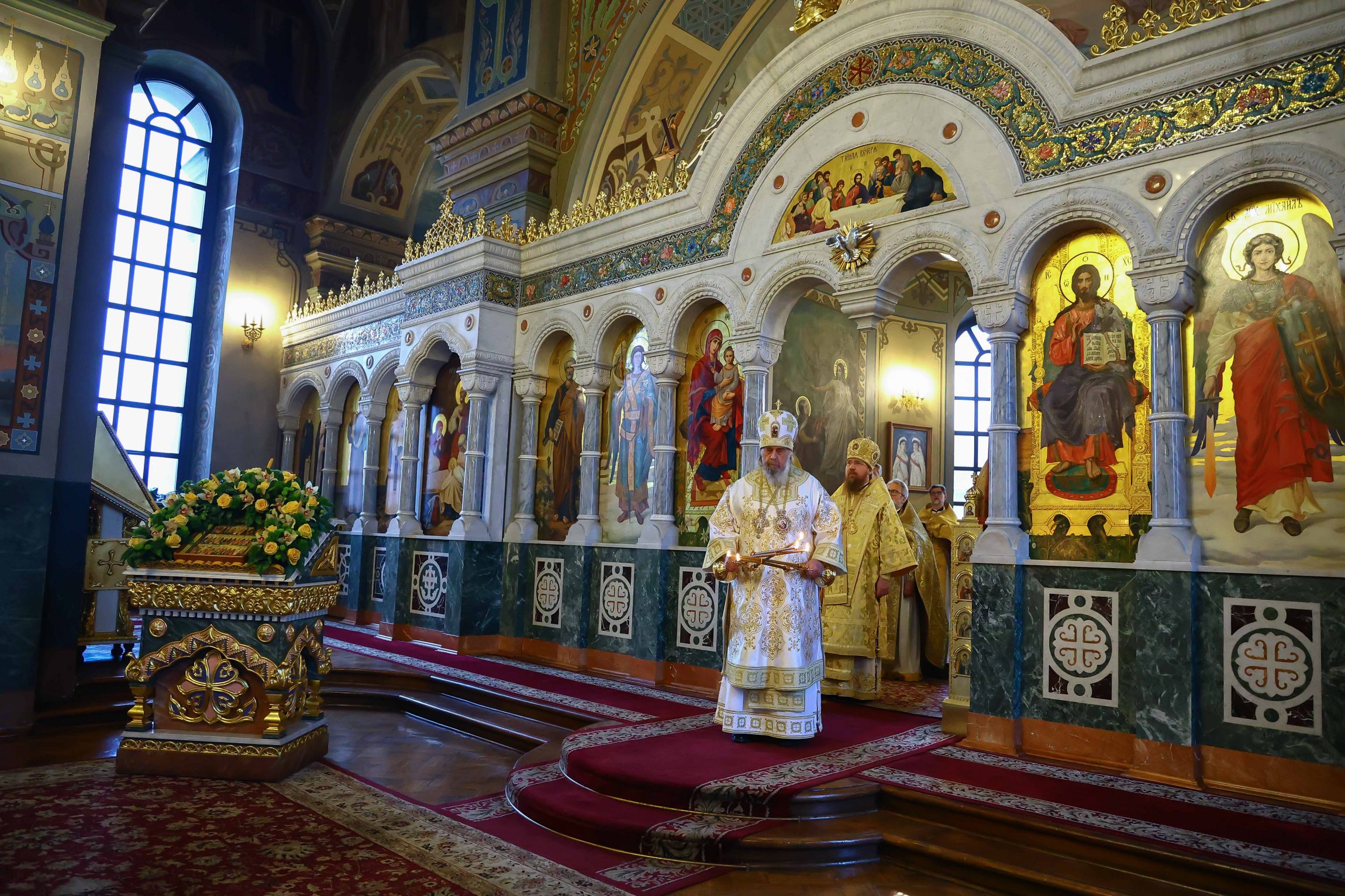 Отрадно и утешительно ныне предстоять вместе с вами в молитвенном дерзновении и сокрушении сердца пред престолом Божией милости, видеть, как любовь Божия, бесконечно смиренная и кроткая, принимает от нас приносимое служение и вещество этого мира, включает их в Свою Пресущественную Божественную жизнь, дабы нас напитать этой жизнью чрез Свои Пречистые Таины, дабы жажда искать прежде всего Царства Божия и правды его (Мф. 6:33) никогда не покинула нас, дабы она наполняла и насыщала нас не поиском только земного удовольствия и благополучия, а принимая и их с благодарностью, ни в коем случае мы не допускали, чтобы они застили собой то, что сокрыто в глубине и что единым на потребу является для каждого христианского чистого сердца.