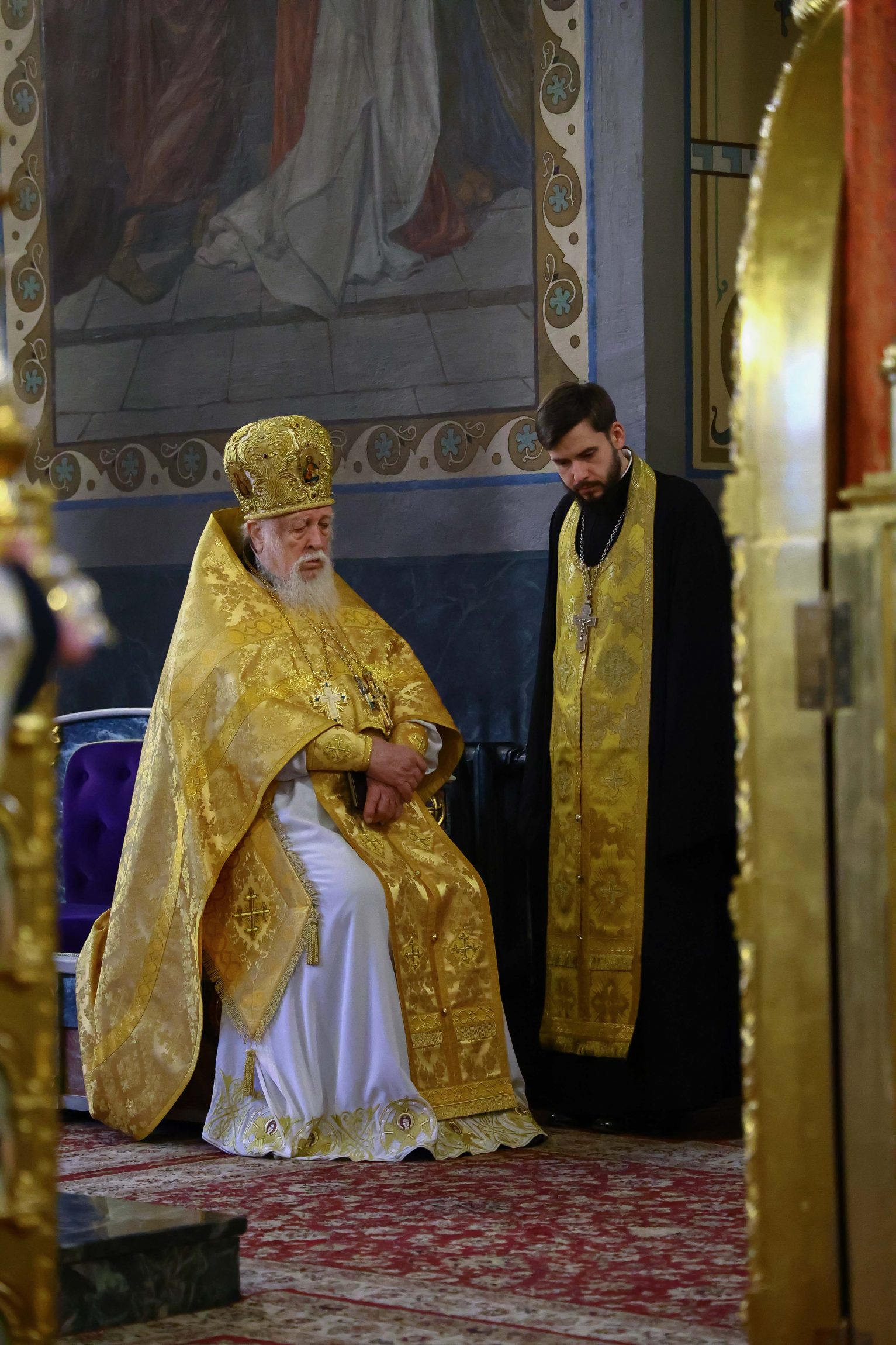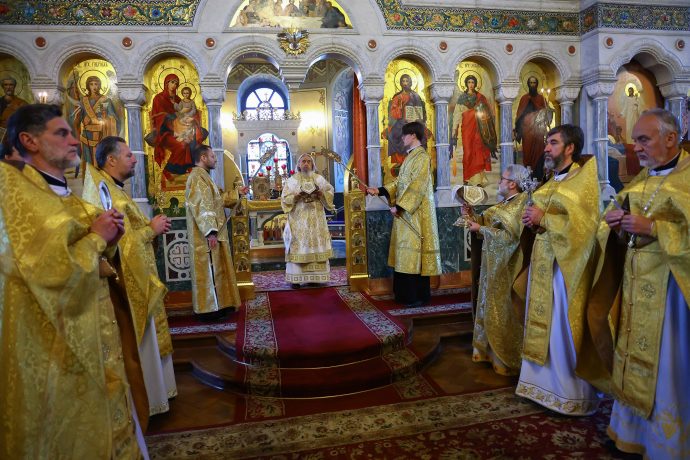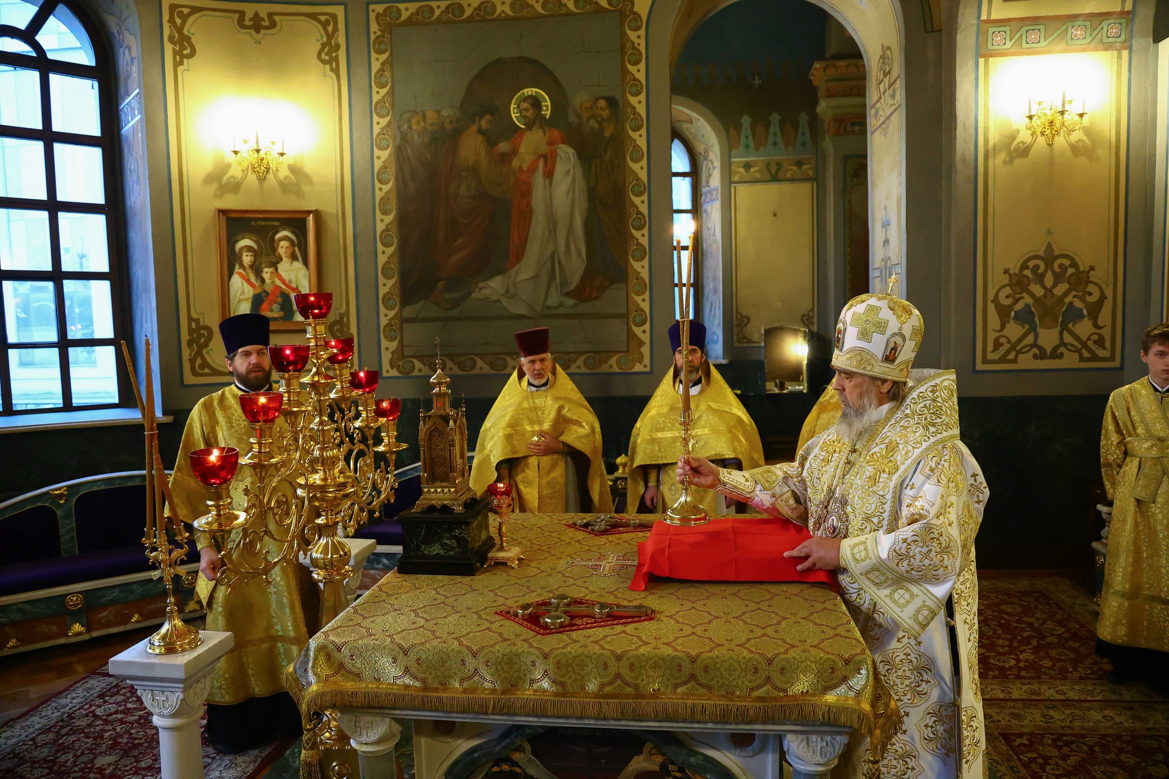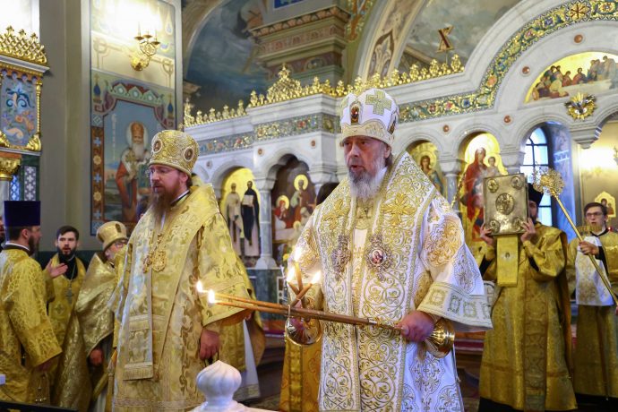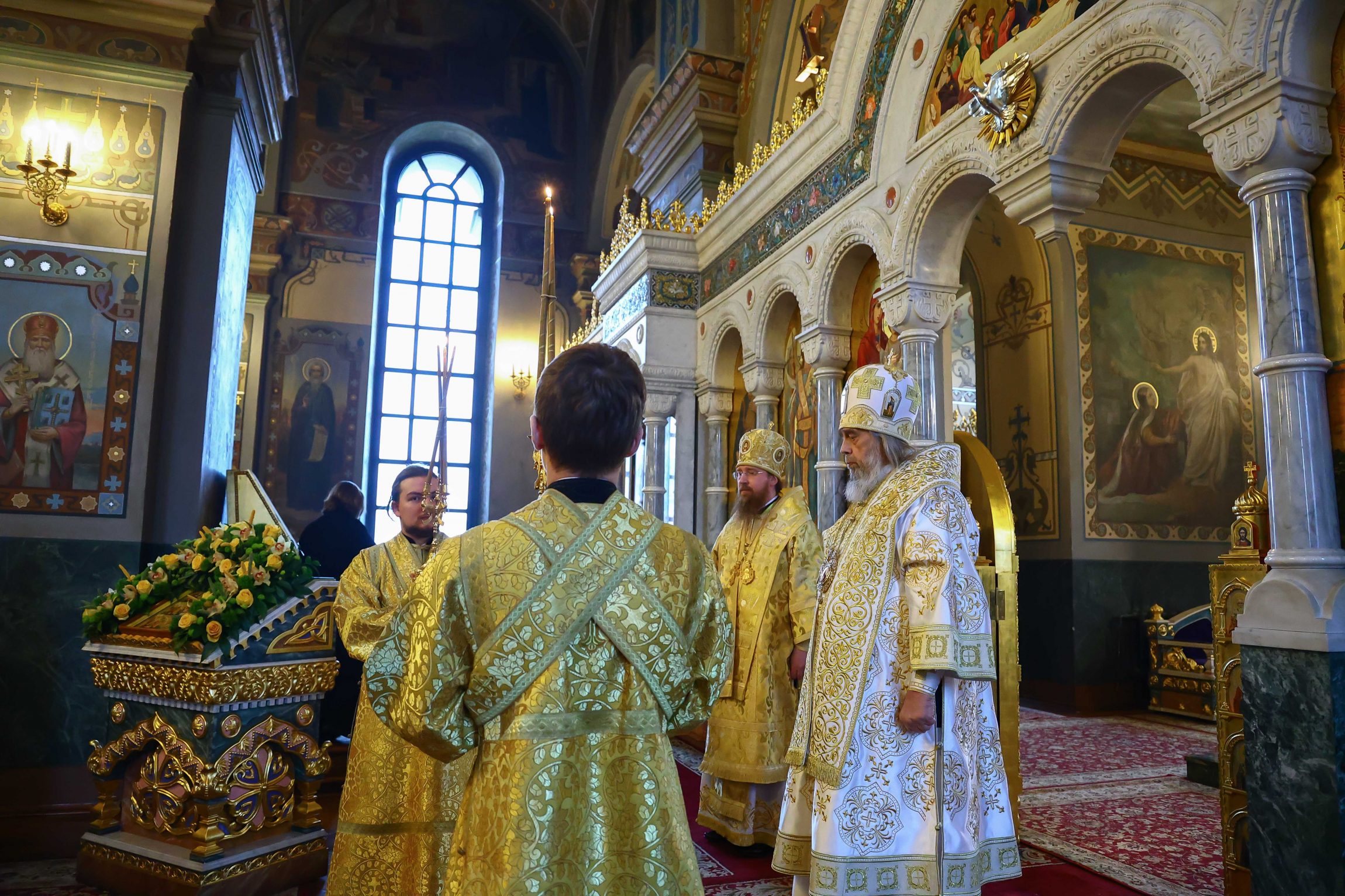 Отрадно и утешительно ныне предстоять вместе с вами в молитвенном дерзновении и сокрушении сердца пред престолом Божией милости, видеть, как любовь Божия, бесконечно смиренная и кроткая, принимает от нас приносимое служение и вещество этого мира, включает их в Свою Пресущественную Божественную жизнь, дабы нас напитать этой жизнью чрез Свои Пречистые Таины, дабы жажда искать прежде всего Царства Божия и правды его (Мф. 6:33) никогда не покинула нас, дабы она наполняла и насыщала нас не поиском только земного удовольствия и благополучия, а принимая и их с благодарностью, ни в коем случае мы не допускали, чтобы они застили собой то, что сокрыто в глубине и что единым на потребу является для каждого христианского чистого сердца.