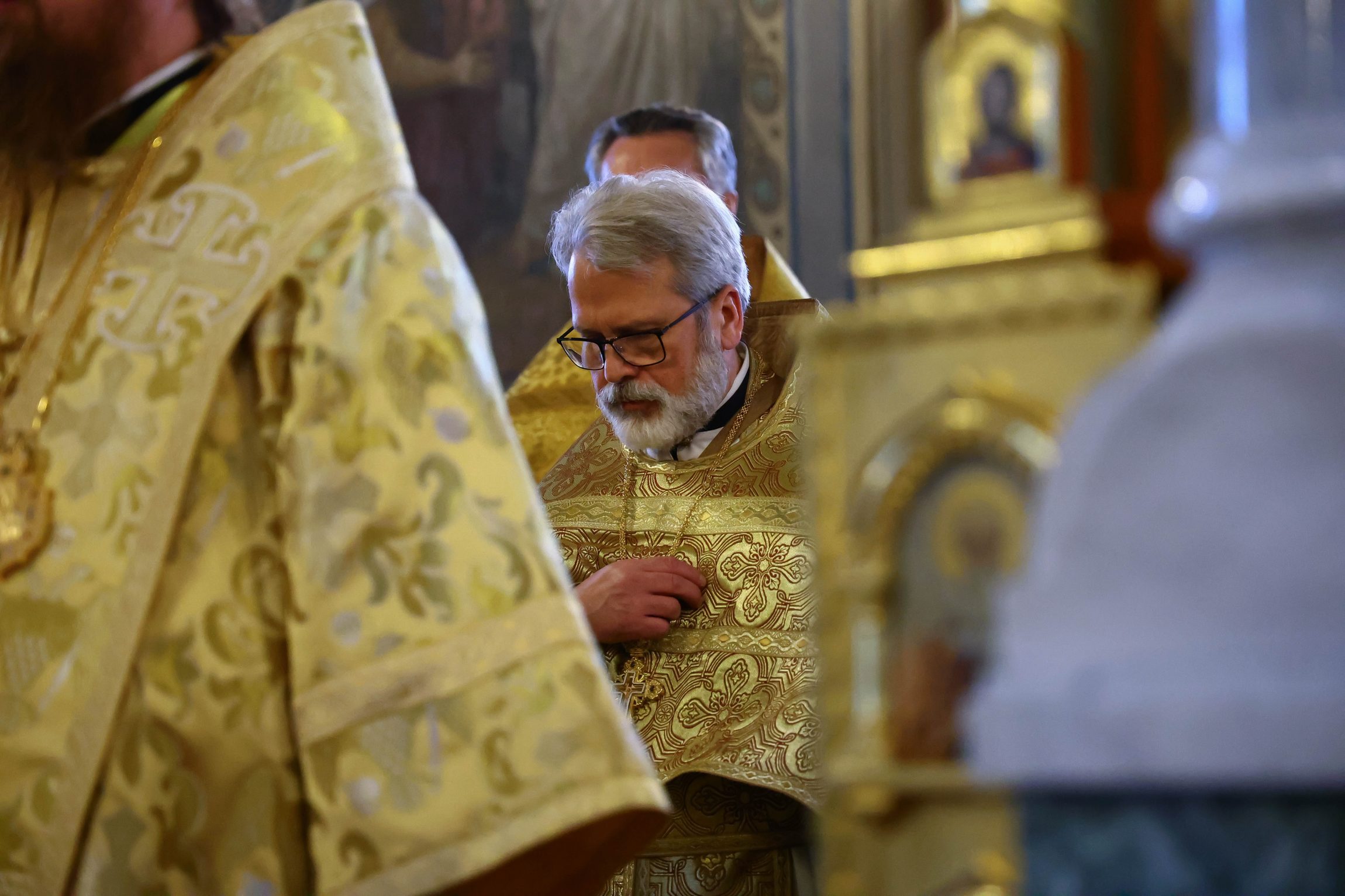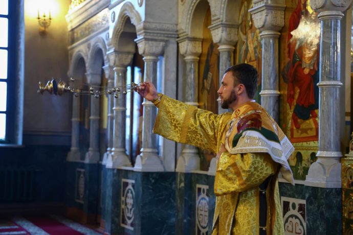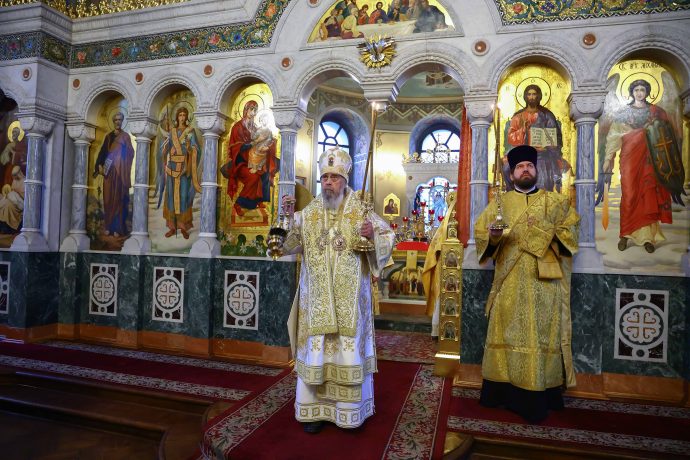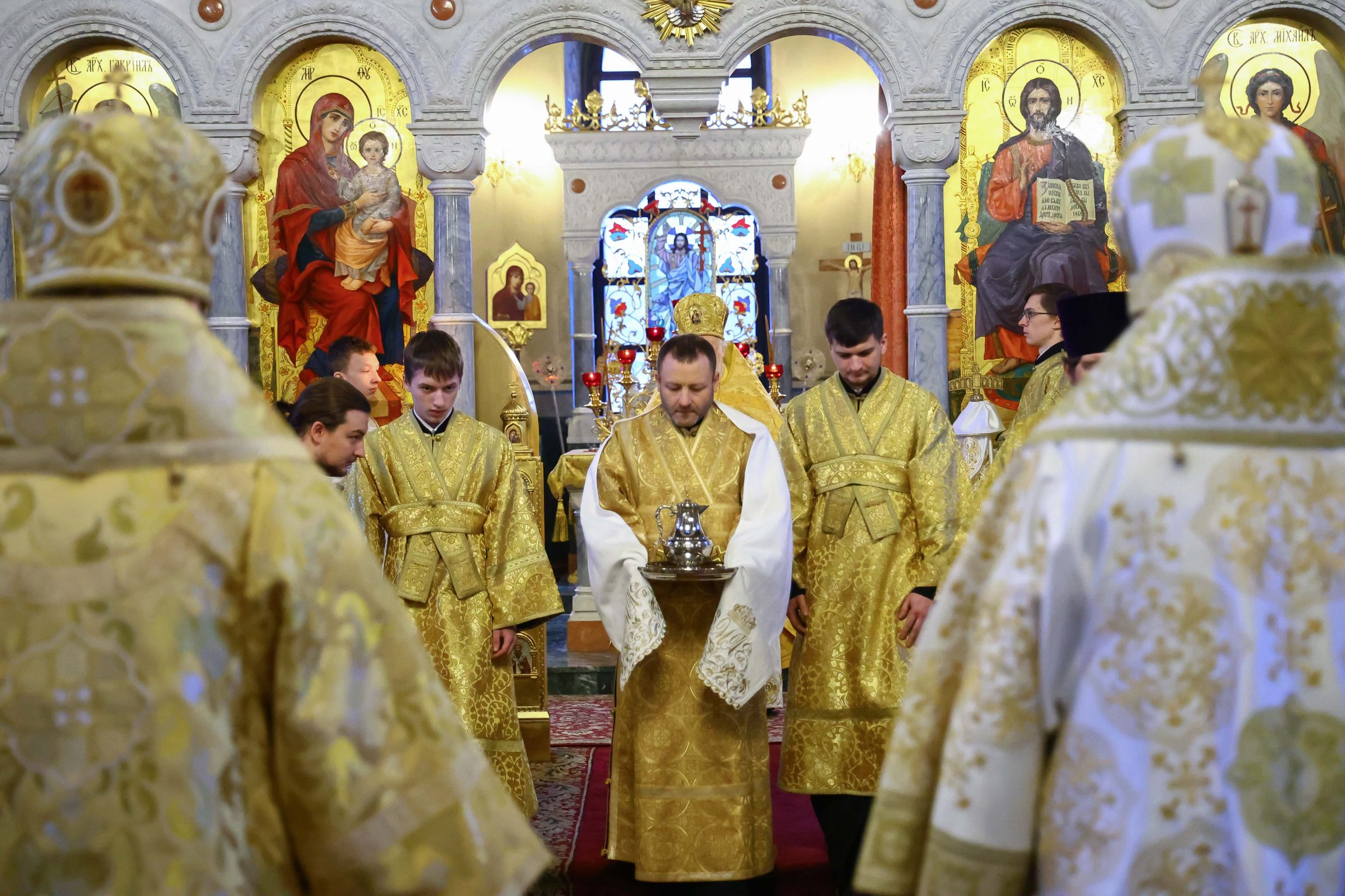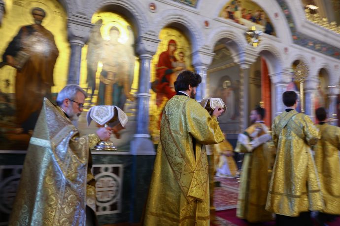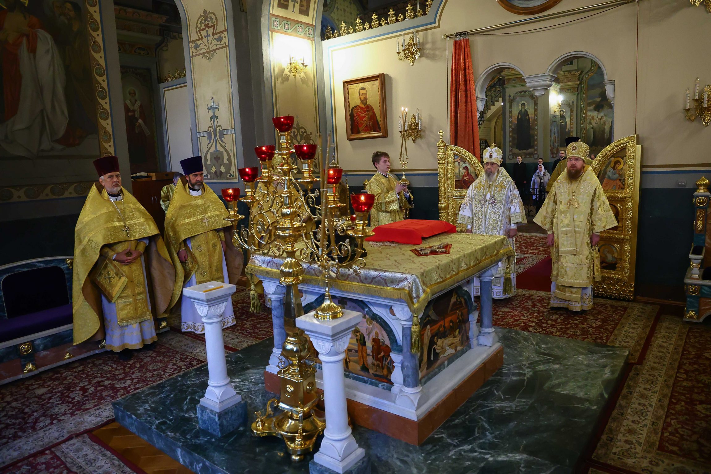 Отрадно и утешительно ныне предстоять вместе с вами в молитвенном дерзновении и сокрушении сердца пред престолом Божией милости, видеть, как любовь Божия, бесконечно смиренная и кроткая, принимает от нас приносимое служение и вещество этого мира, включает их в Свою Пресущественную Божественную жизнь, дабы нас напитать этой жизнью чрез Свои Пречистые Таины, дабы жажда искать прежде всего Царства Божия и правды его (Мф. 6:33) никогда не покинула нас, дабы она наполняла и насыщала нас не поиском только земного удовольствия и благополучия, а принимая и их с благодарностью, ни в коем случае мы не допускали, чтобы они застили собой то, что сокрыто в глубине и что единым на потребу является для каждого христианского чистого сердца.