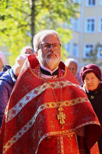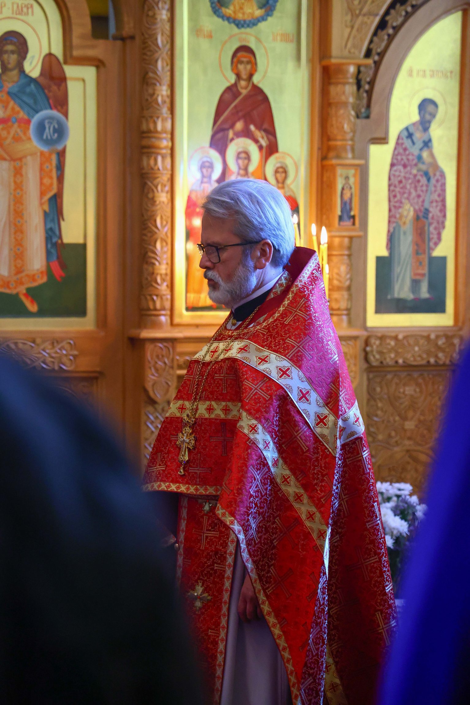 Владыка Алексий обратился к участникам совместной молитвы: «Словом мира и любви о Христе приветствую всех вас, всечестные отцы и возлюбленные о Господе братья и сестры, в благословенный сей день попразднства мироспасительного события Воздвижения во Святом граде Иерусалиме, при равноапостольном царе Константине и матери его, равноапостольной царице Елене, и Иерусалимском святителе Макарии, обретенного древа Честного и Животворящего Креста Господня, и в день молитвенного чествования святых добропобедных Христовых мучениц Веры, Надежды, Любови и матери их Софии, пострадавших за Христа во граде Риме, в царствование императора Адриана — престольного праздника этого святого храма, замечательного светильника: христианских веры надежды, любви, мудрости преданности Подвигоположнику Спасителю и Господу нашему Иисусу Христу!