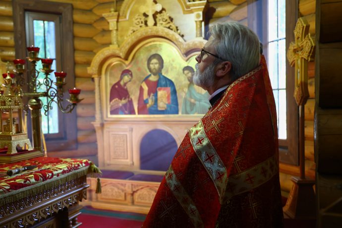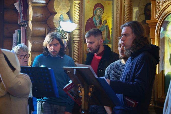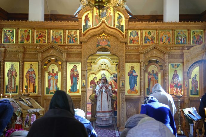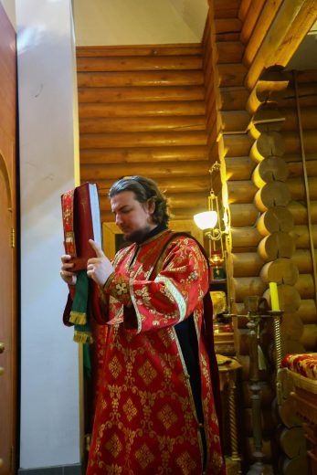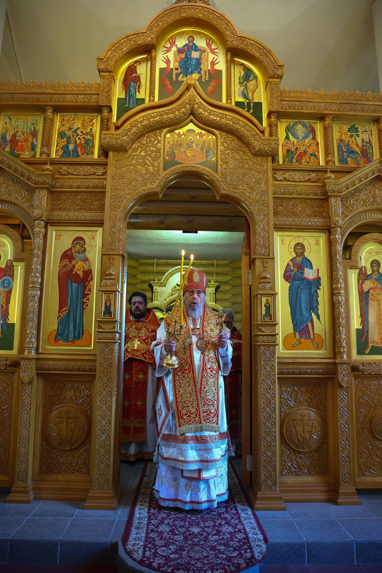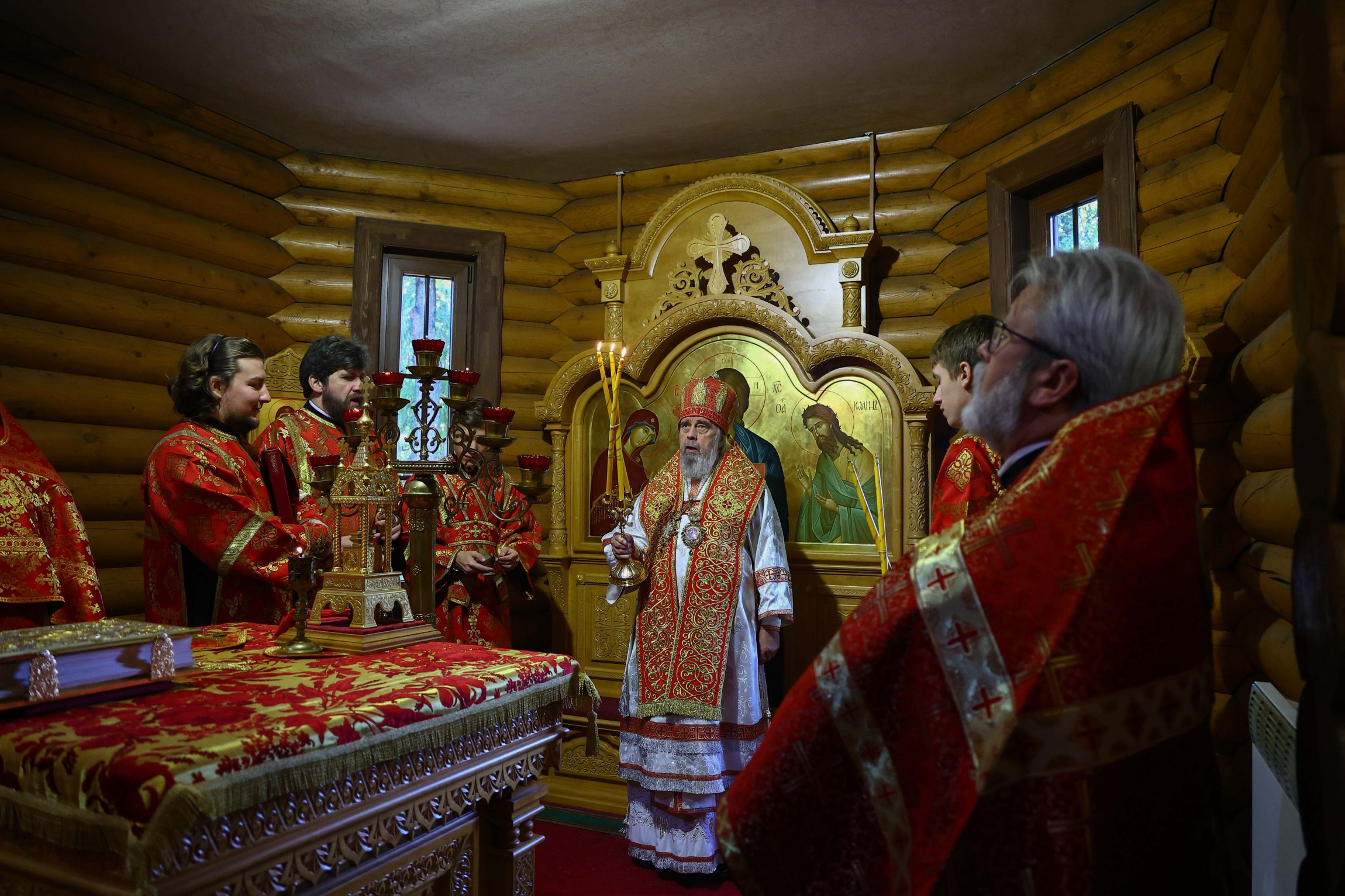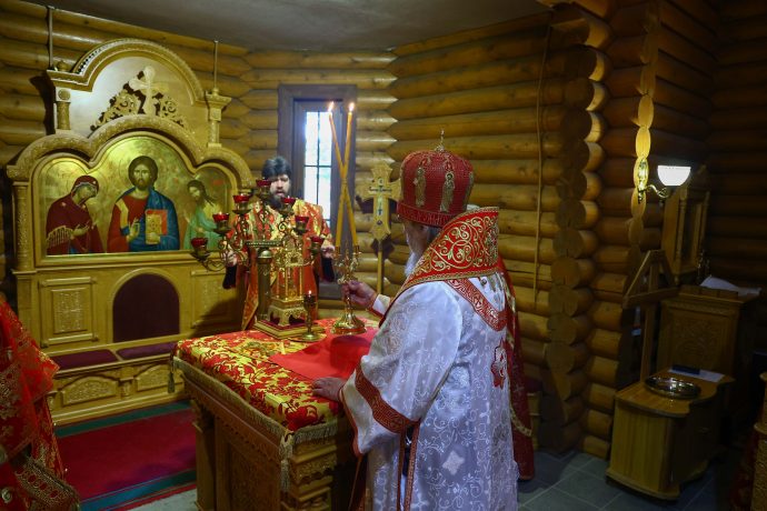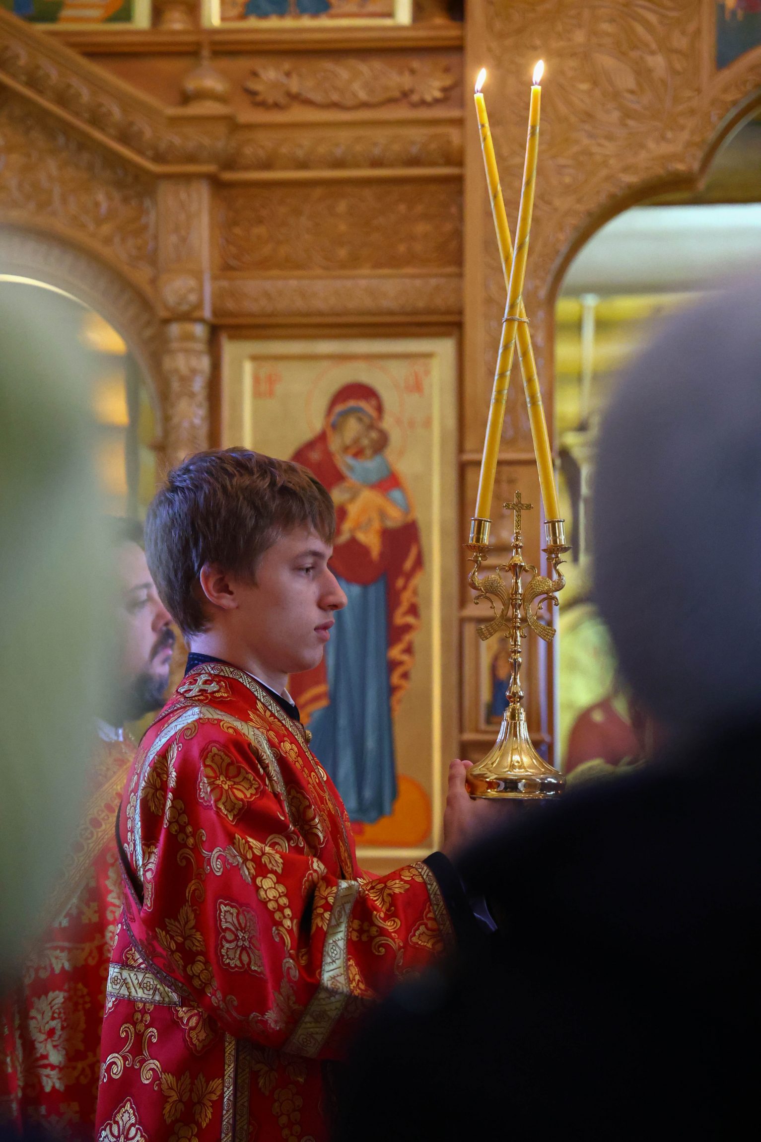 На сугубой ектении вознесены молитвы о благопоспешении христолюбивому Российскому воинству в установлении мира в сию лихую годину, на Святую Русь нашедшую, о мире на Украине, а также о сохранении единства святого Православия.