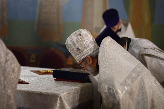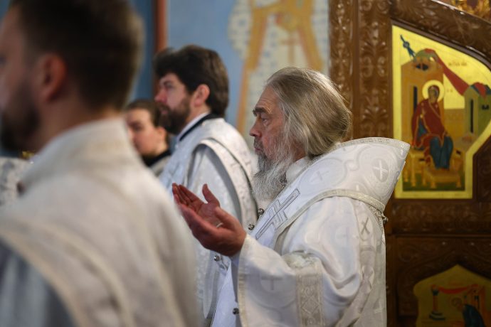 На сугубой ектении вознесены молитвы о мире на Украине и Ближнем Востоке, о сохранении единства святого Православия и молитвы на начало нового года.