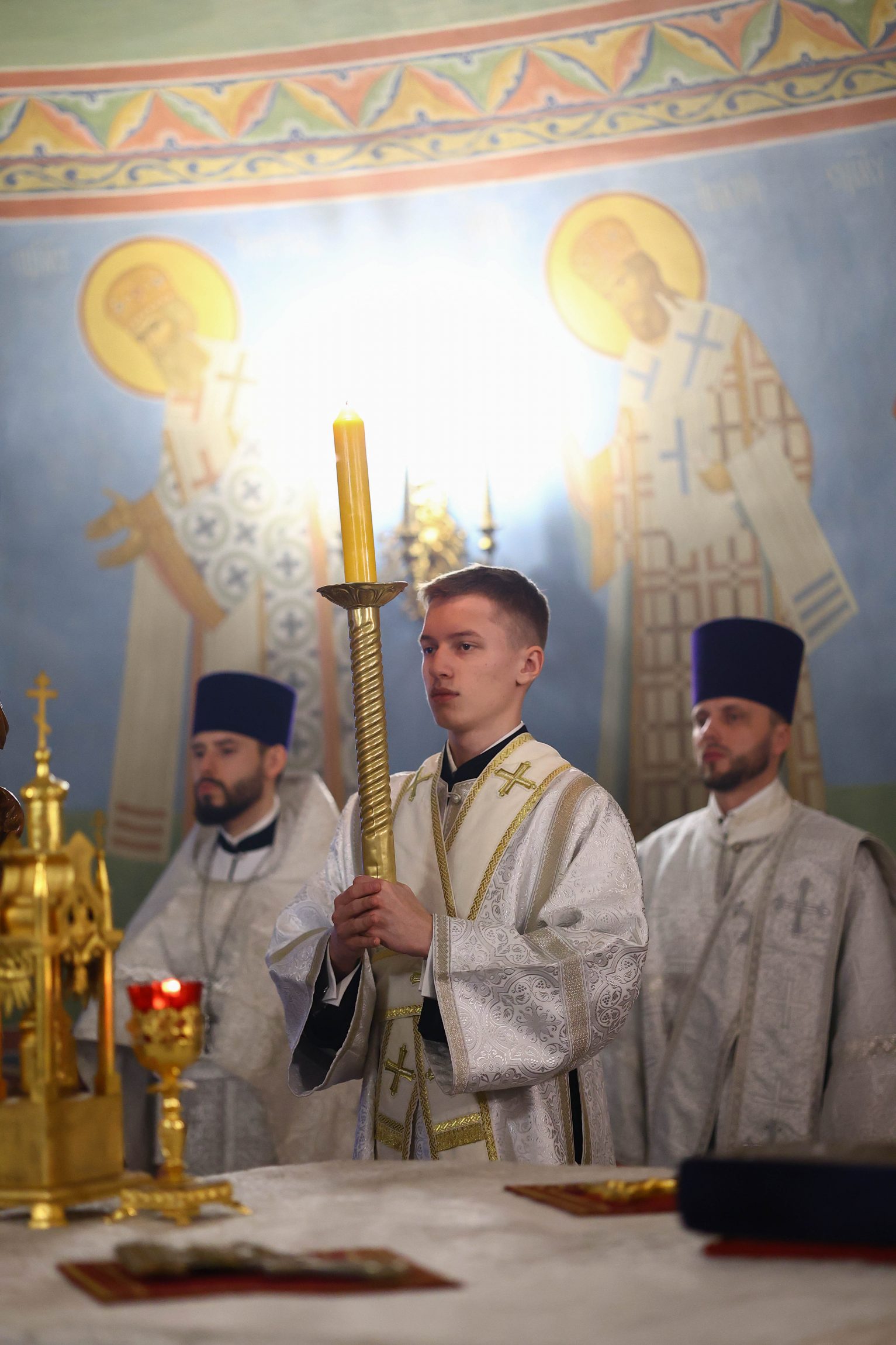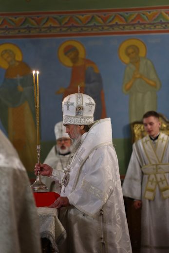 Митрополит Тульский и Ефремовский Алексий совершил Божественную литургию и великую вечерню в Успенском кафедральном соборе города Тулы в сослужении соборного духовенства.