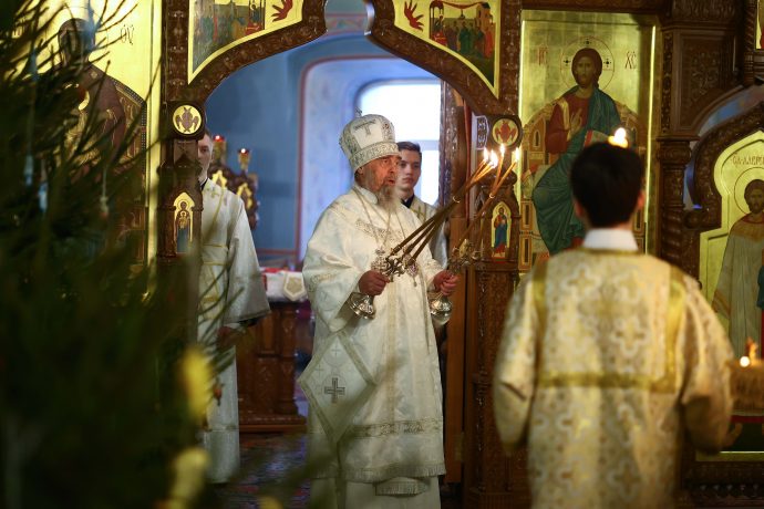 По окончании богослужения совершено славление празднику Рождества Христова.