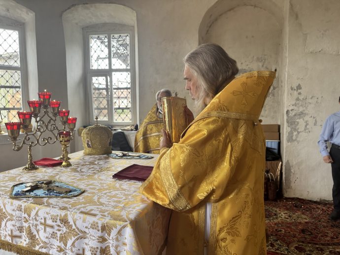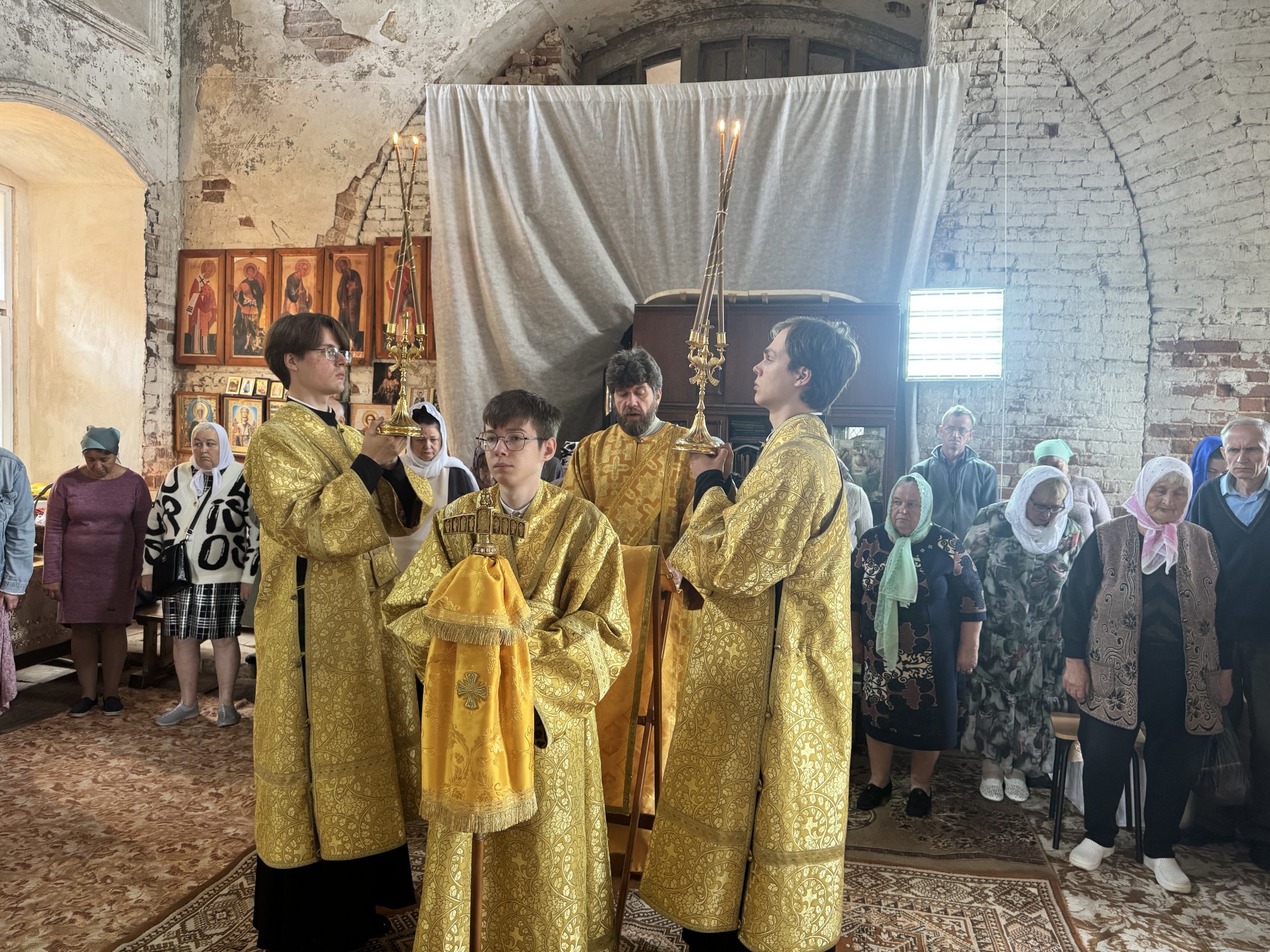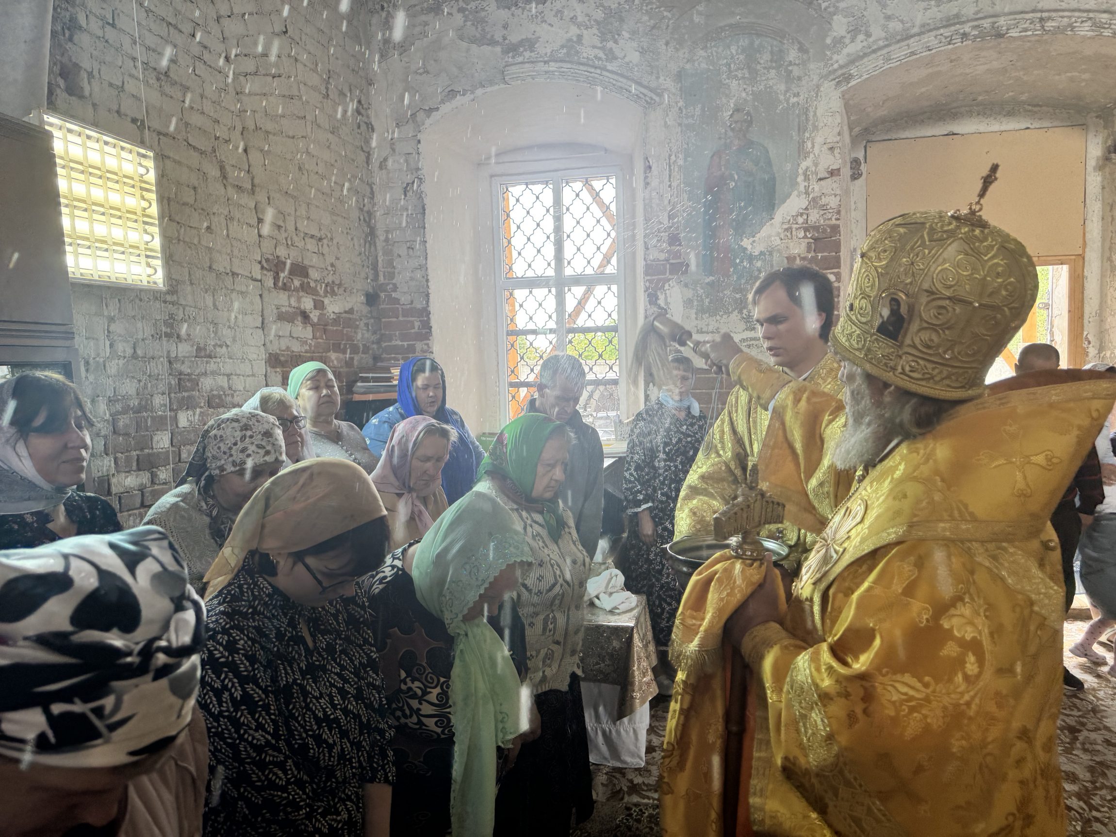 Митрополит Тульский и Ефремовский Алексий совершил Божественную литургию в восстанавливающемся храме Рождества Пресвятой Богородицы села Кишкино Центрального городского округа Тулы в сослужении благочинного протоиерея Сергия Резухина.
