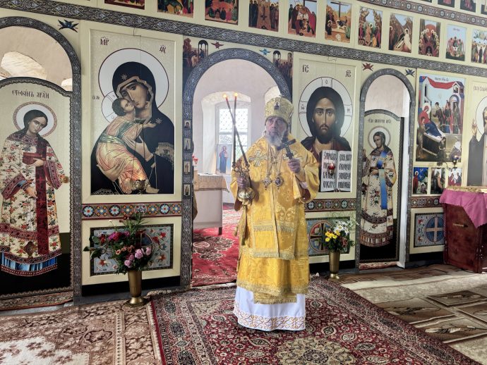По окончании богослужения владыка сказал предстоящим: «Словом мира и любви о Христе приветствую вас, всечестные отцы и возлюбленные о Господе братья и сестры, в сей нареченный воскресный день, столь отрадно встроенный в жемчужное и лучезарное ожерелье двух седмиц Успенского поста, когда вся православная христианская вселенная, подвизаемая милосердием имеющей ум Христов, Святой Соборной Апостольской Церкви, нашей духовной Матери, с особым вниманием взирает на мироспасительное событие Успения Пресвятой Госпожи Владычицы нашей Богородицы и Приснодевы Марии, именуемое народной благодарной христианской сердечной любовью Богородичной Пасхой!