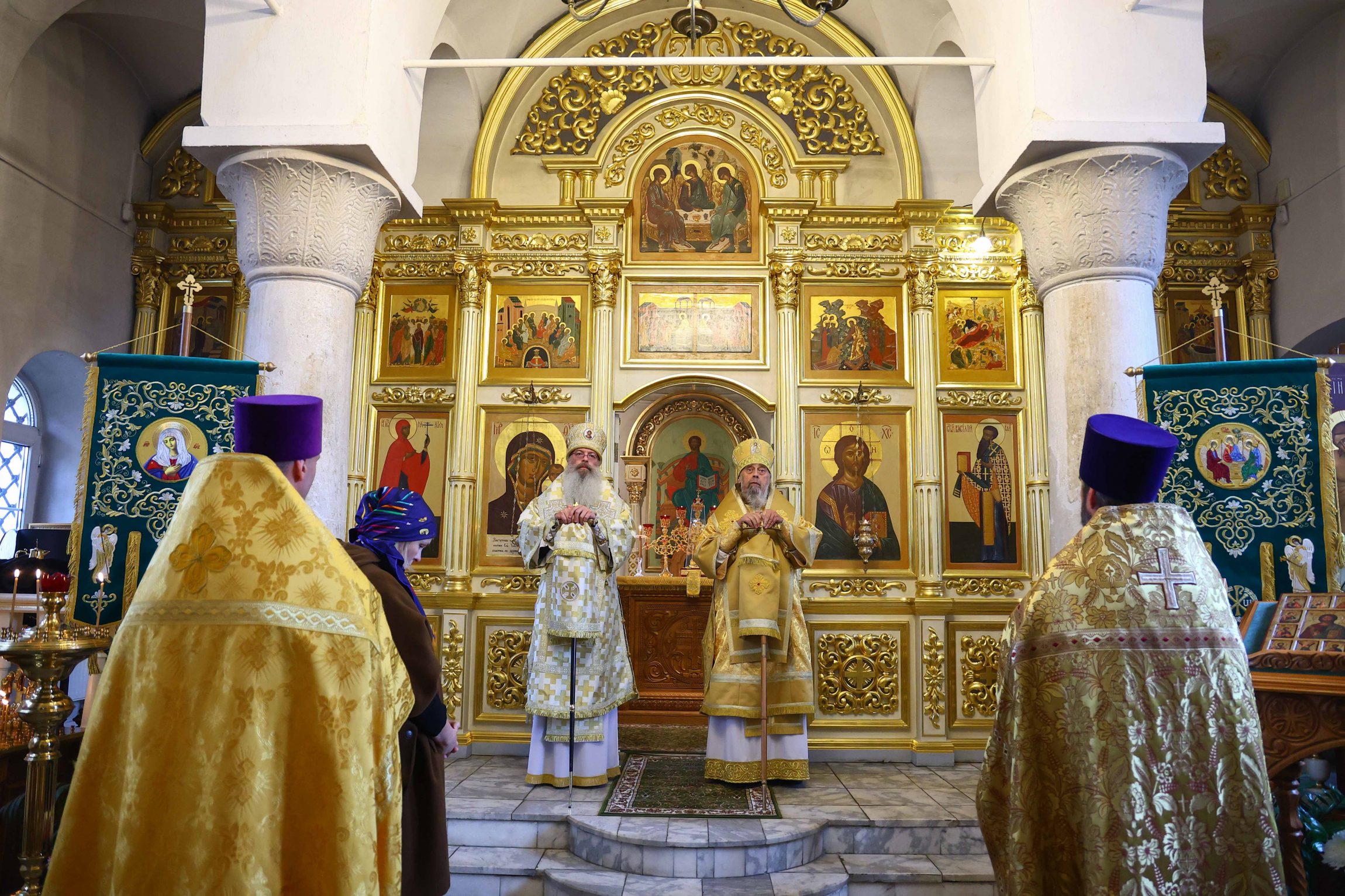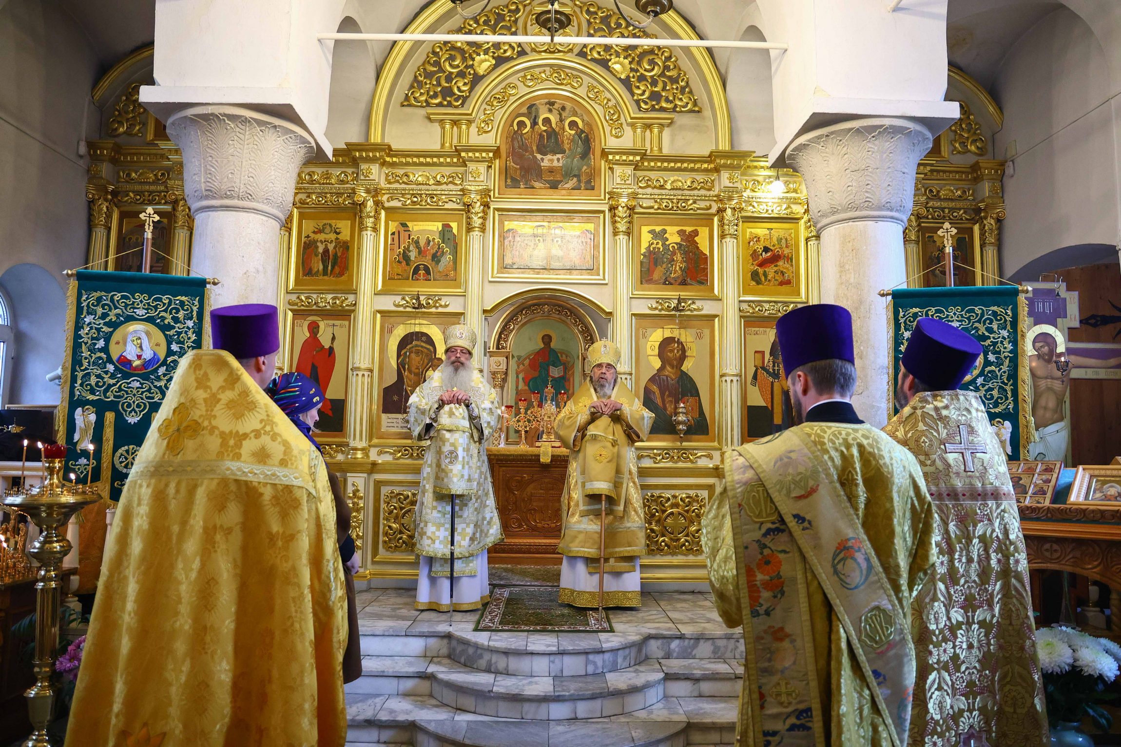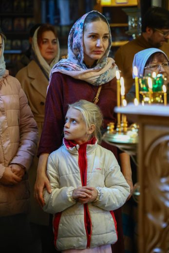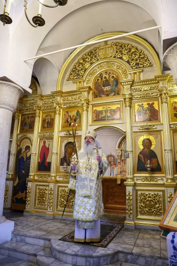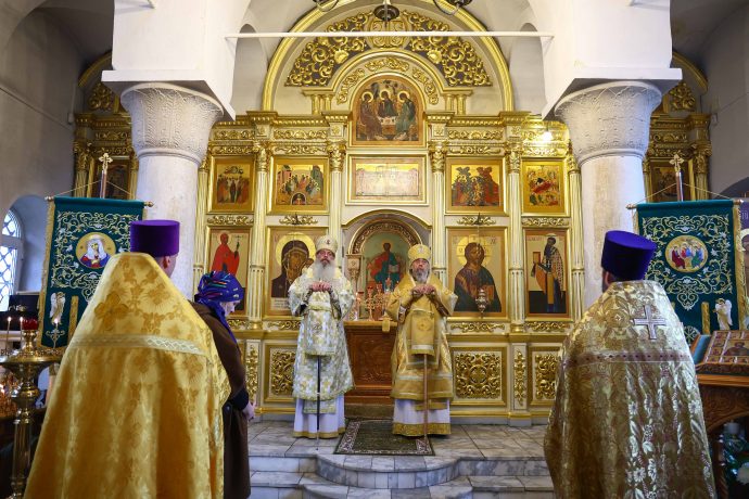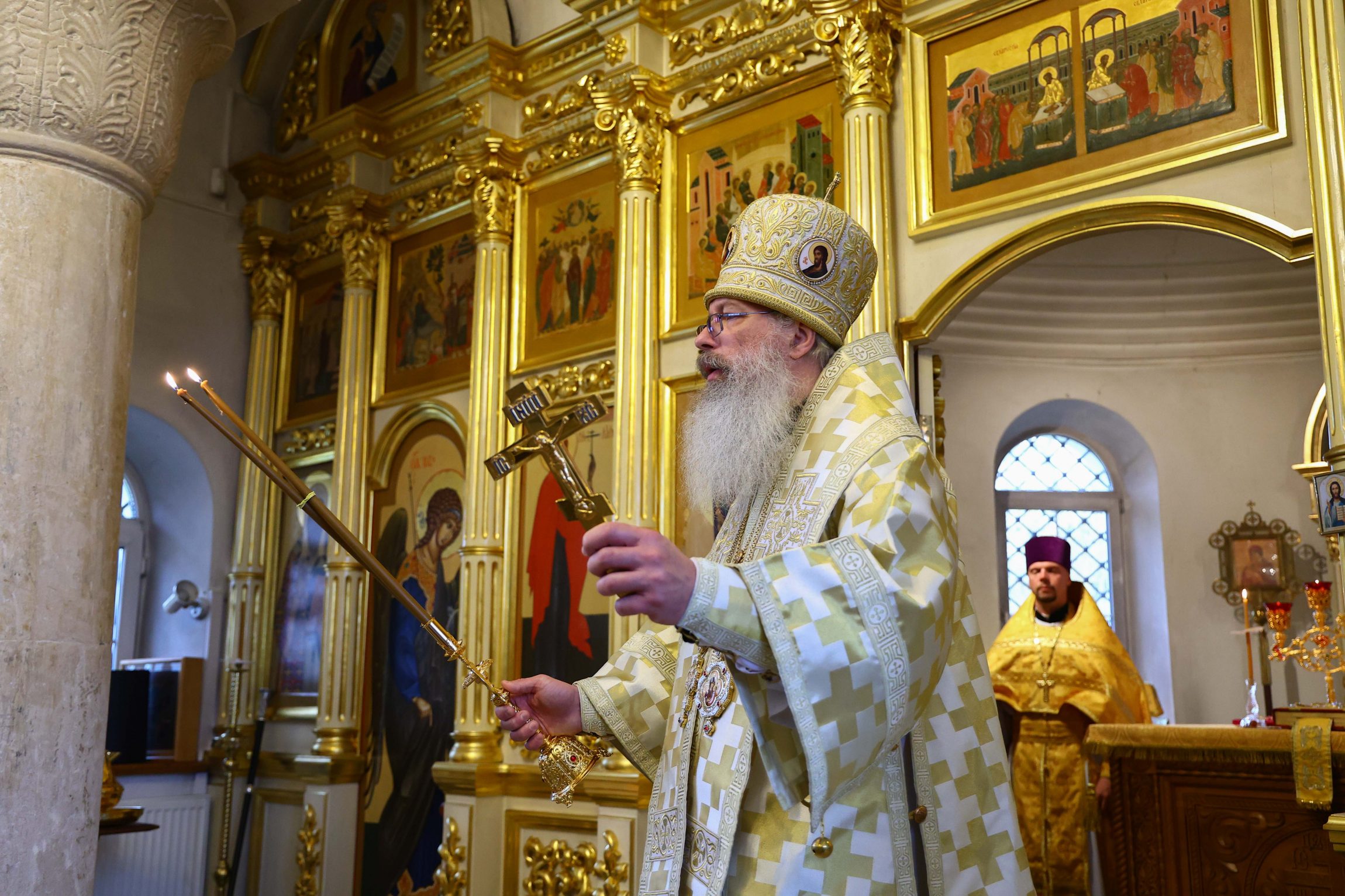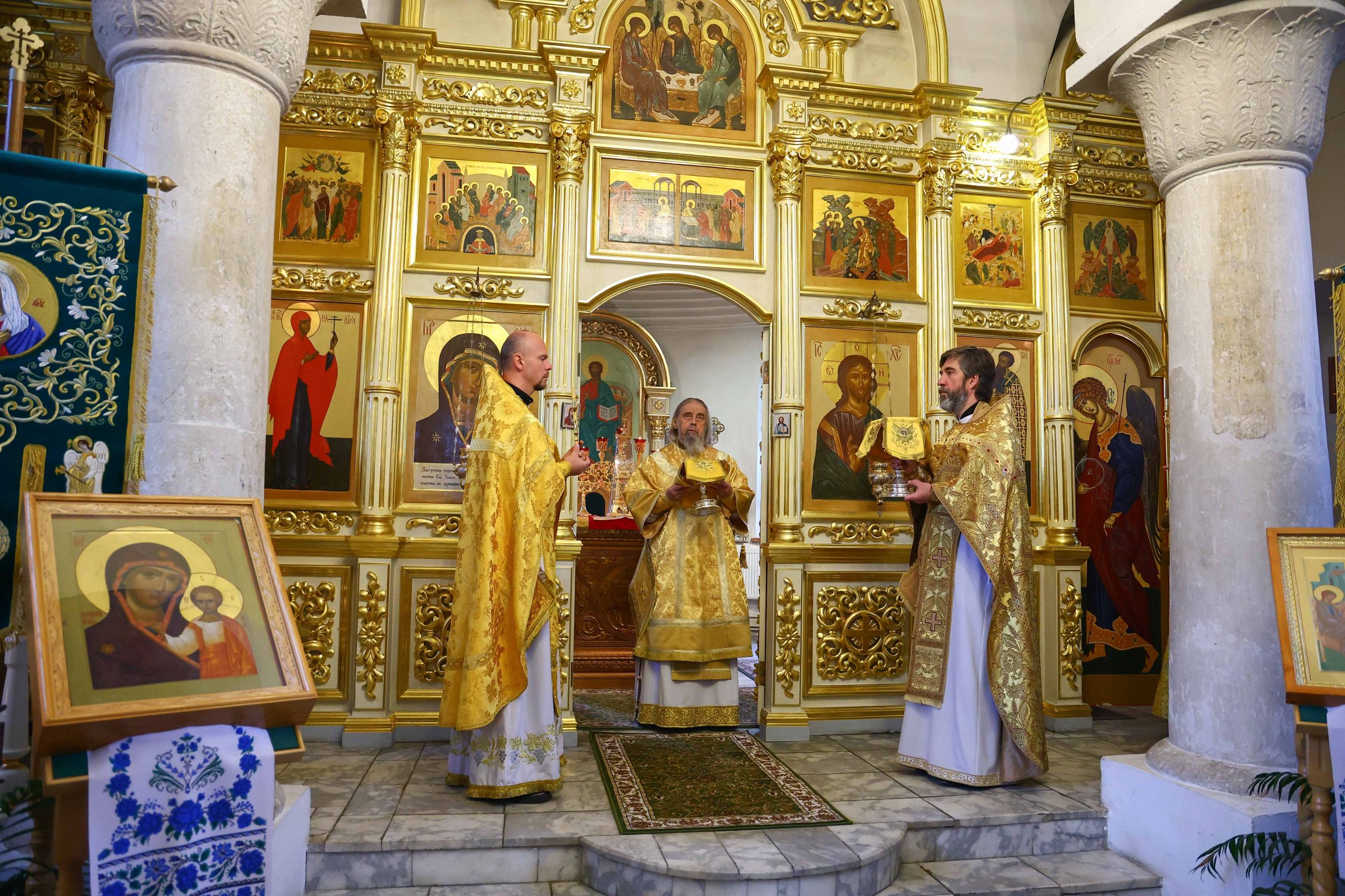 На сугубой ектении вознесены молитвы о благопоспешении христолюбивому Российскому воинству в установлении мира в сию лихую годину, на Святую Русь нашедшую, о мире на Украине, а также о сохранении единства святого Православия.
