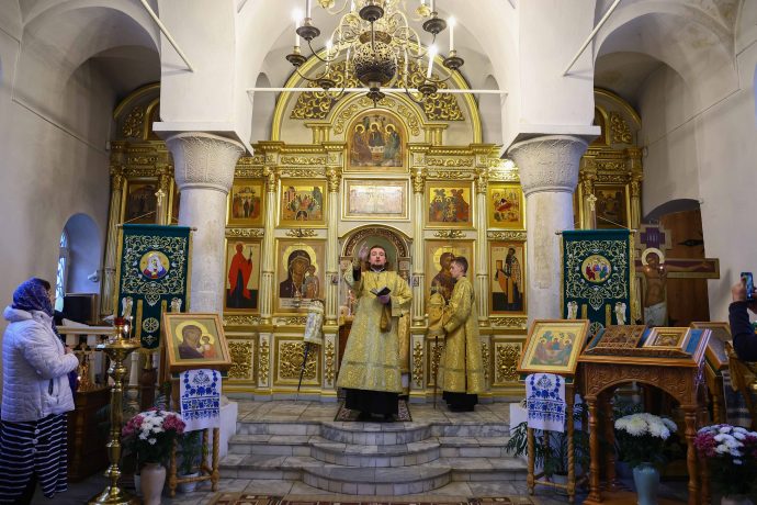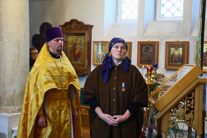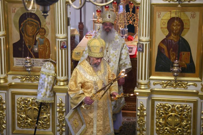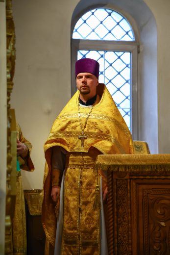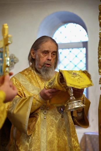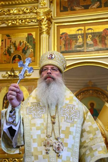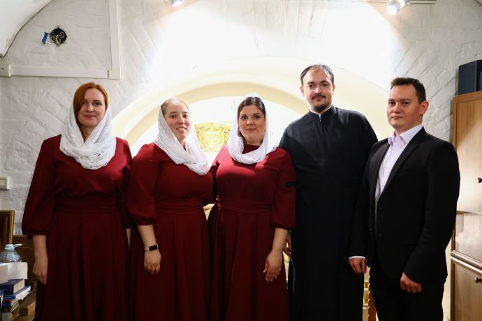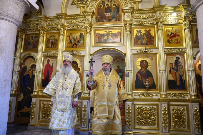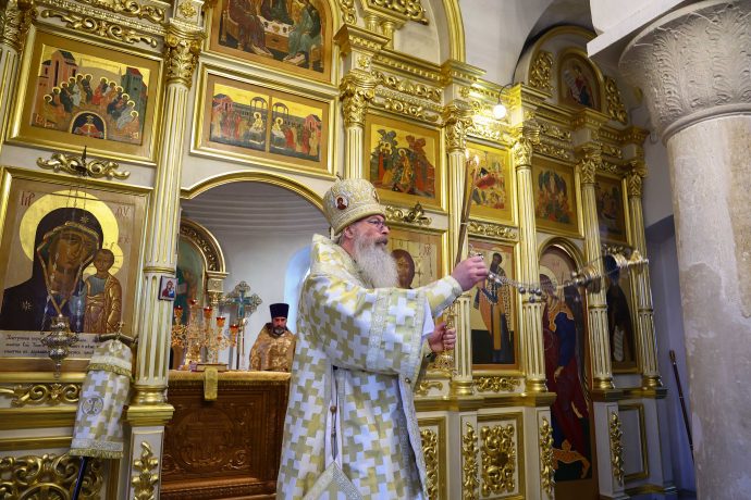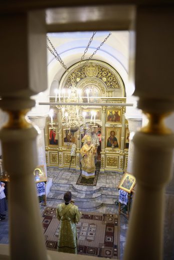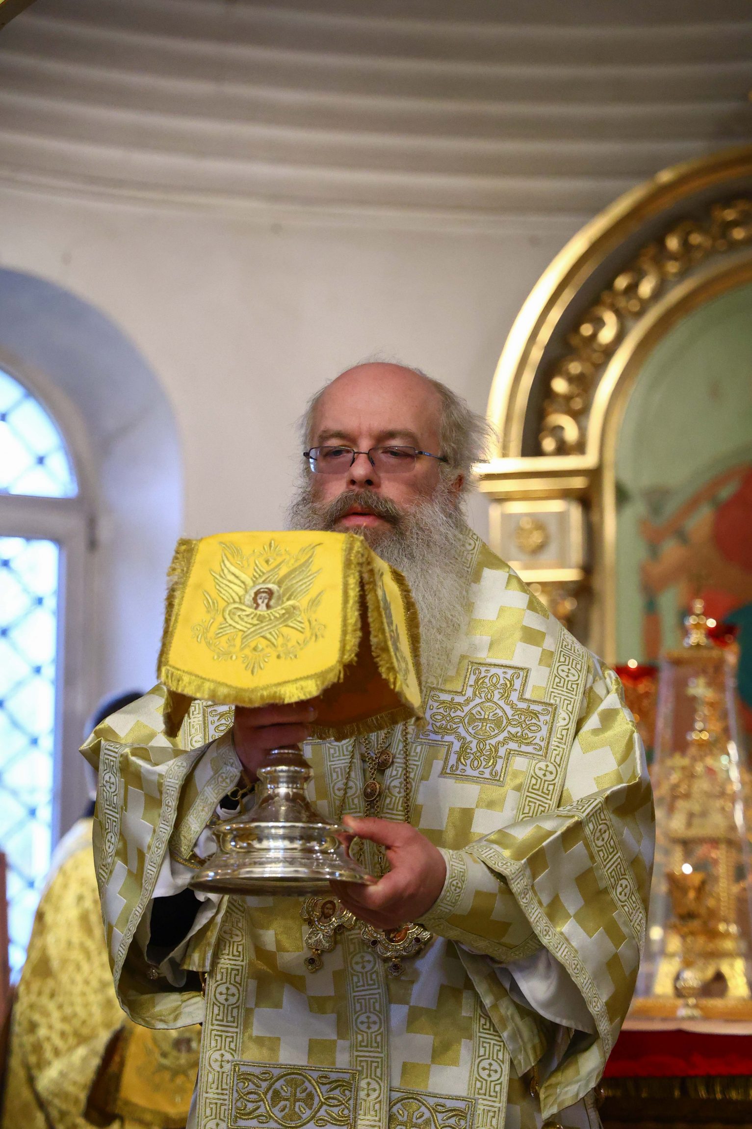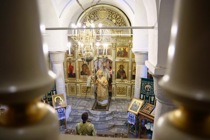 На сугубой ектении вознесены молитвы о благопоспешении христолюбивому Российскому воинству в установлении мира в сию лихую годину, на Святую Русь нашедшую, о мире на Украине, а также о сохранении единства святого Православия.