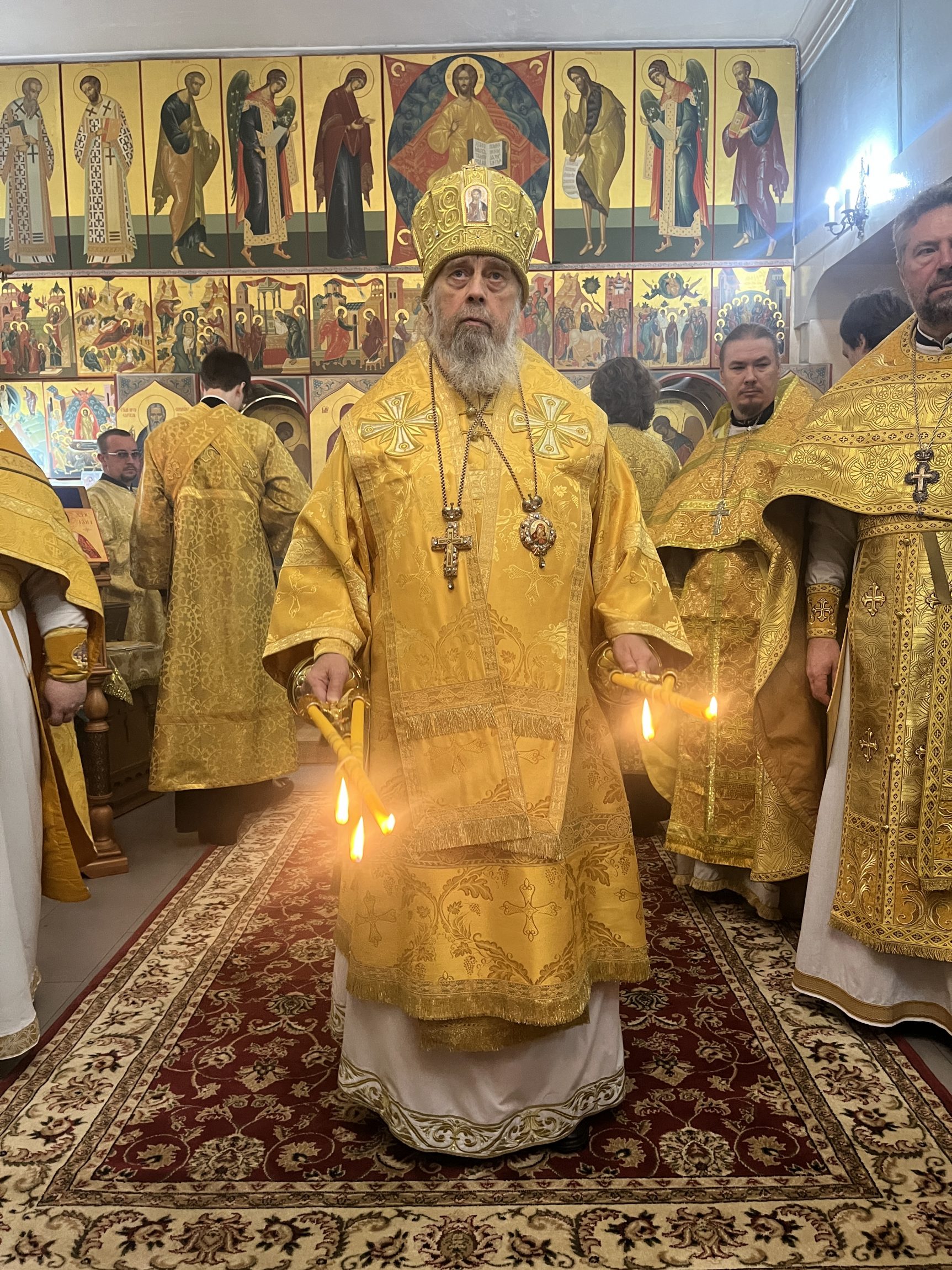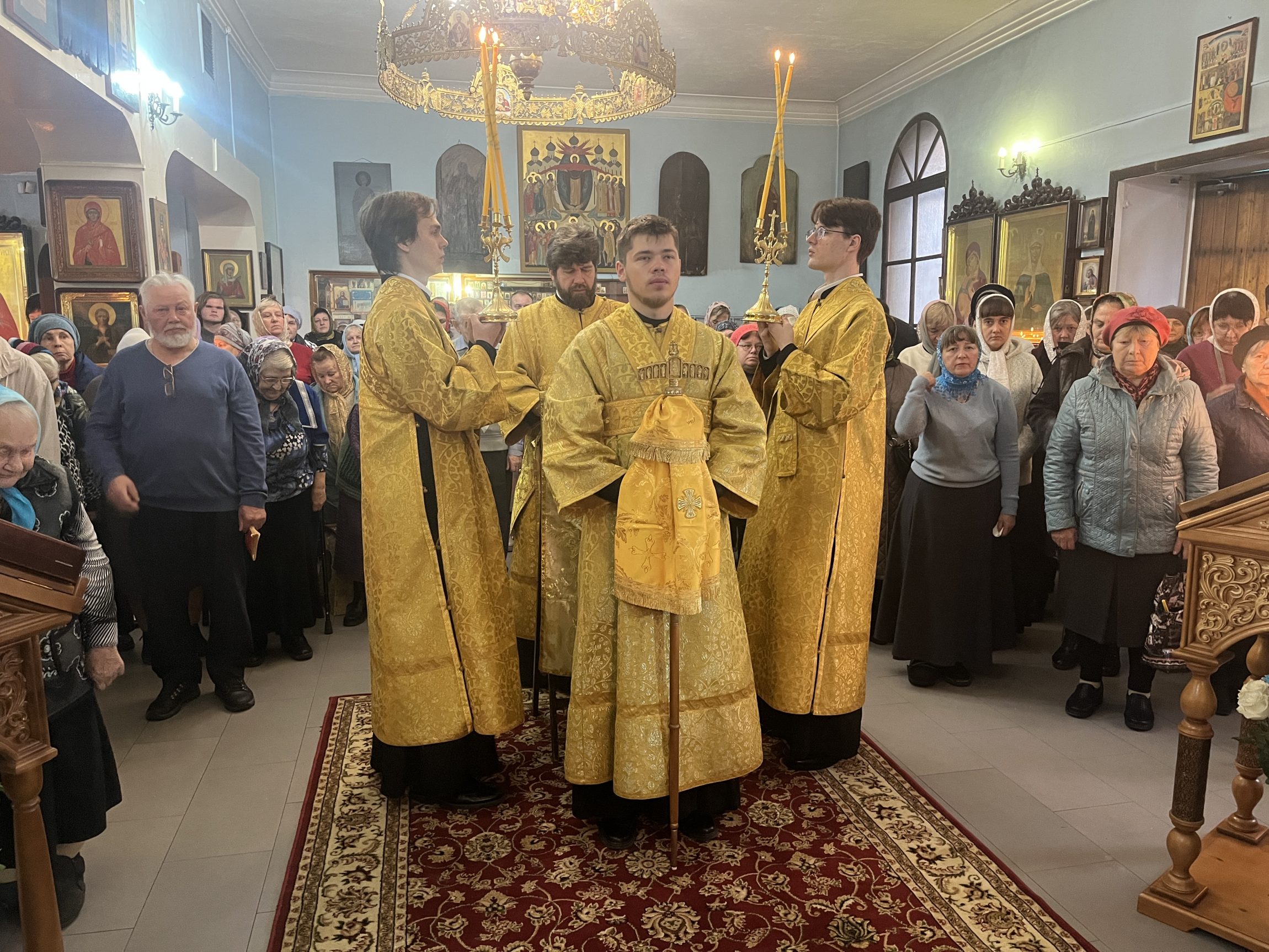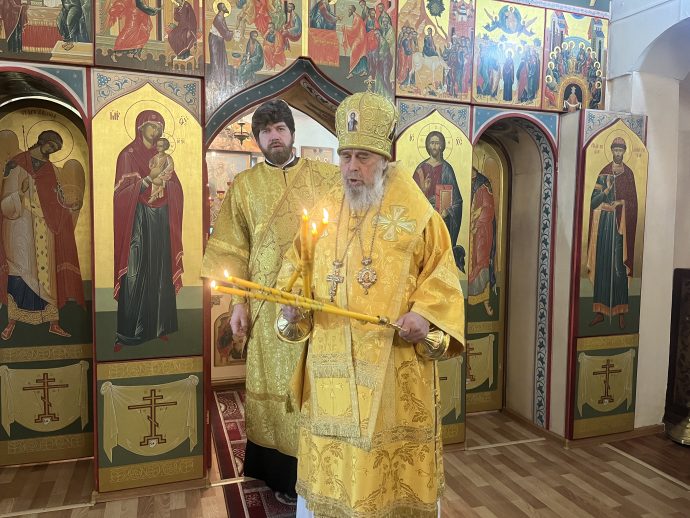 На сугубой ектении вознесены молитвы о благопоспешении христолюбивому Российскому воинству в установлении мира в сию лихую годину, на Святую Русь нашедшую, о мире на Украине, а также о сохранении единства святого Православия.