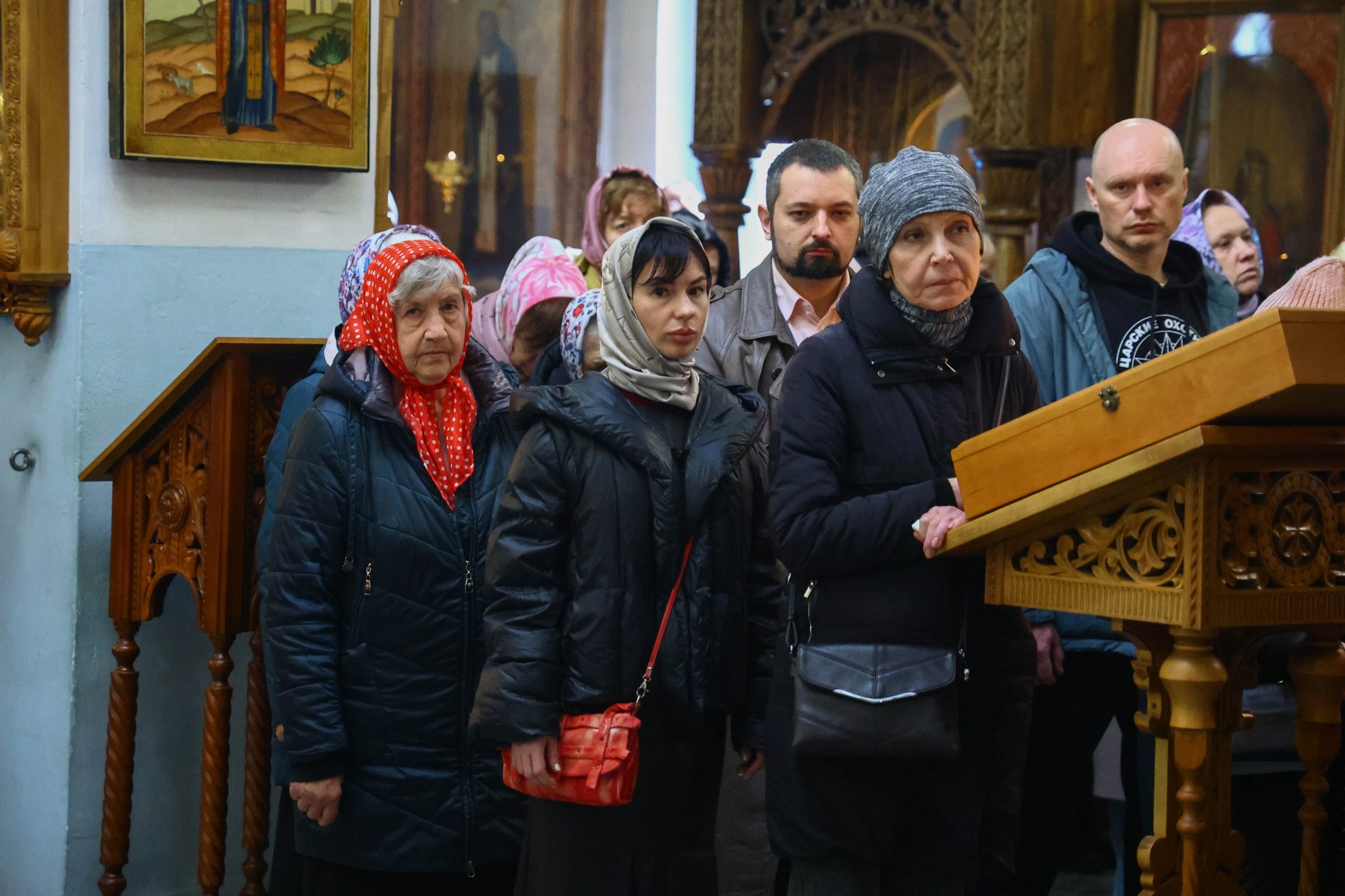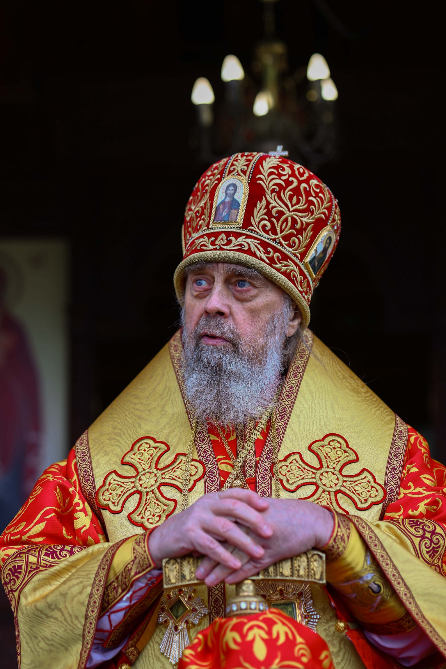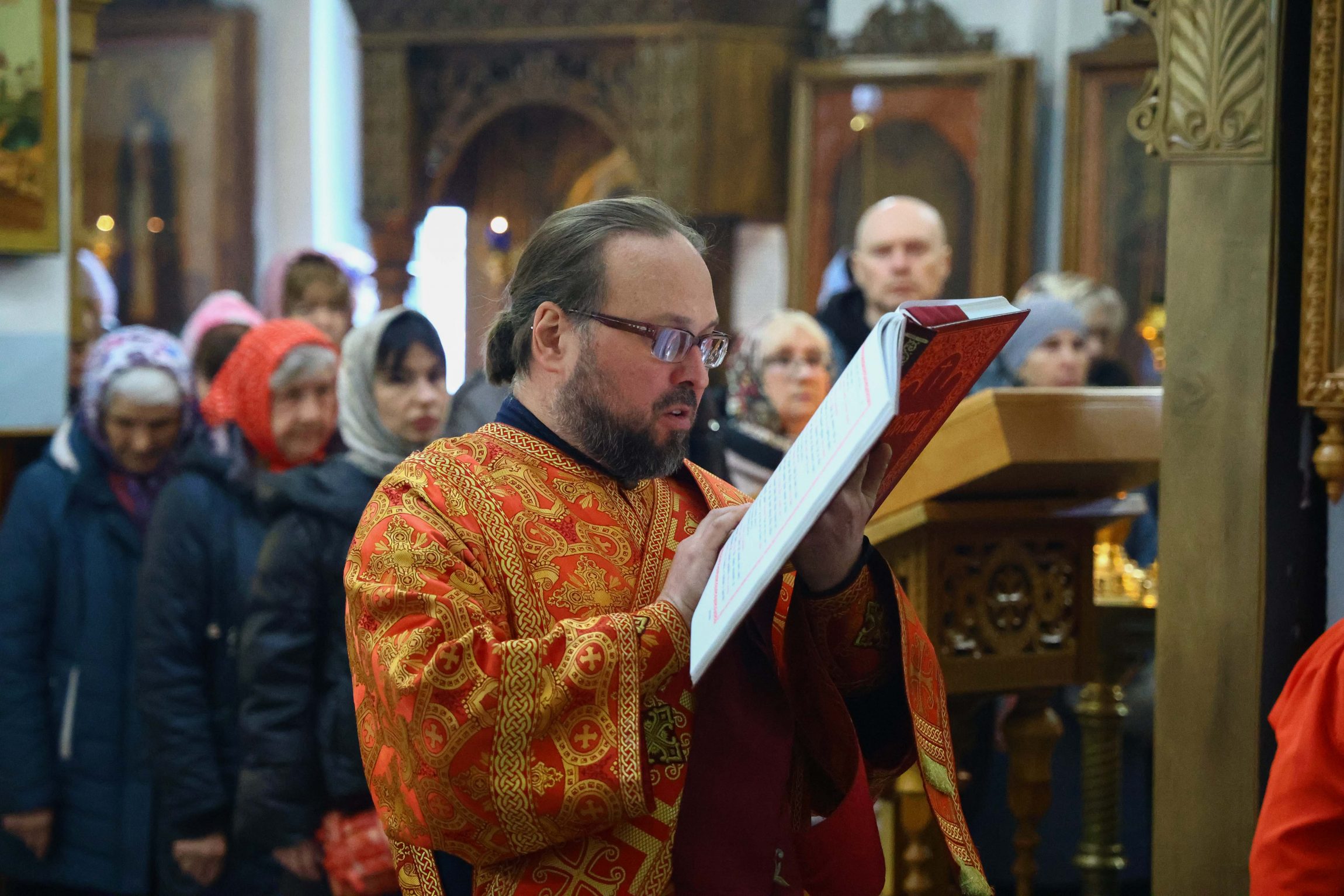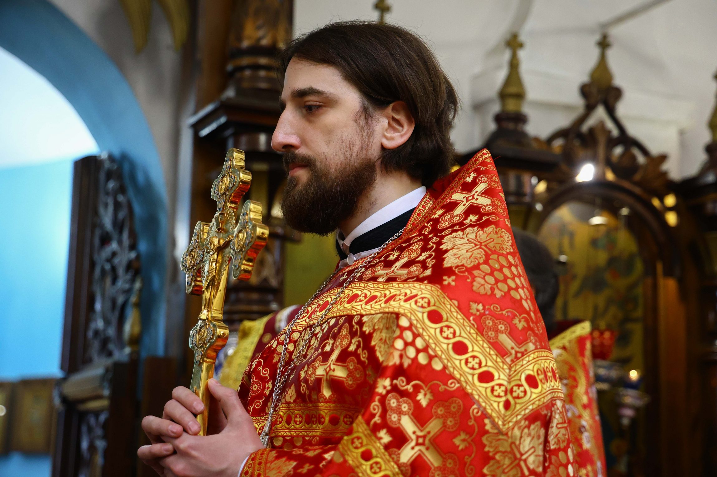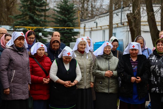 На сугубой ектении вознесены молитвы о благопоспешении христолюбивому Российскому воинству в установлении мира в сию лихую годину, на Святую Русь нашедшую, о мире на Украине, а также о сохранении единства святого Православия.