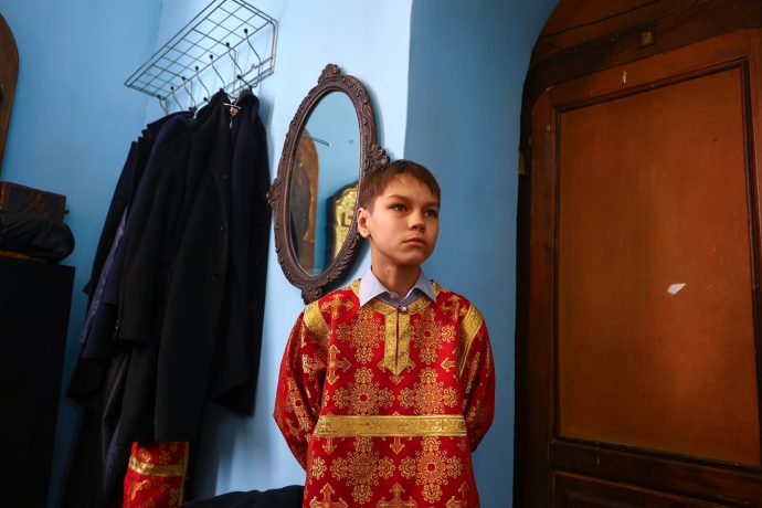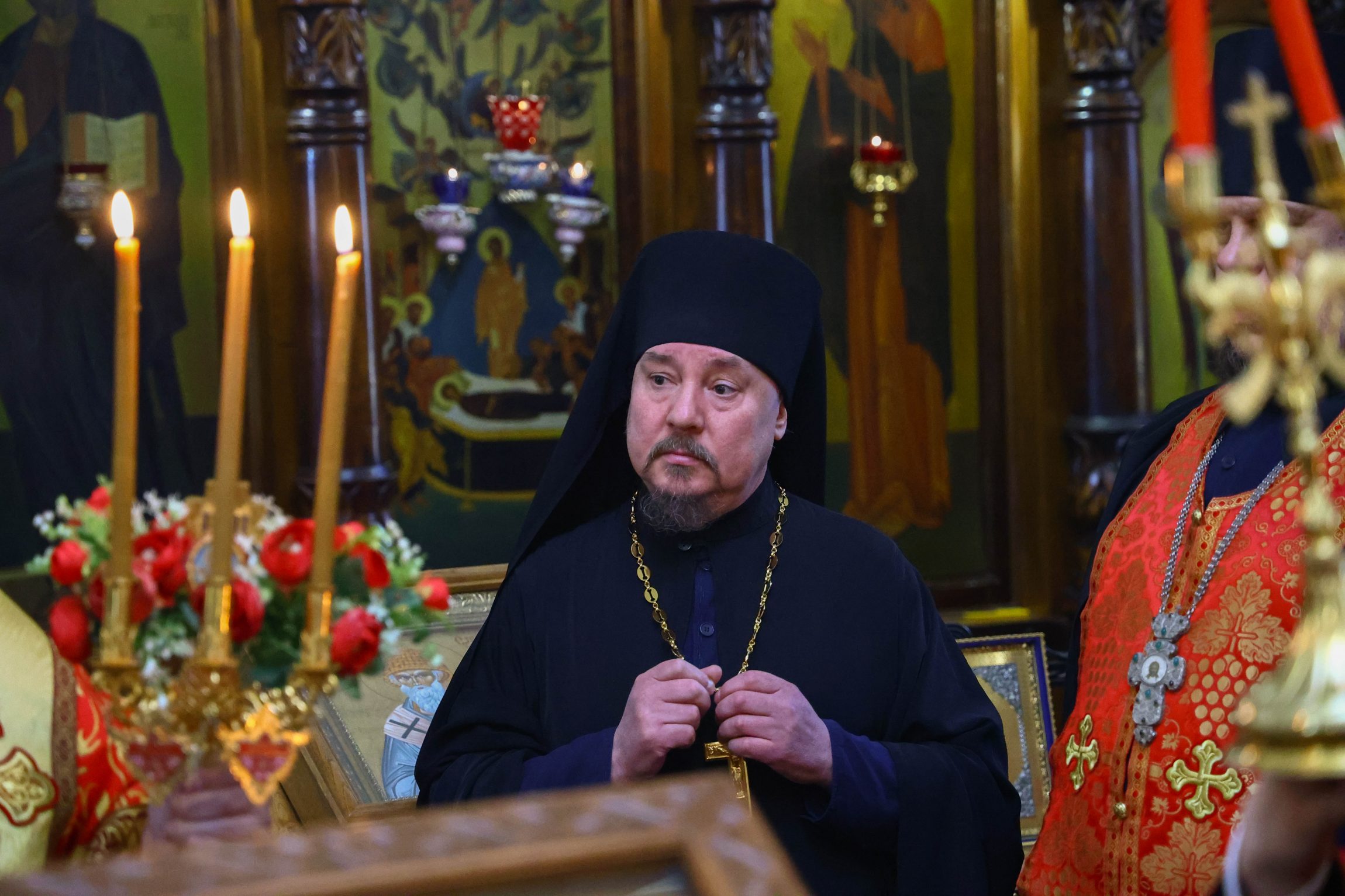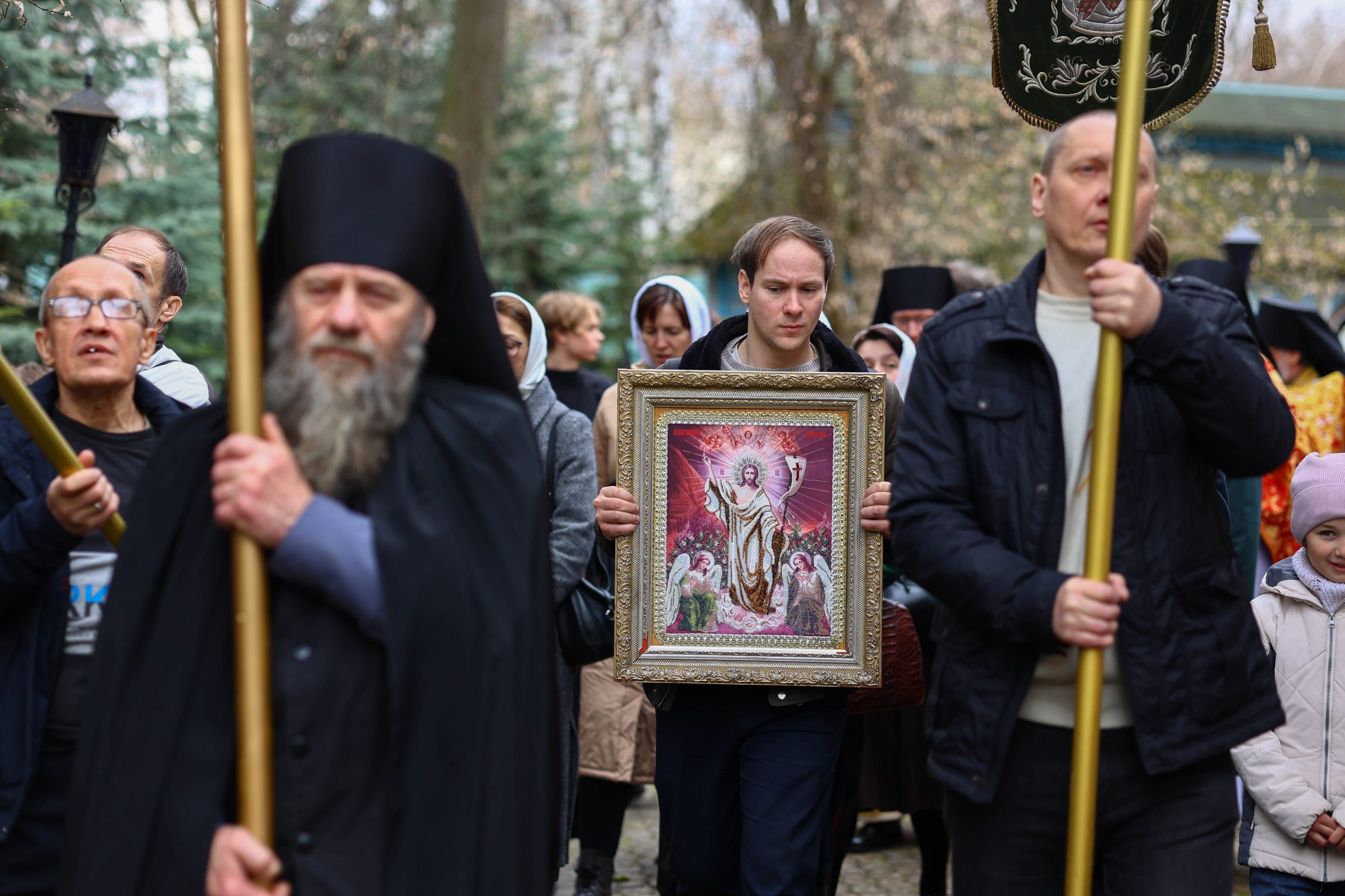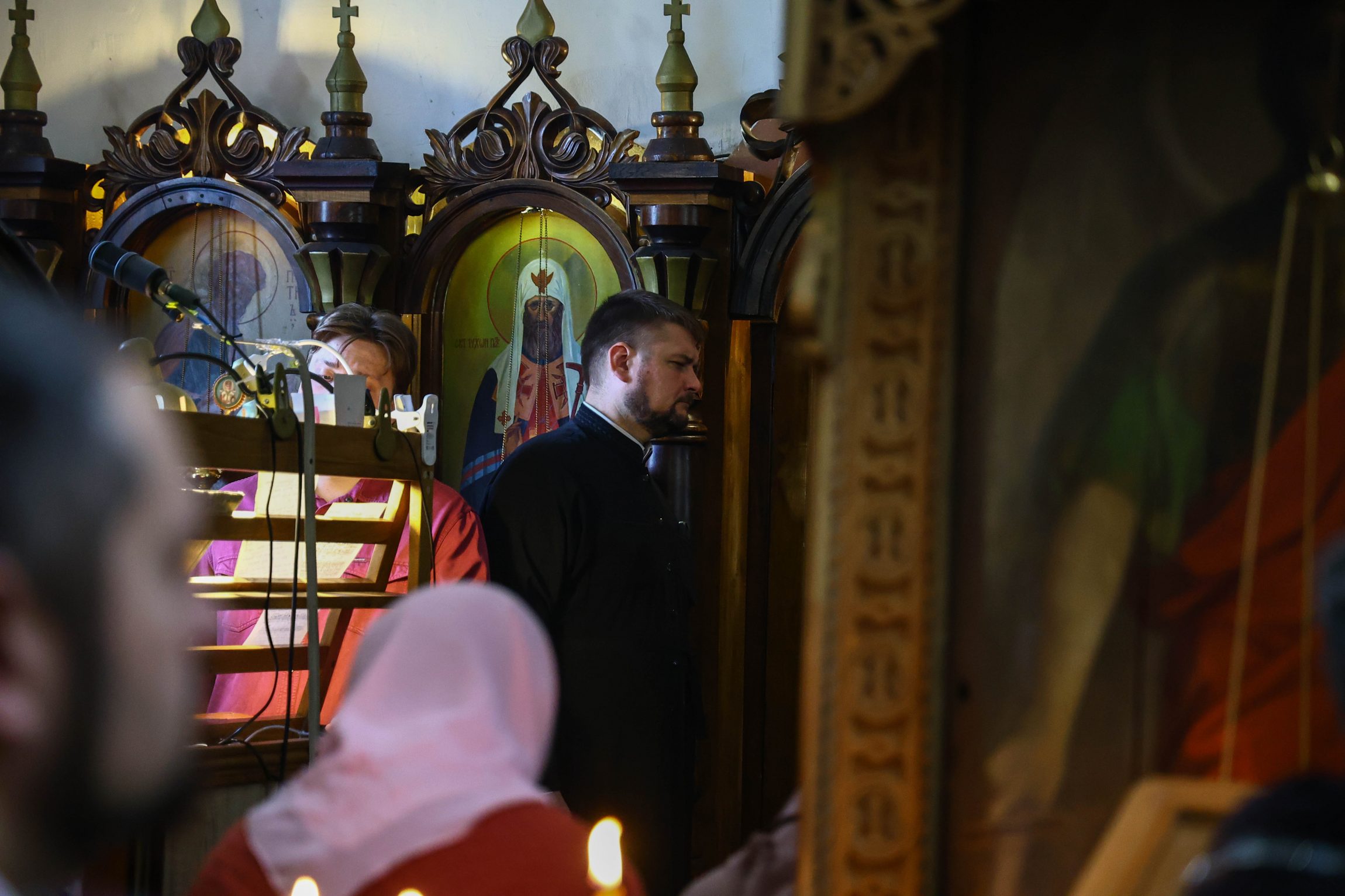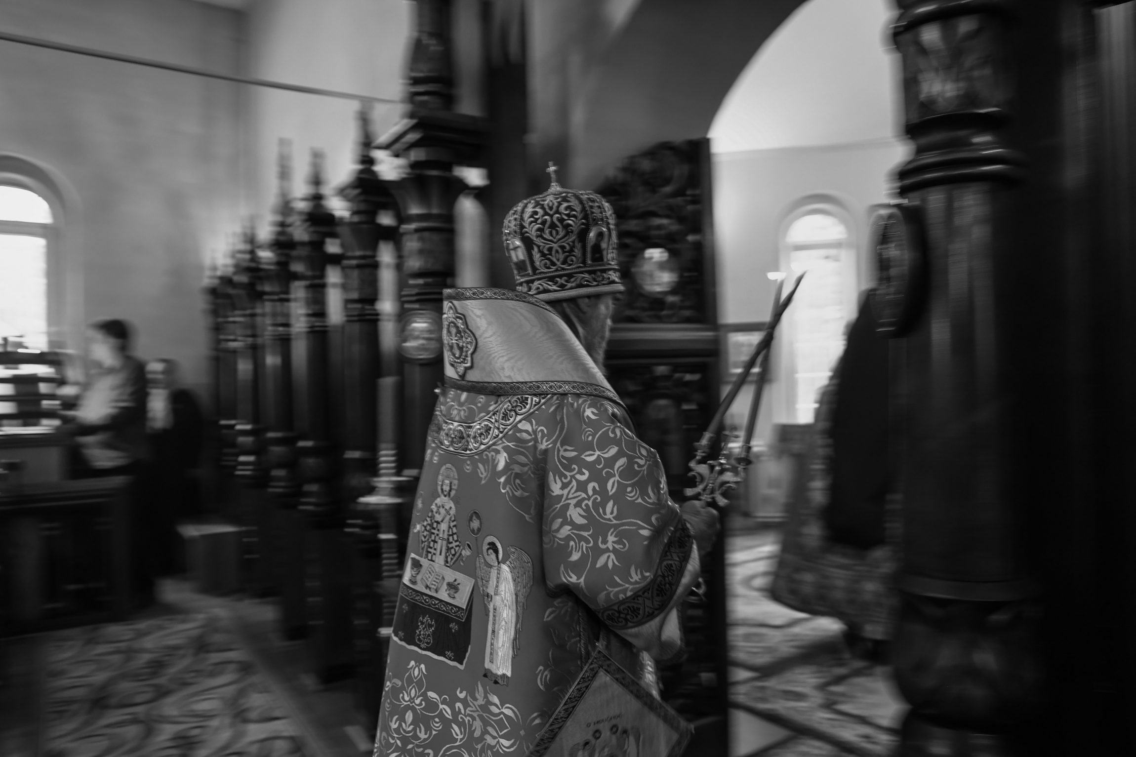 На сугубой ектении вознесены молитвы о благопоспешении христолюбивому Российскому воинству в установлении мира в сию лихую годину, на Святую Русь нашедшую, о мире на Украине, а также о сохранении единства святого Православия.