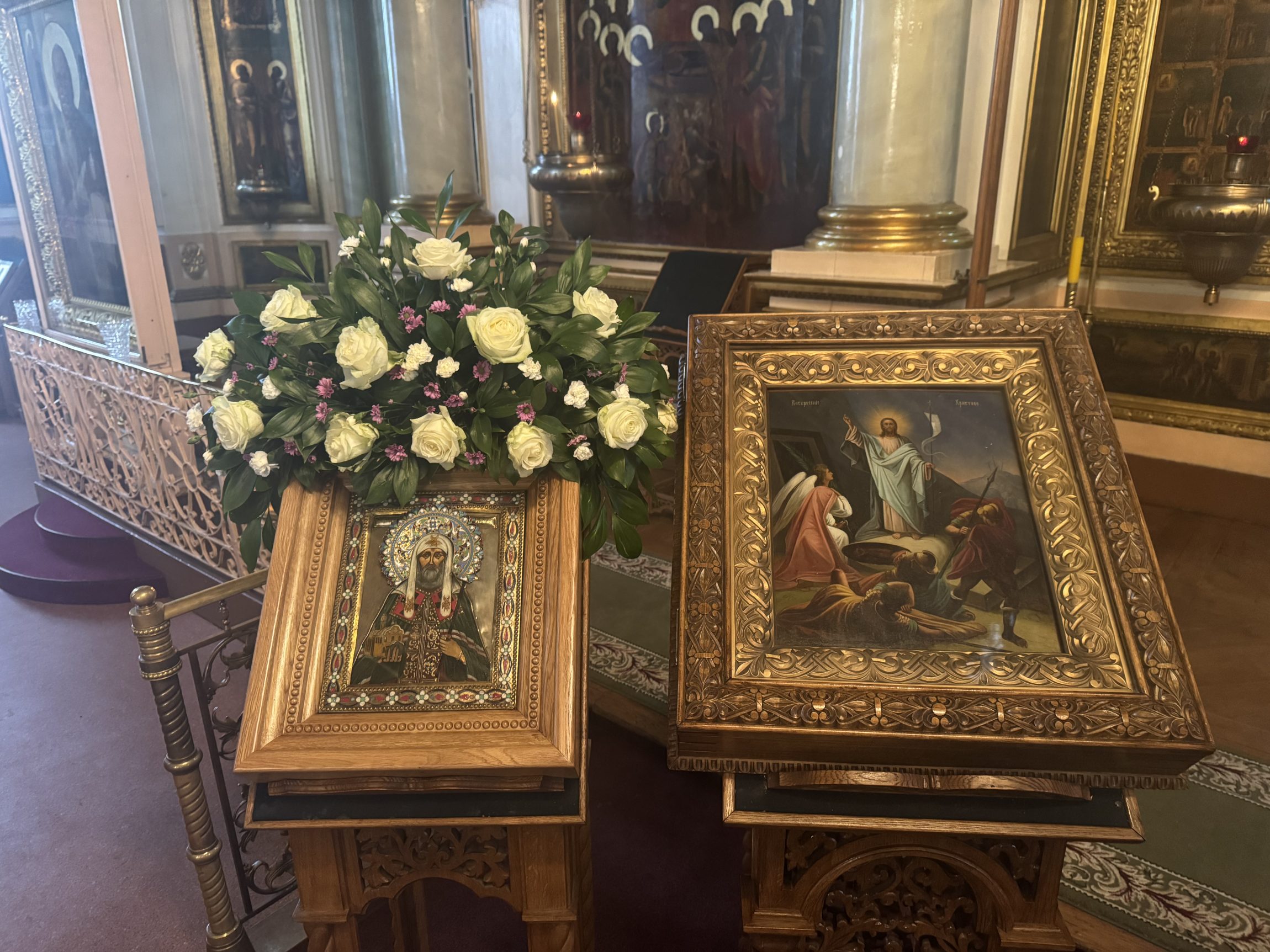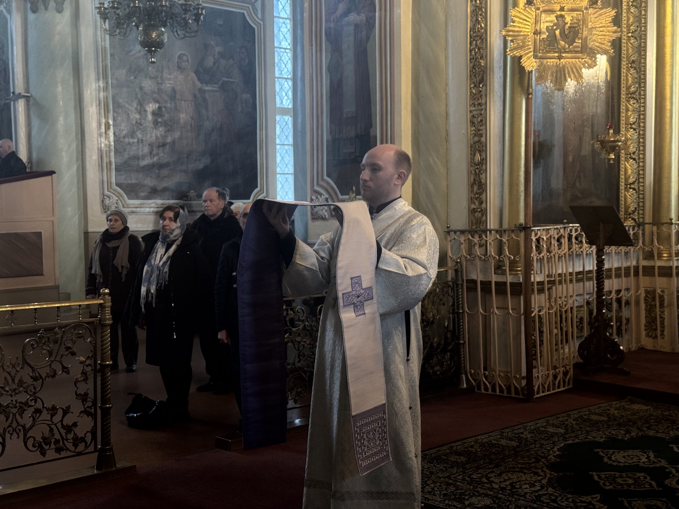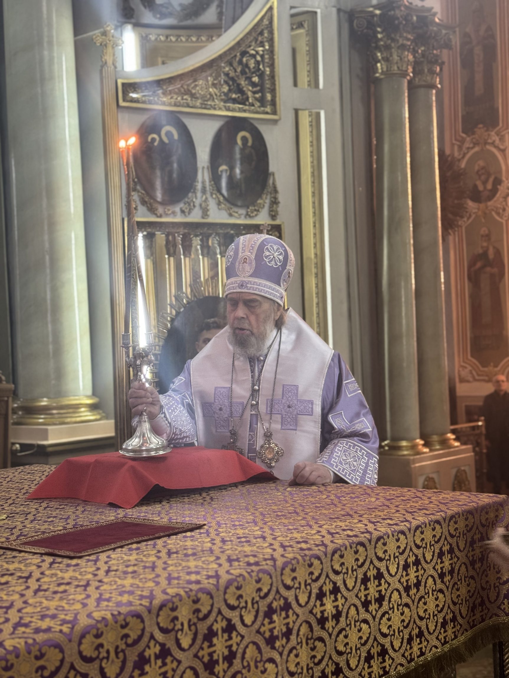 На сугубой ектении вознесены молитвы о благопоспешении христолюбивому Российскому воинству в установлении мира в сию лихую годину, на Святую Русь нашедшую, о мире на Украине, а также о сохранении единства святого Православия.