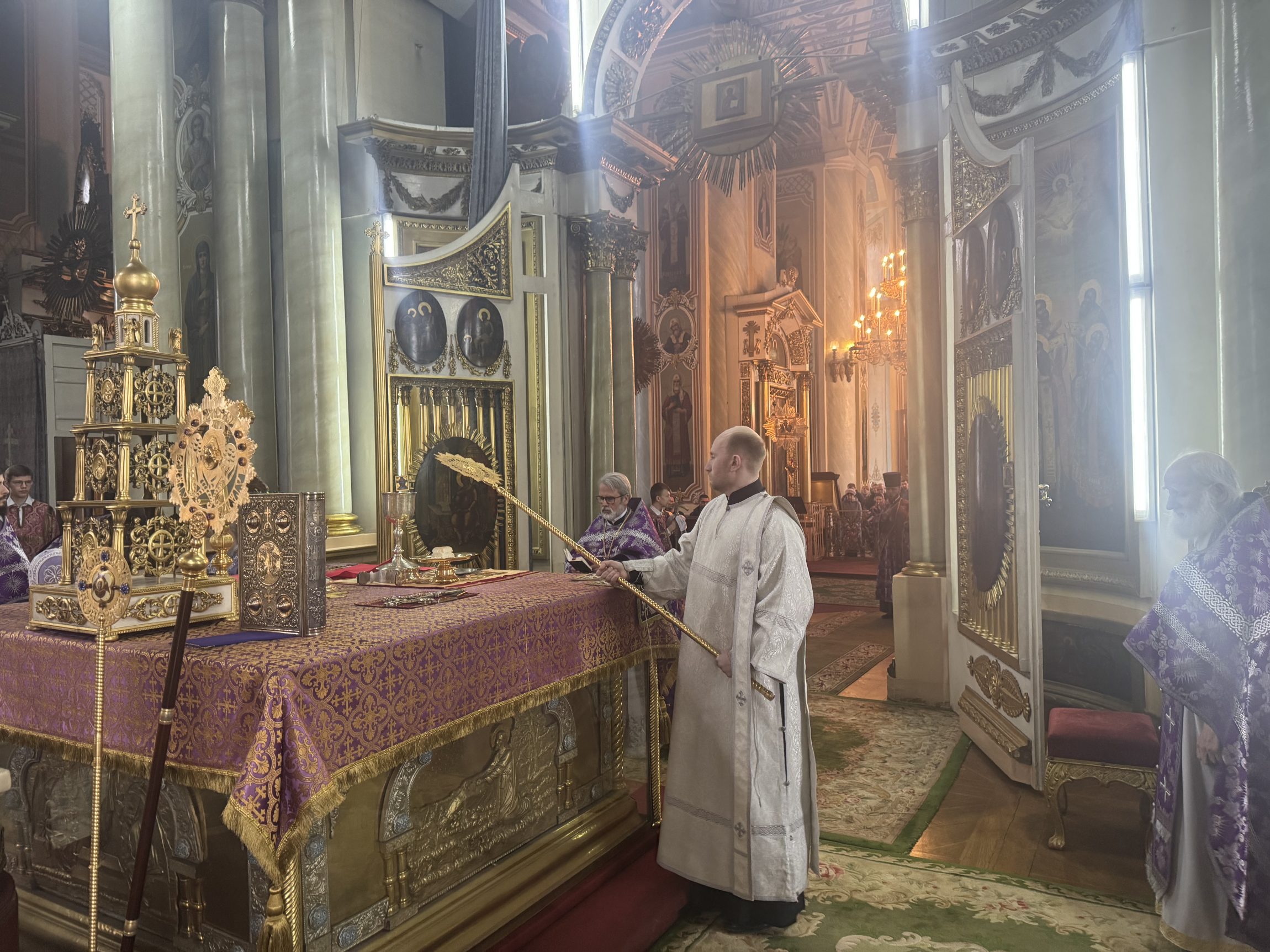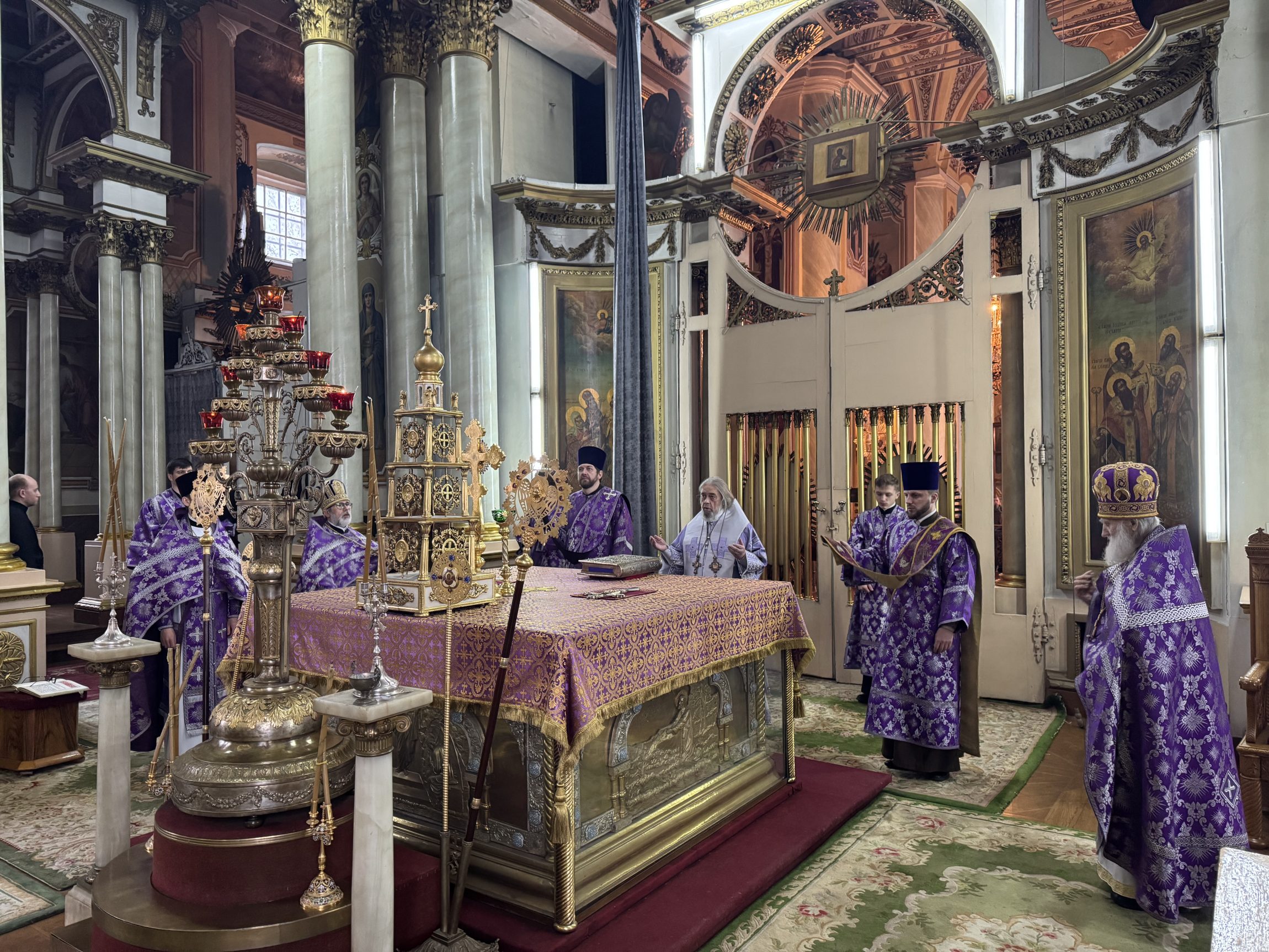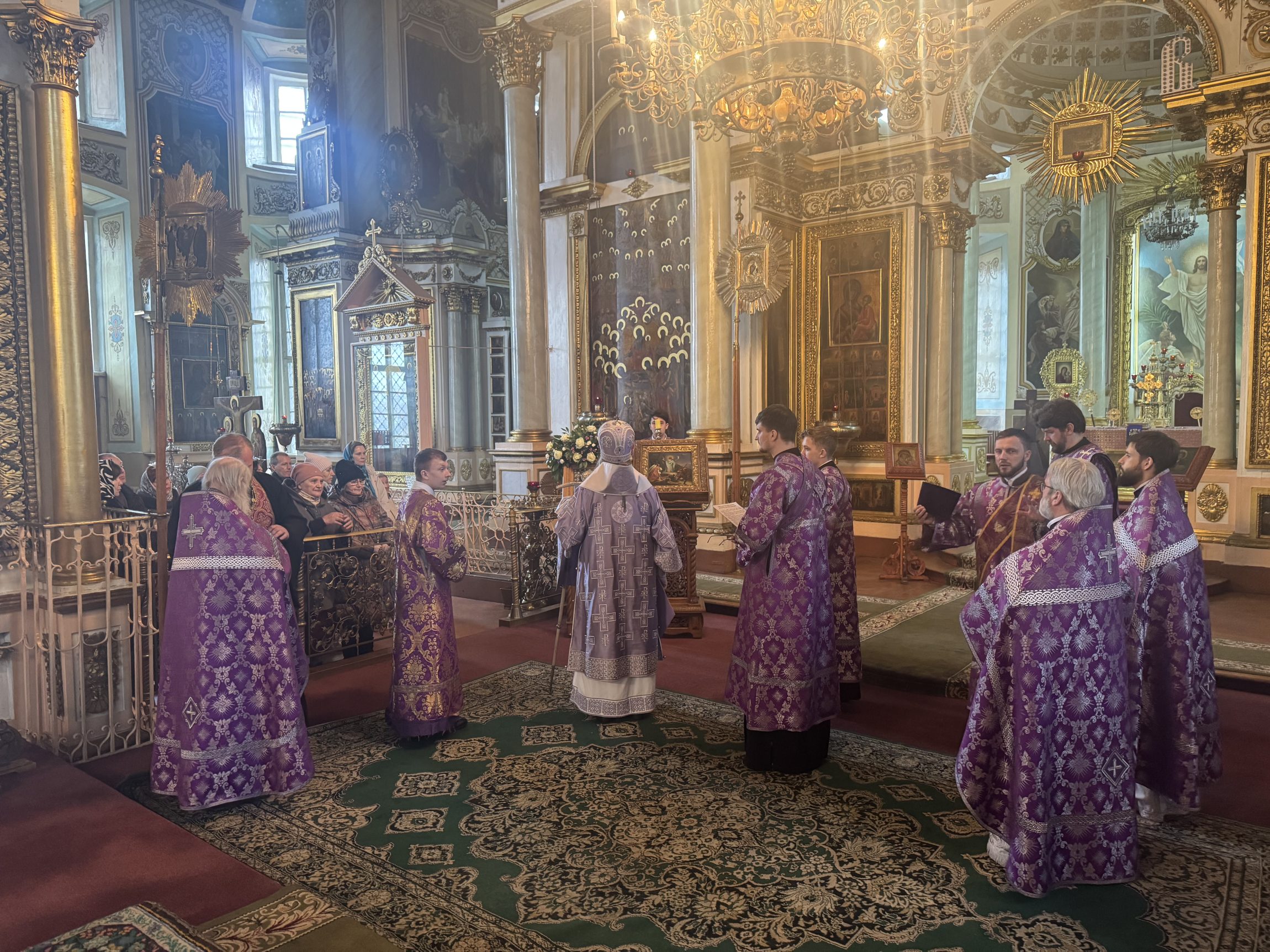 В день памяти преподобной Марии Египетской и 100-летия преставления святителя Тихона, Патриарха Московского, митрополит Тульский и Ефремовский Алексий совершил Божественную литургию во Всехсвятском кафедральном соборе города Тулы в сослужении соборного духовенства.