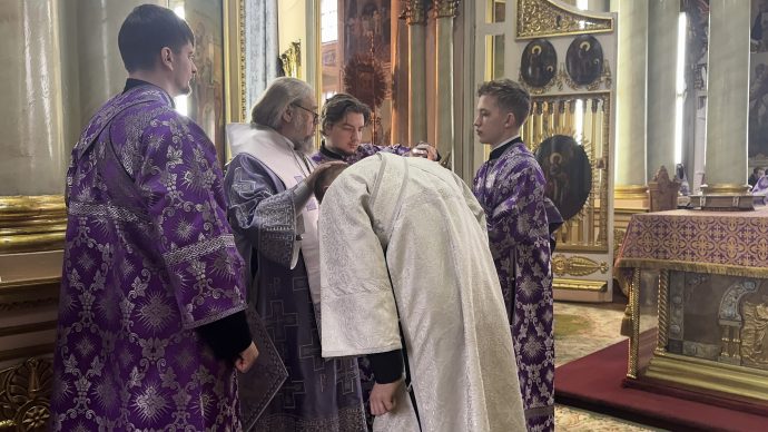 За богослужением в сан диакона рукоположен студент 3-го курса Тульской духовной семинарии Рустик Орехов.