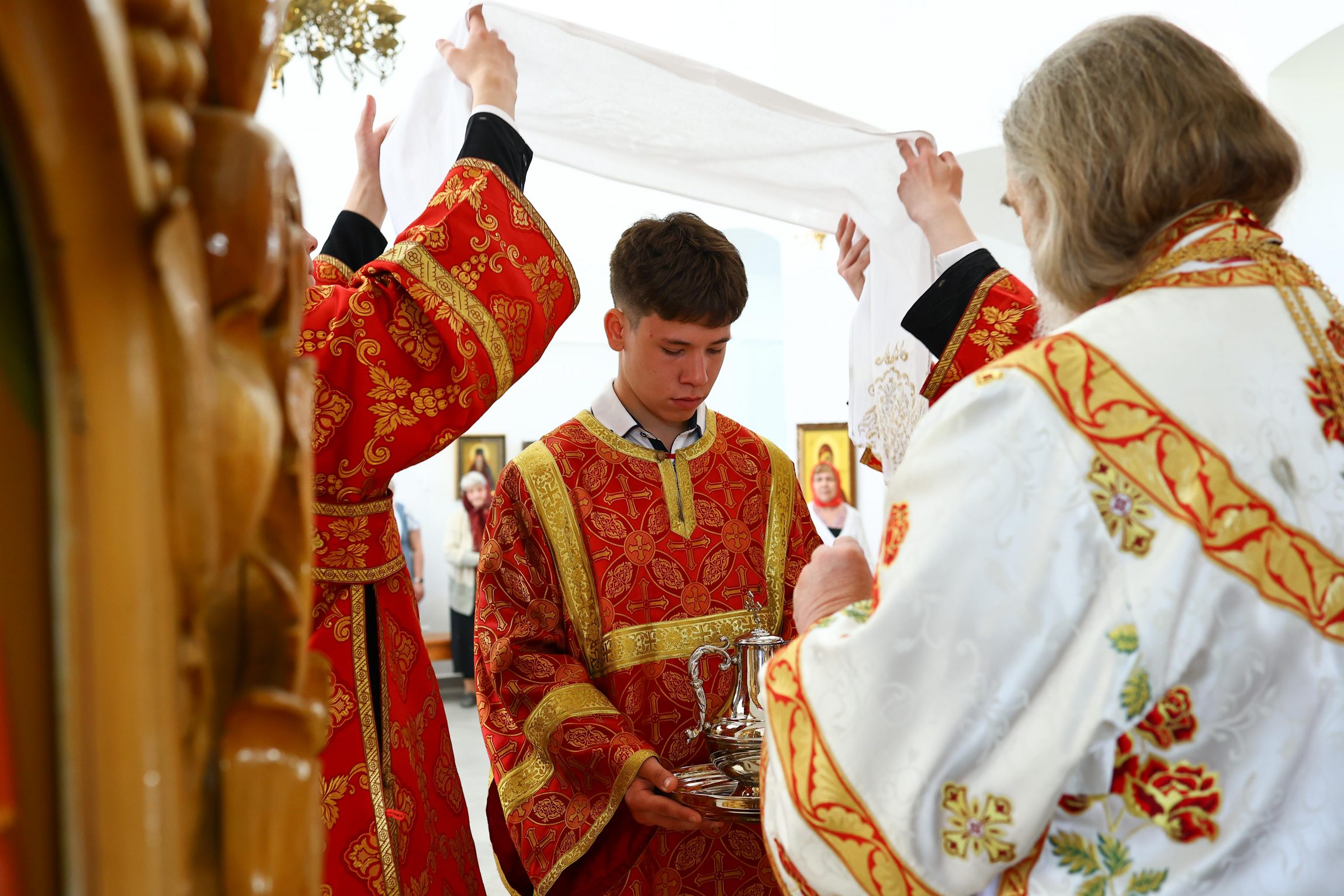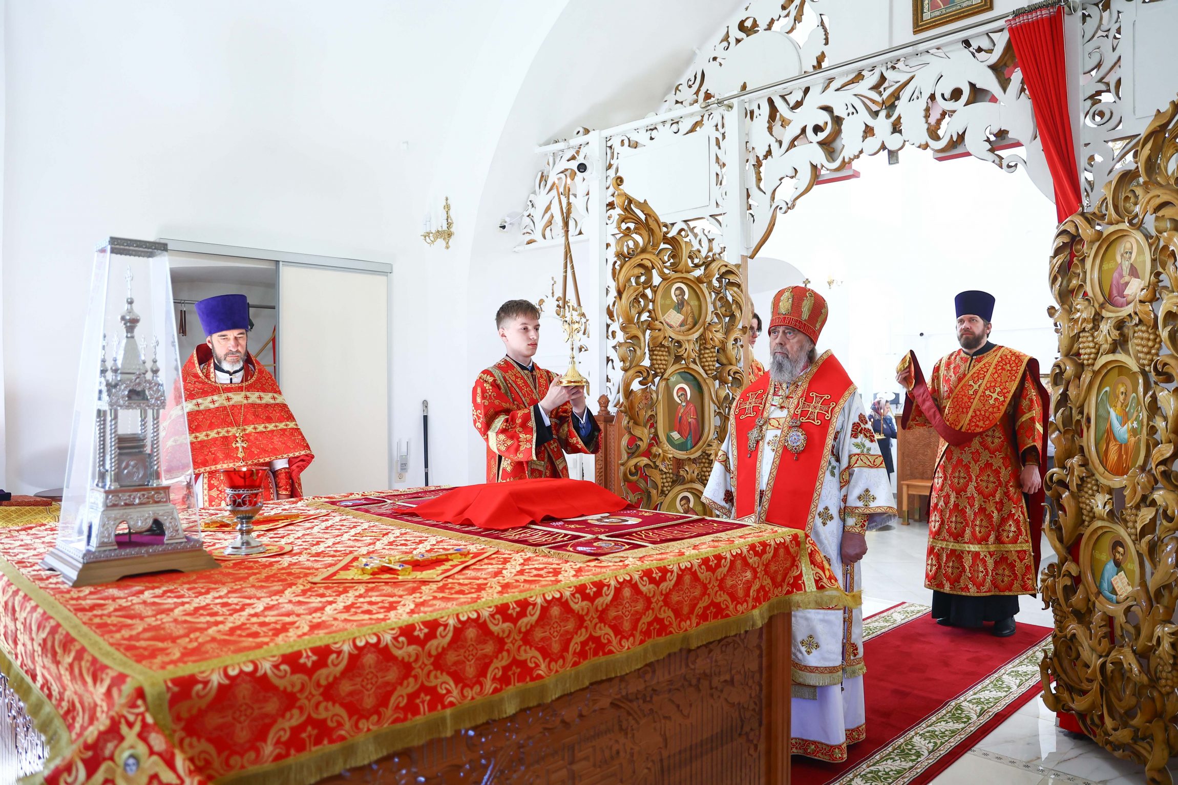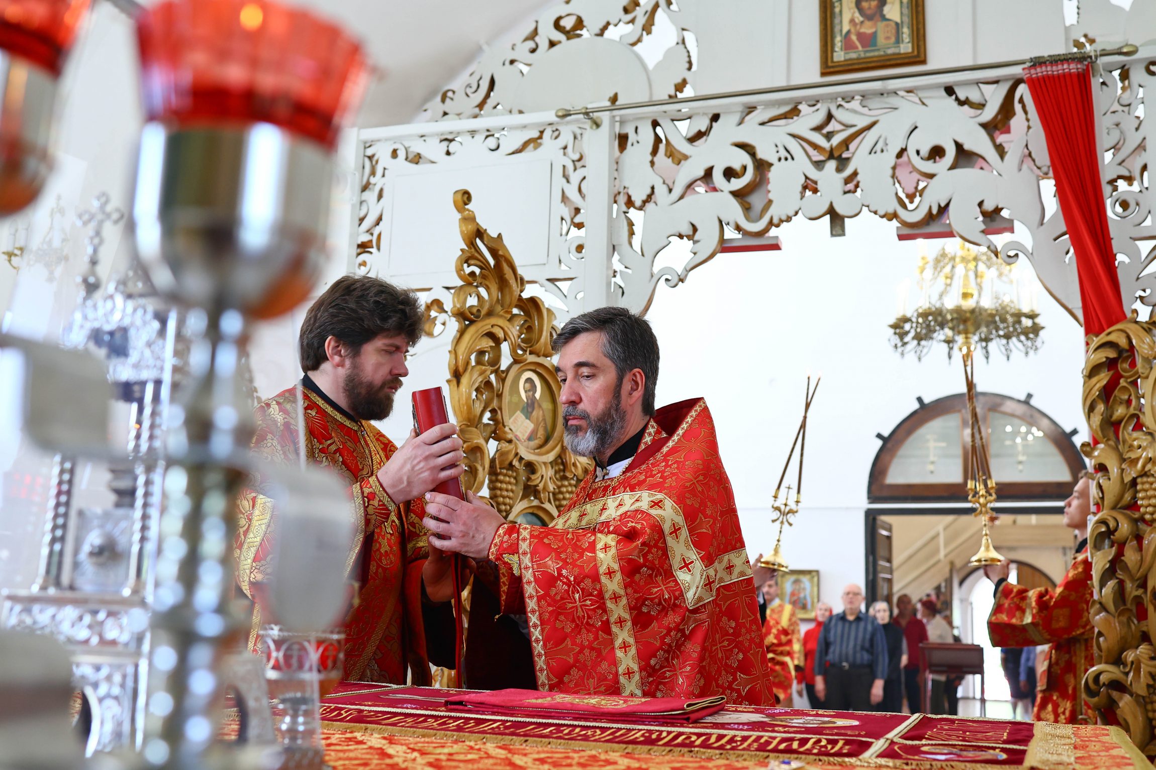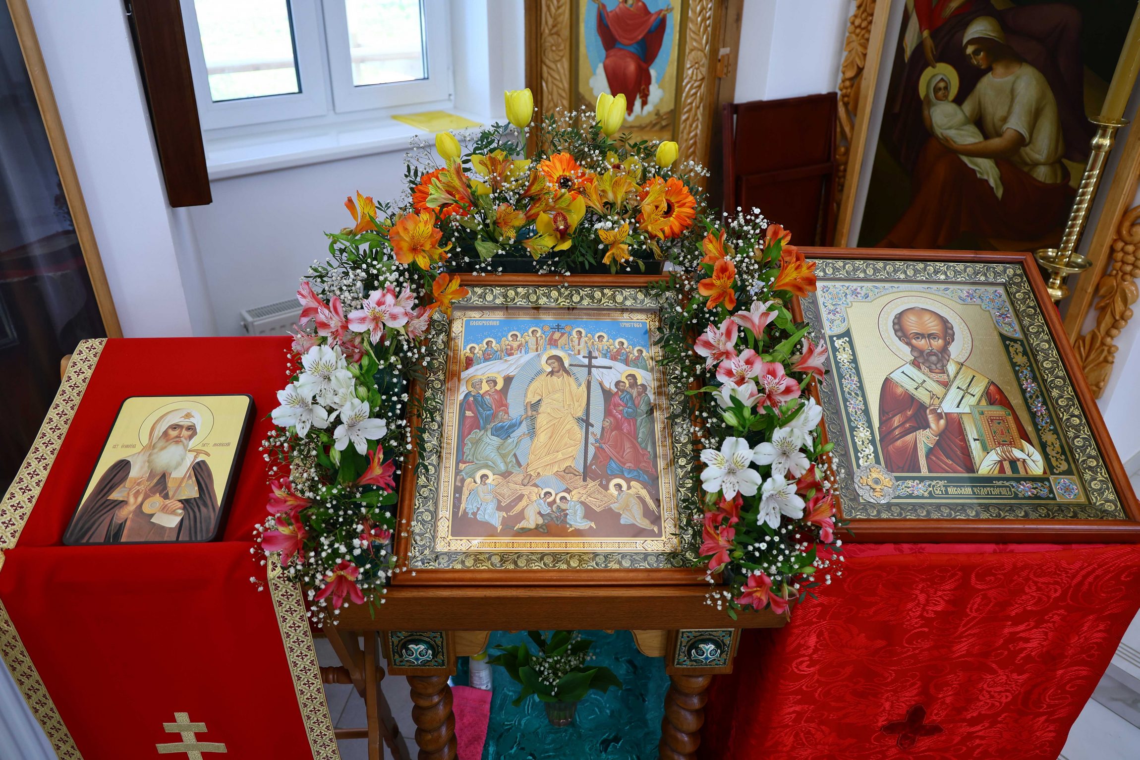 В этот праздничный день вседушевно поздравляю причастников с принятием Святых Христовых Таин, отца-благочинного, отца-настоятеля и всех вас —с замечательными пасхальными днями, с предстоящим празднованием престольного торжества вашего храма!