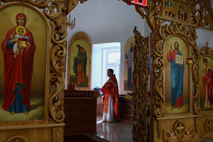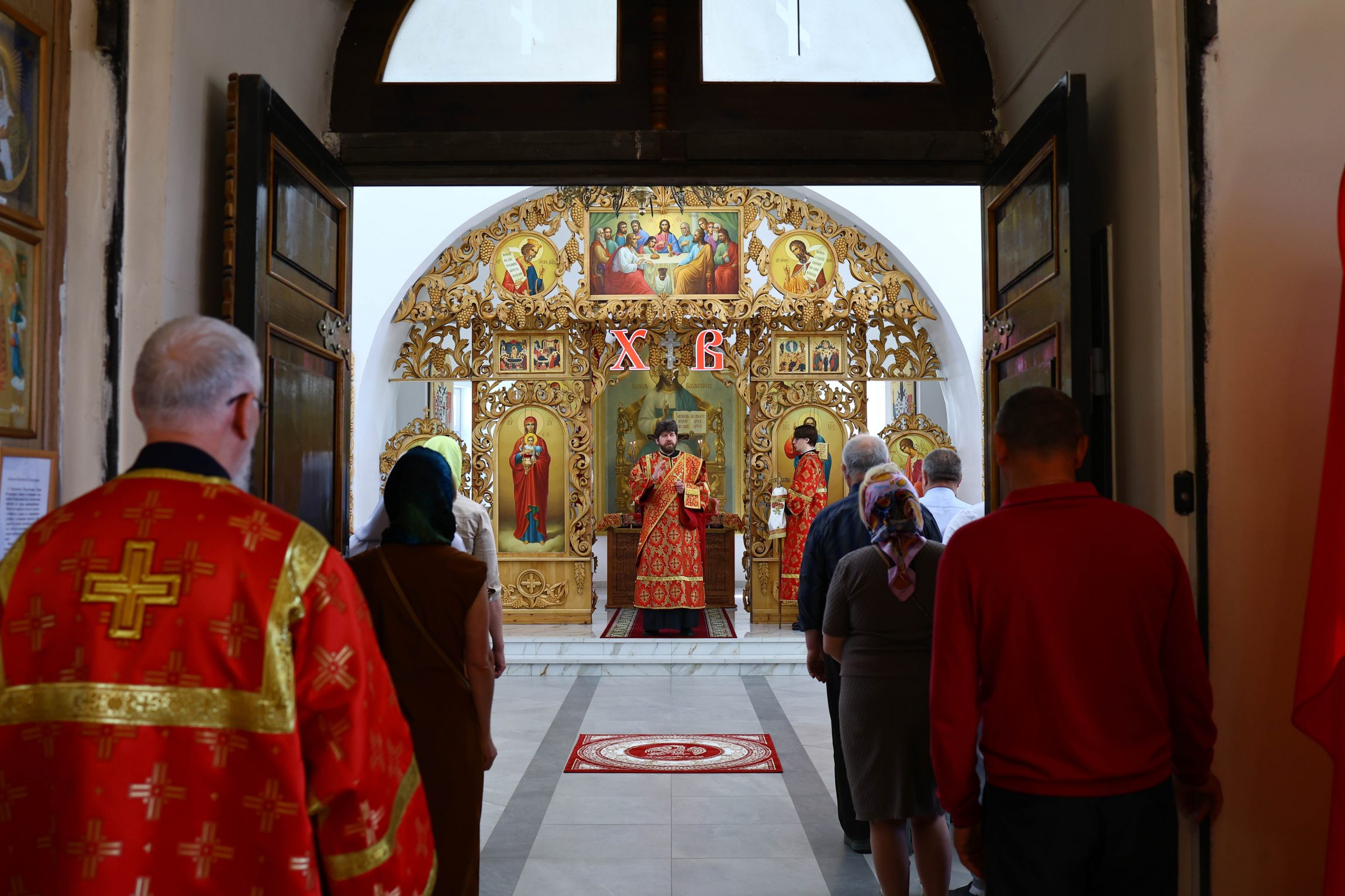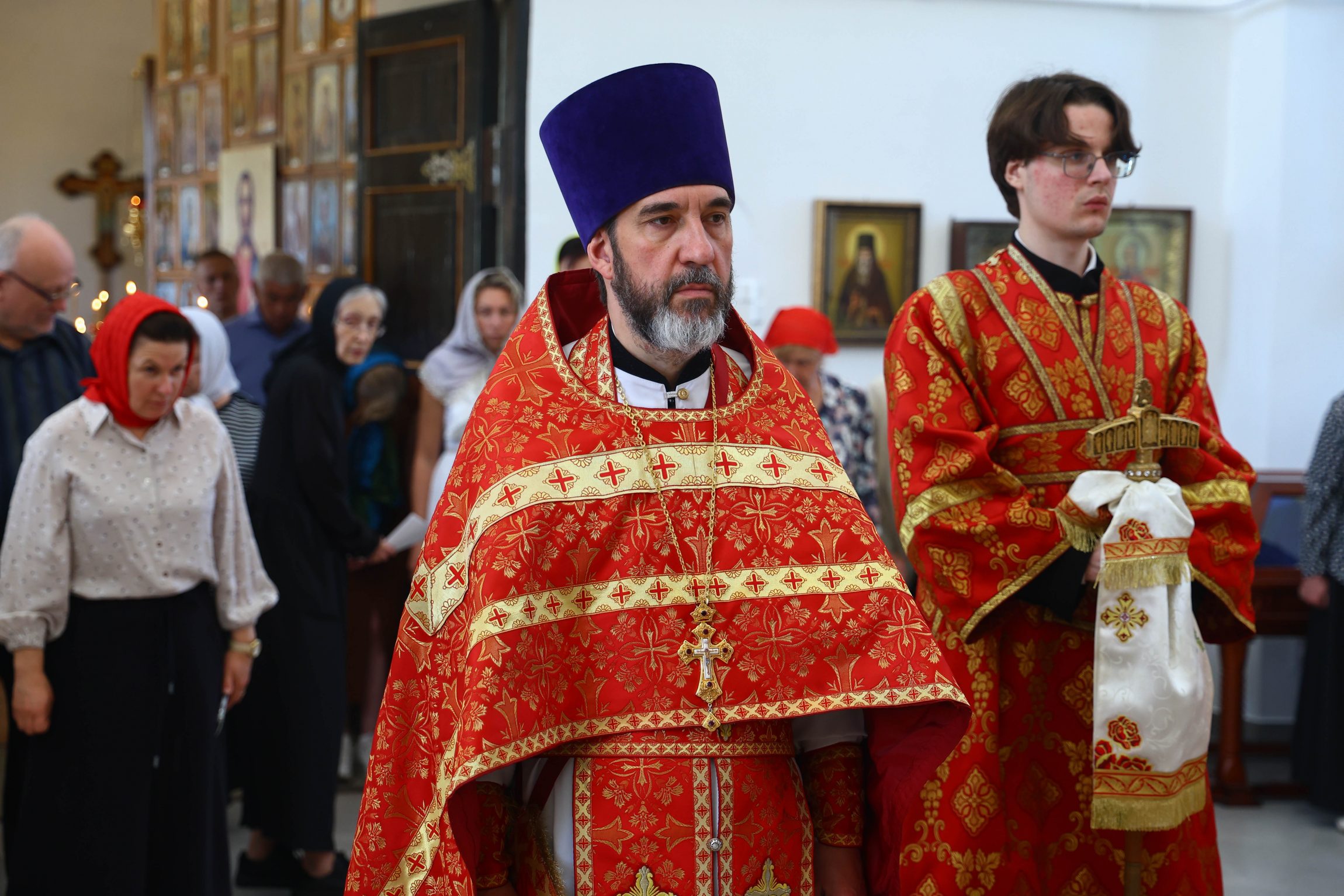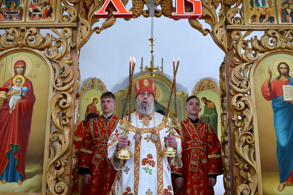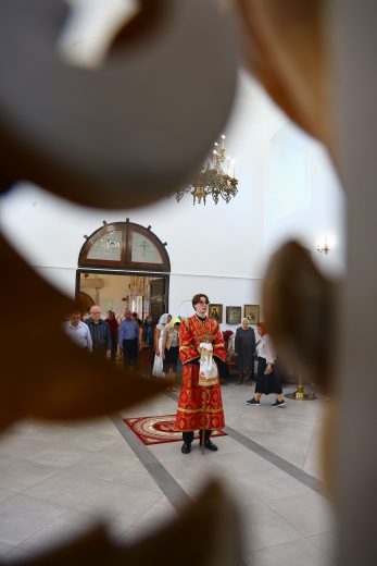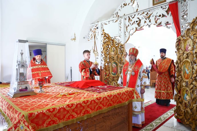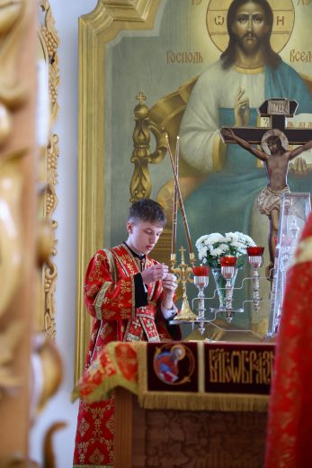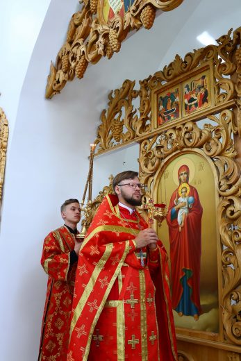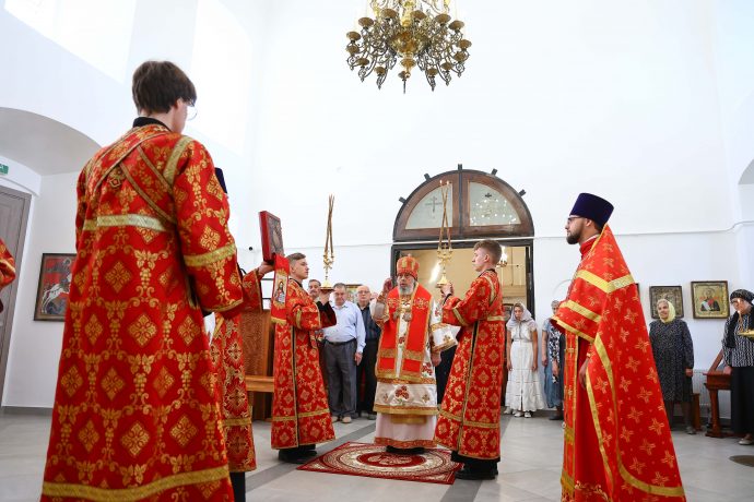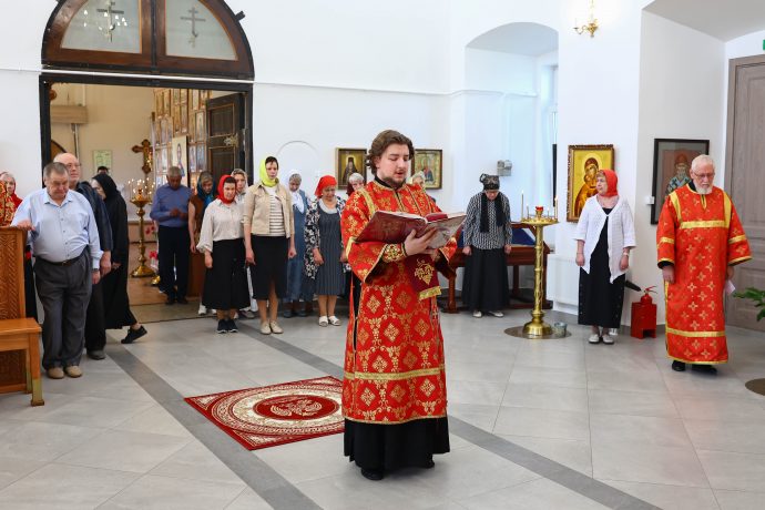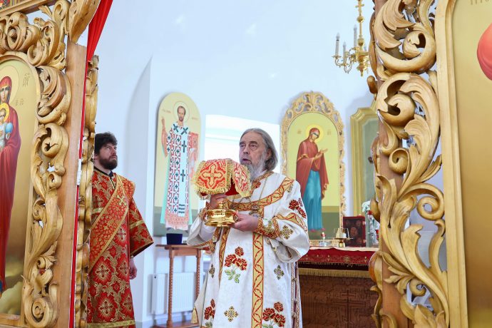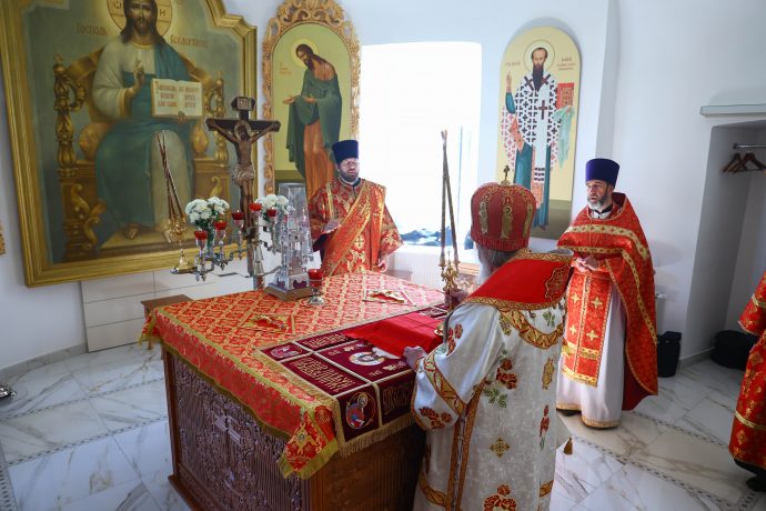 На сугубой ектении вознесены молитвы о благопоспешении христолюбивому Российскому воинству в установлении мира в сию лихую годину, на Святую Русь нашедшую, о мире на Украине, а также о сохранении единства святого Православия.