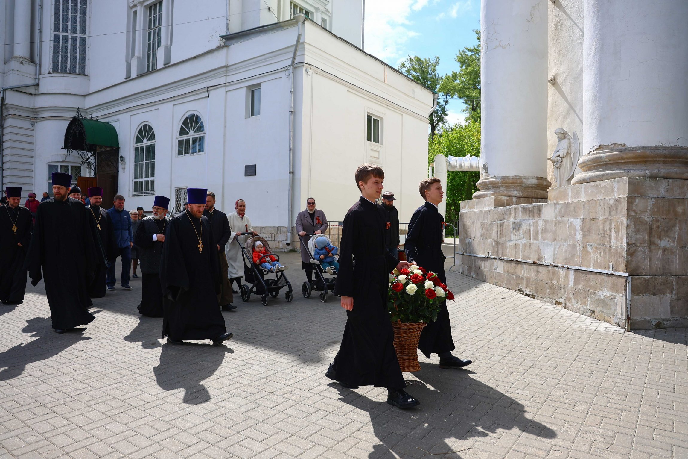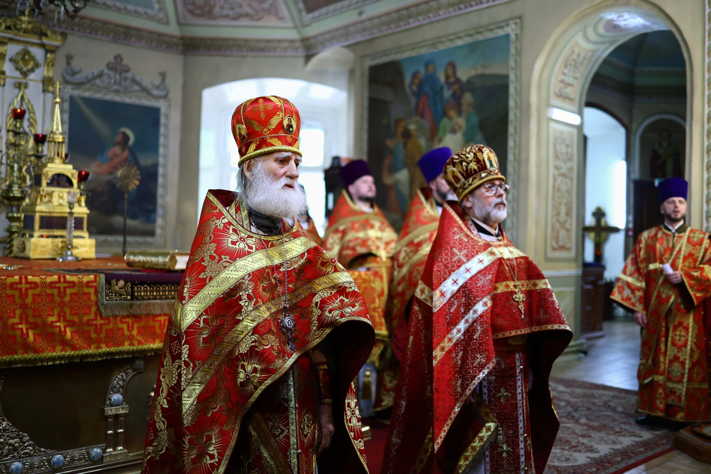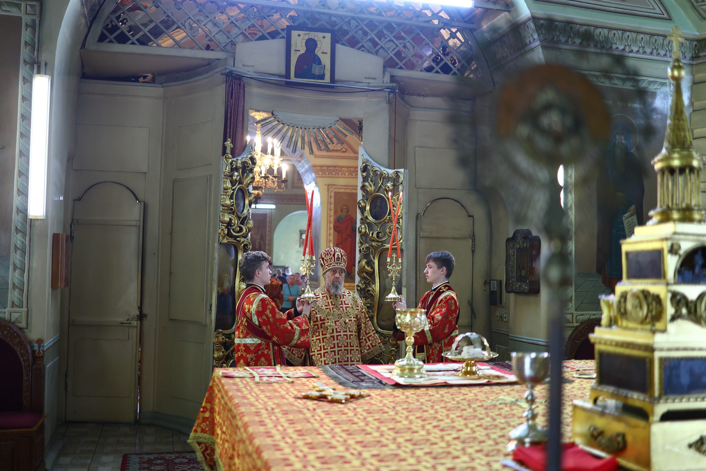 В благознаменитый день 80-летия радостоносной Великой Победы в Великой Отечественной войне митрополит Тульский и Ефремовский Алексий совершил Божественную литургию во Всехсвятском кафедральном соборе города Тулы в сослужении соборного духовенства.