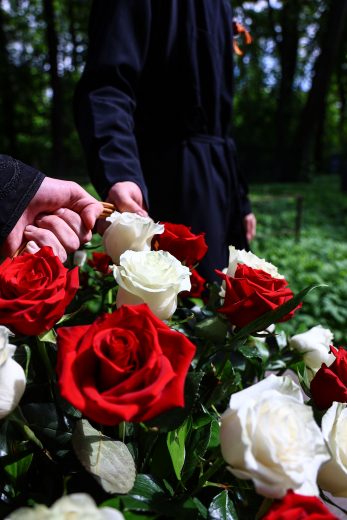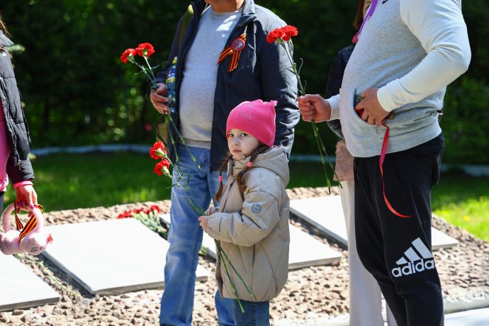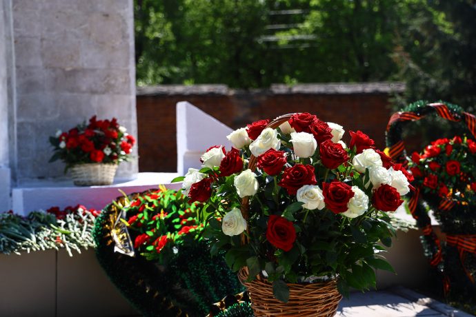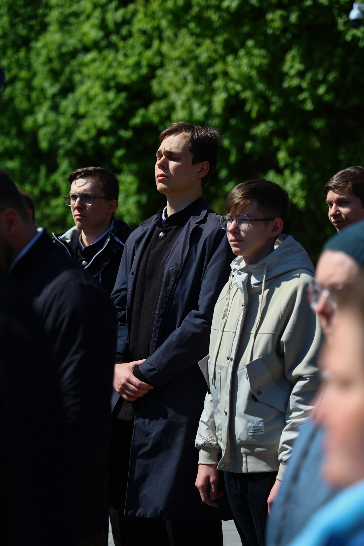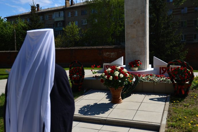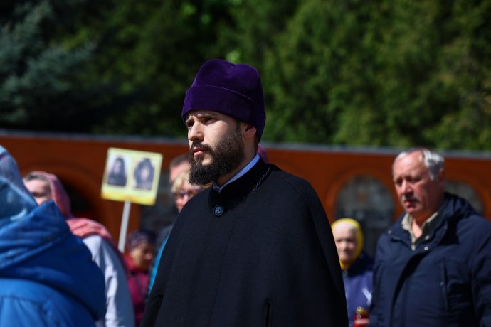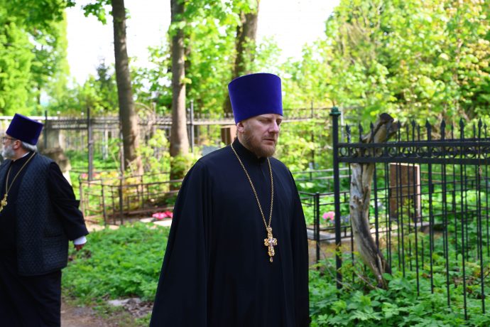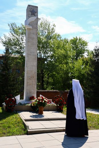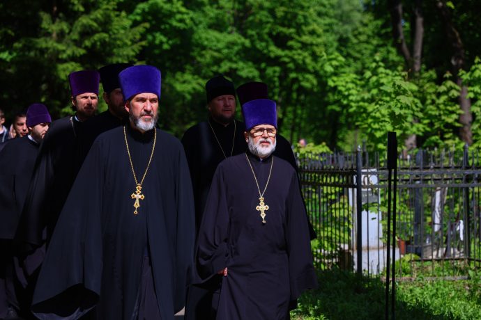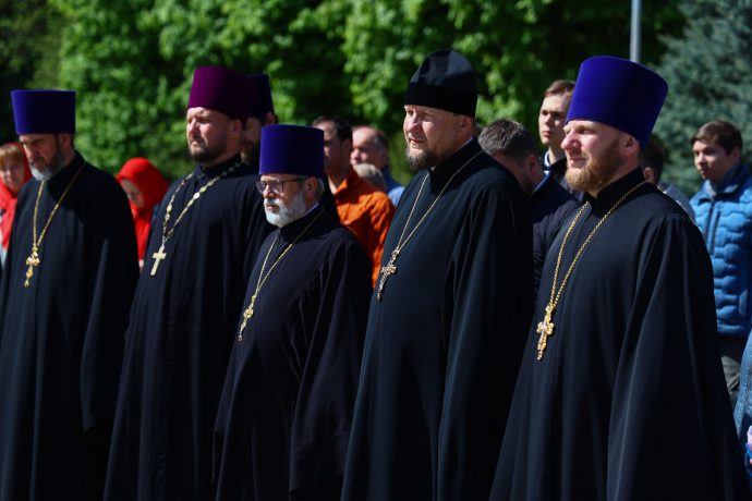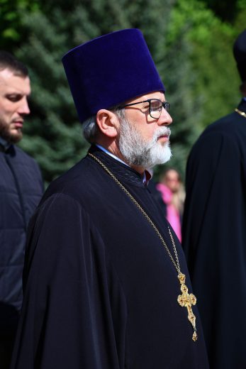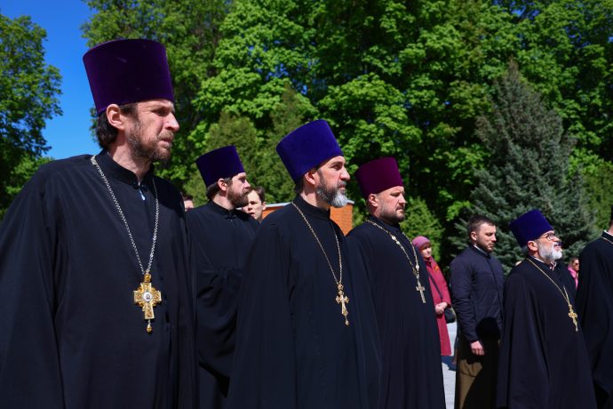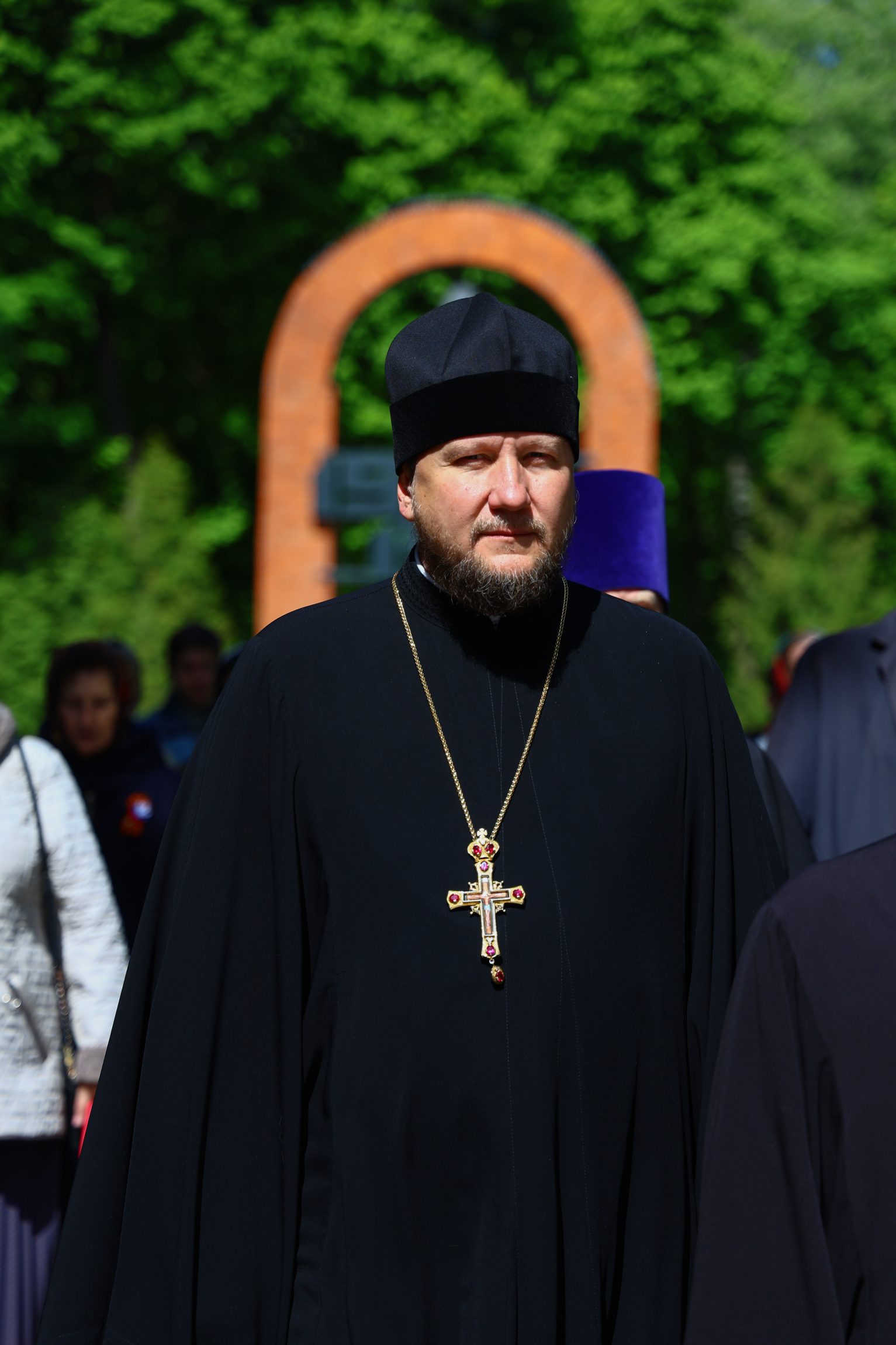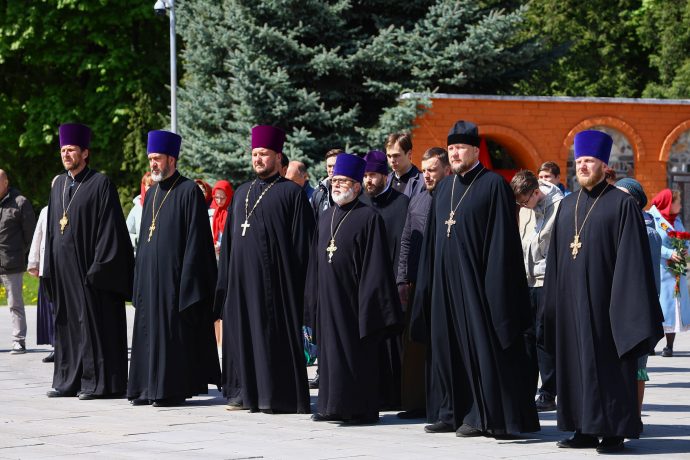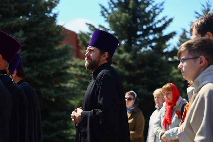 После чего архипастырь возглавил шествие духовенства и паствы к расположенному на старинном Всехсвятском кладбище мемориалу Защитникам Отечества, где поздравил всех с Днем Победы: «Восьмидесятая сия весна в истории нашего народа, Отечества и Святой нашей Матери, Русской Православной Церкви, соединяет собой сугубую радость Христовой победы над осуществленным подвигом Его самозабвенной жертвенной любви безвластием смерти навсегда удерживать поглощаемых ею грехолюбцев и смертотворцев и радость победы христоподобного человеческого духа наших прадедов и дедов, отдавших самое дорогое, что у них было, — жизнь, в непостыдной надежде, что все устрояющий ко благу миробытия человека Бог, во Святой Троице славимый и поклоняемый, ради этого их жизненного труда и христоподобного подвига даст возможность на бескрайних просторах Отечества нашего продолжаться жизни, человеческому творчеству, духовному прозрению путей Божественного Промысла и искренней ответной сердечной благодарности, немеркнущей из поколения в поколение, человеческих сердец всем тем, кто христоподобно принес в эти 1418 дней такой жертвенный высокий подвиг.