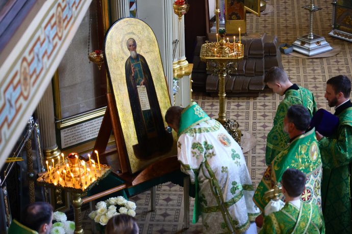 Благодарю отца-настоятеля, братию и всех вас за усердие, с которым вы негасимо теплите в своих сердцах и под этими сводами светлую лампаду любви и преданности Богу, во Святой Троице славимому и поклоняемому!»