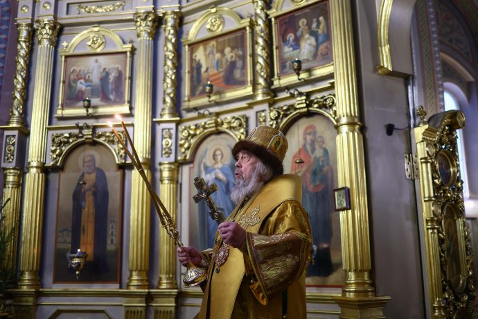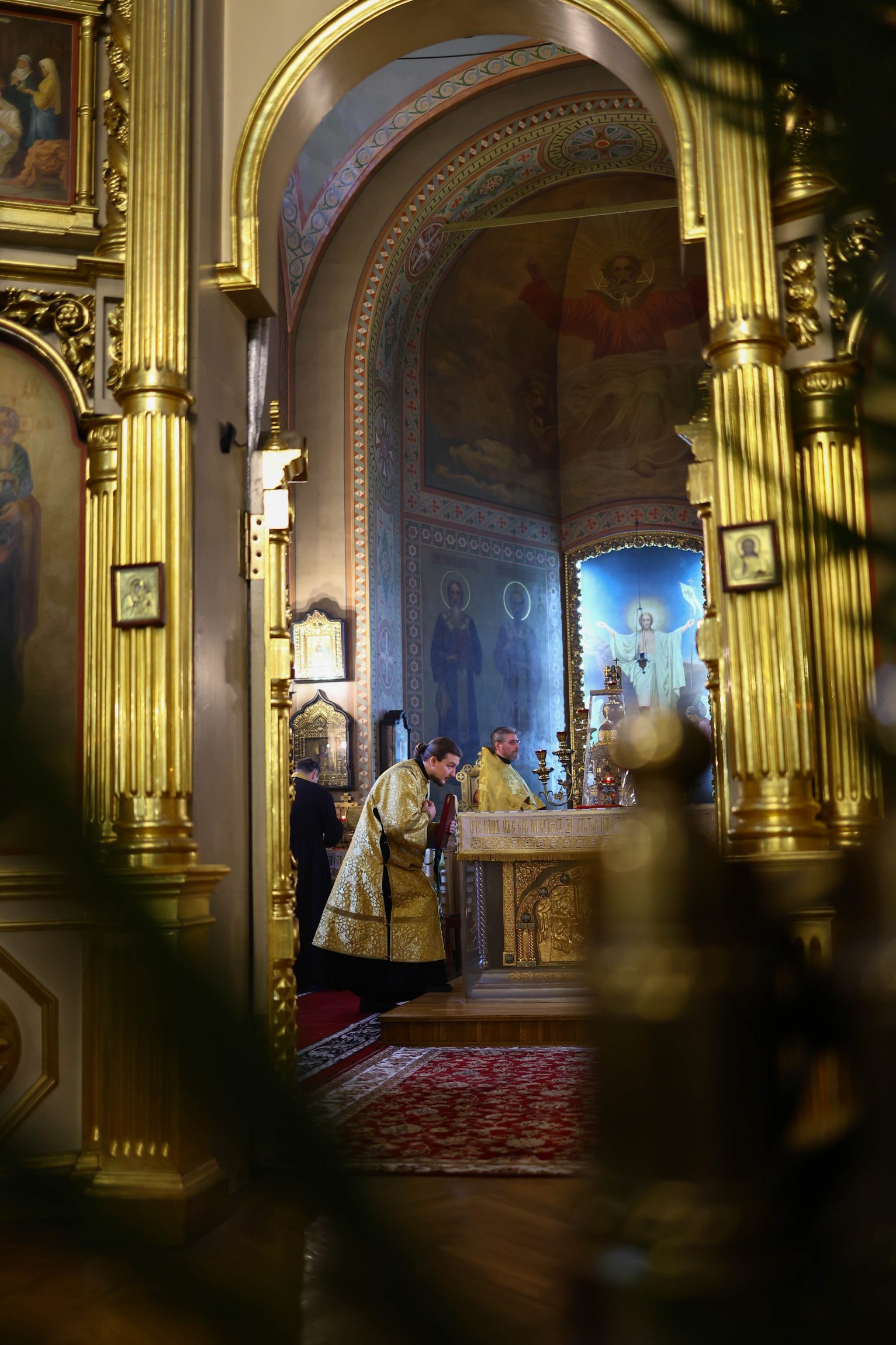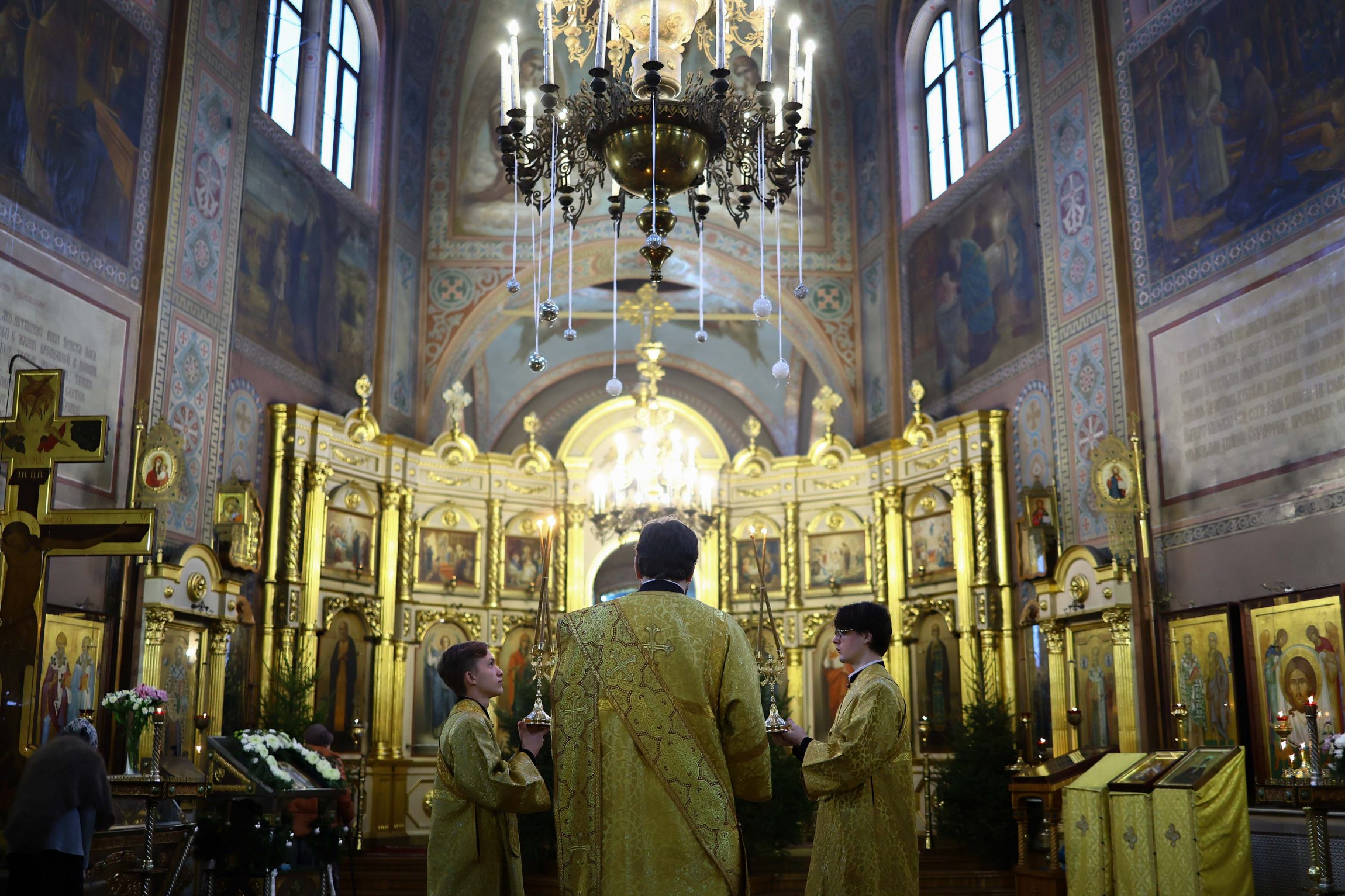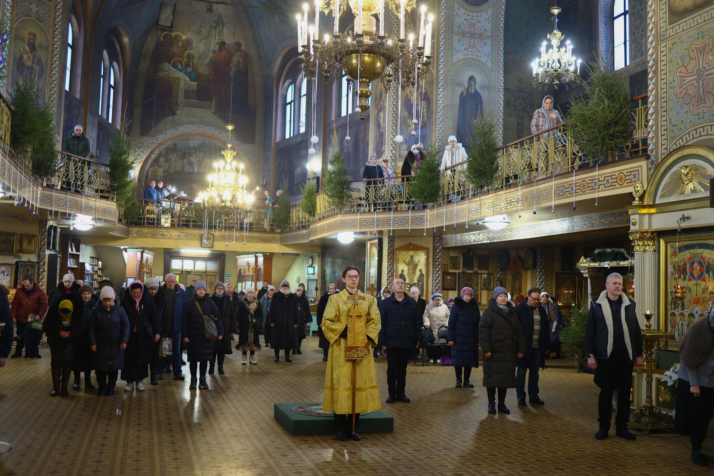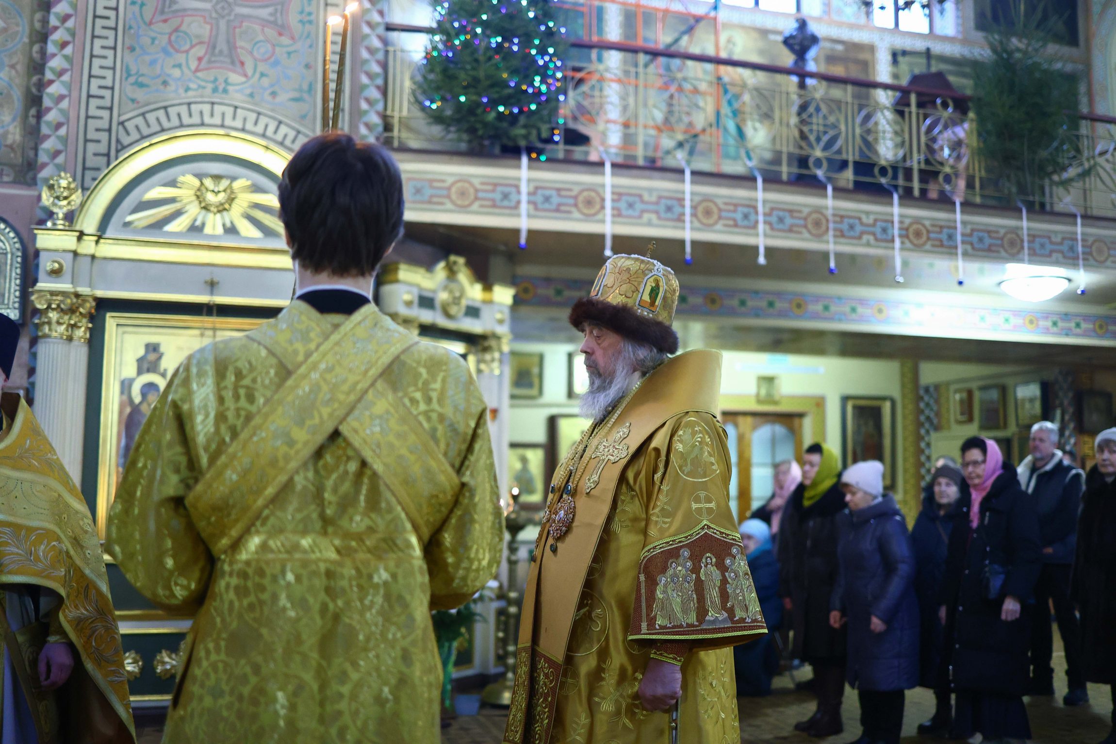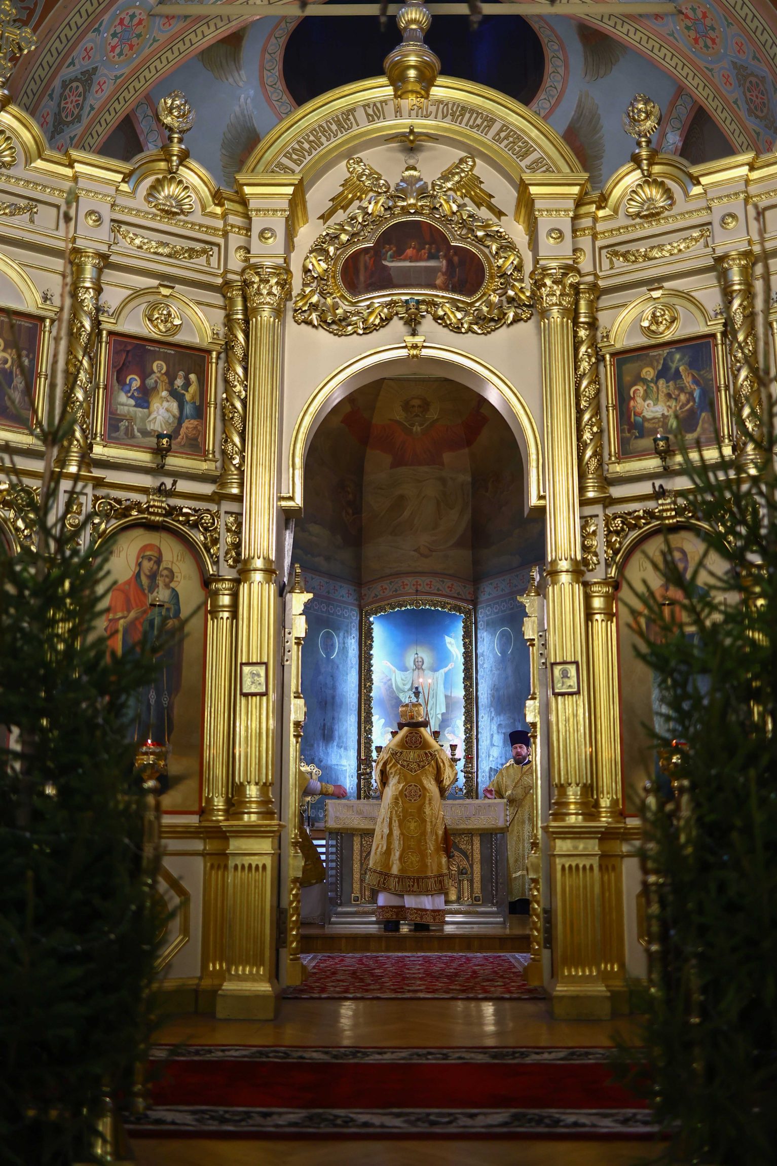 На сугубой ектении вознесены молитвы о благопоспешении христолюбивому Российскому воинству в установлении мира в сию лихую годину, на Святую Русь нашедшую, о мире на Украине, а также о сохранении единства святого Православия.