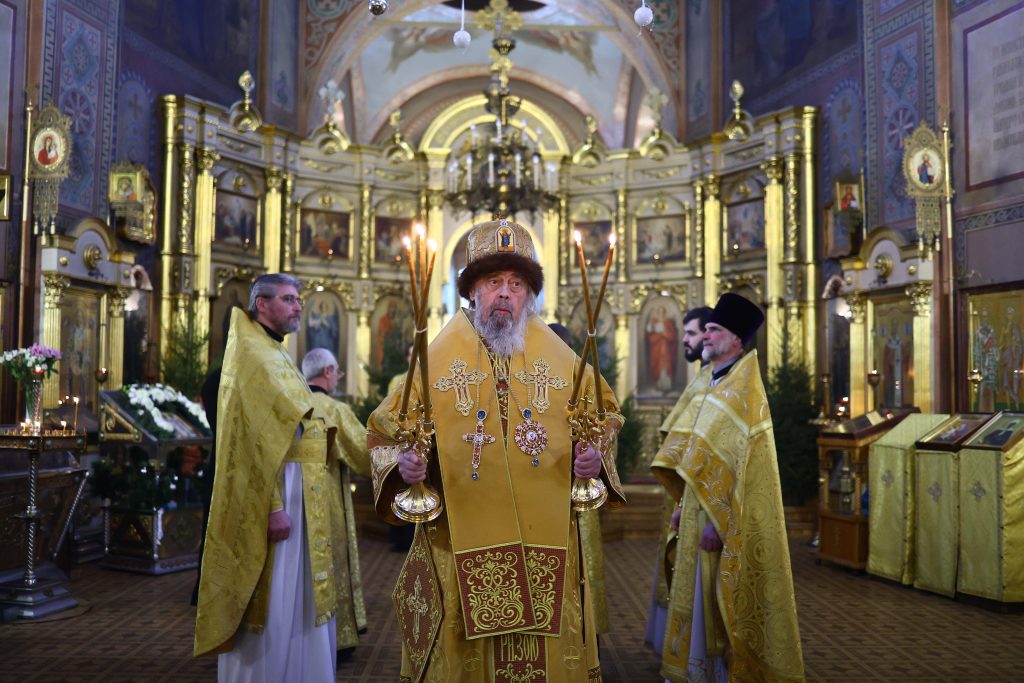 По завершении богослужения владыка приветствовал участников соборной молитвы и приступивших к Святой Чаше: «В благословенный сей день мироспасительного осмодневия жизни по плоти Единородного Божиего Сына, Честнаго Обрезания Его крайней плоти, вседушевно рад приветствовать всех вас, всечестные отцы и возлюбленные о Господе братья и сестры, жители тульского Заречья и прихожане сей досточудной келии преподобного и богоносного аввы нашего Сергия Великого!