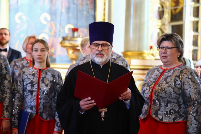Перед концертом к собравшимся обратился настоятель Всехсвятского кафедрального собора Тулы протоиерей Сергий Резухин. Он поздравил верующих со Светлым праздником Воскресения Христова и огласил приветствие Святейшего Патриарха Московского и всея Руси Кирилла участникам XXIV Московского Пасхального фестиваля.