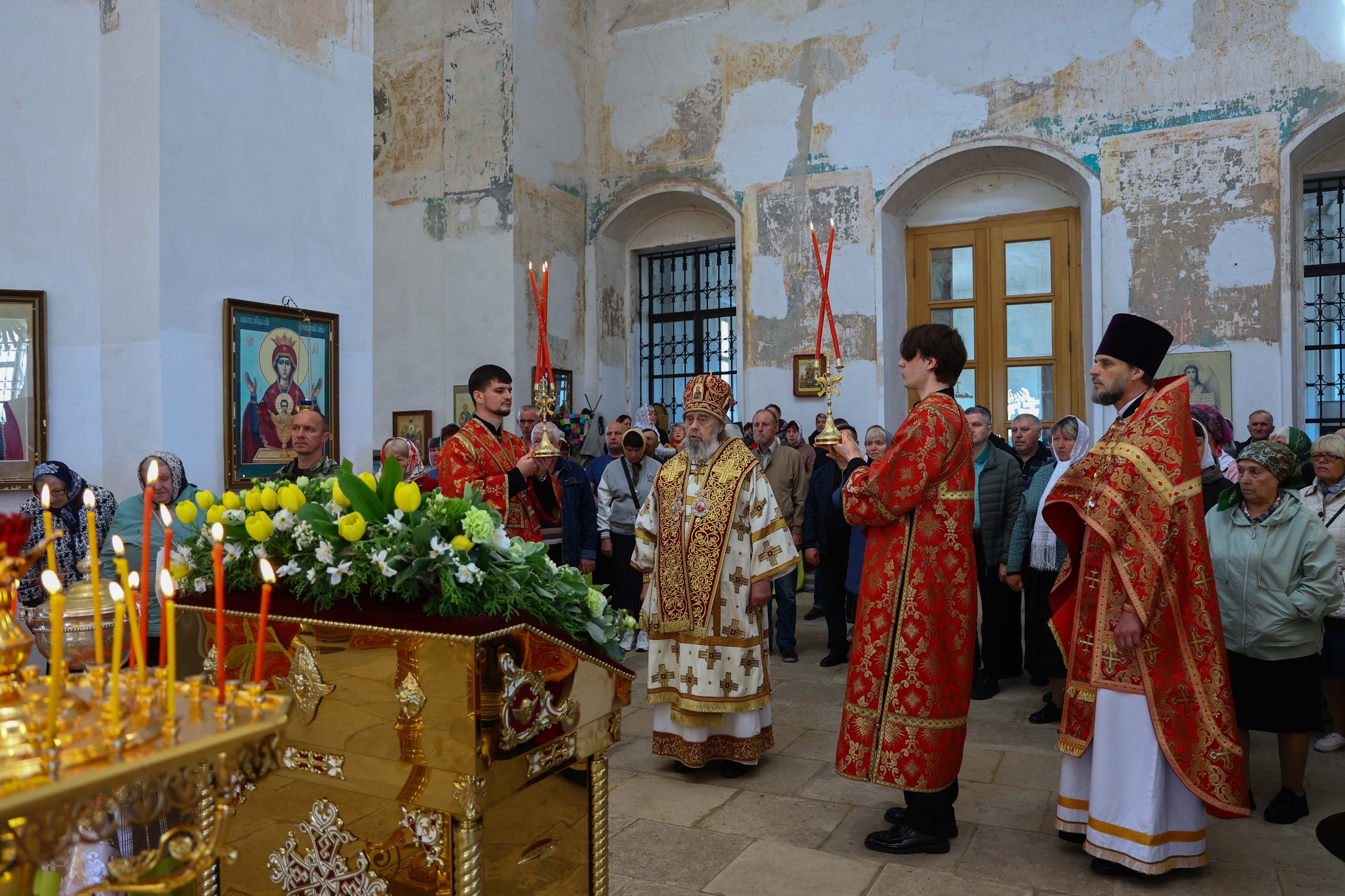 По окончании богослужения владыка Алексий обратился к предстоящим: «Словом мира и любви о Воскресшем Христе Жизнодавце приветствую всех вас, всечестные отцы и возлюбленные о Господе братья и сестры, в это благознаменитое пасхальное сорокадневие, когда в сей нареченный и святой день и мы единодушно со всей православной христианской вселенной славим дивное перенесение честных и многоцелебных мощей святителя и чудотворца Николая в прекрасном доме, посвященном его святому имени на священной земле Куликова поля в селении Епифань!