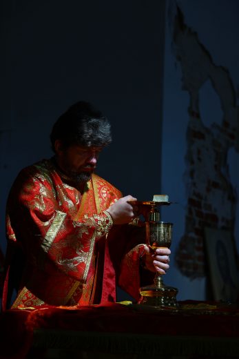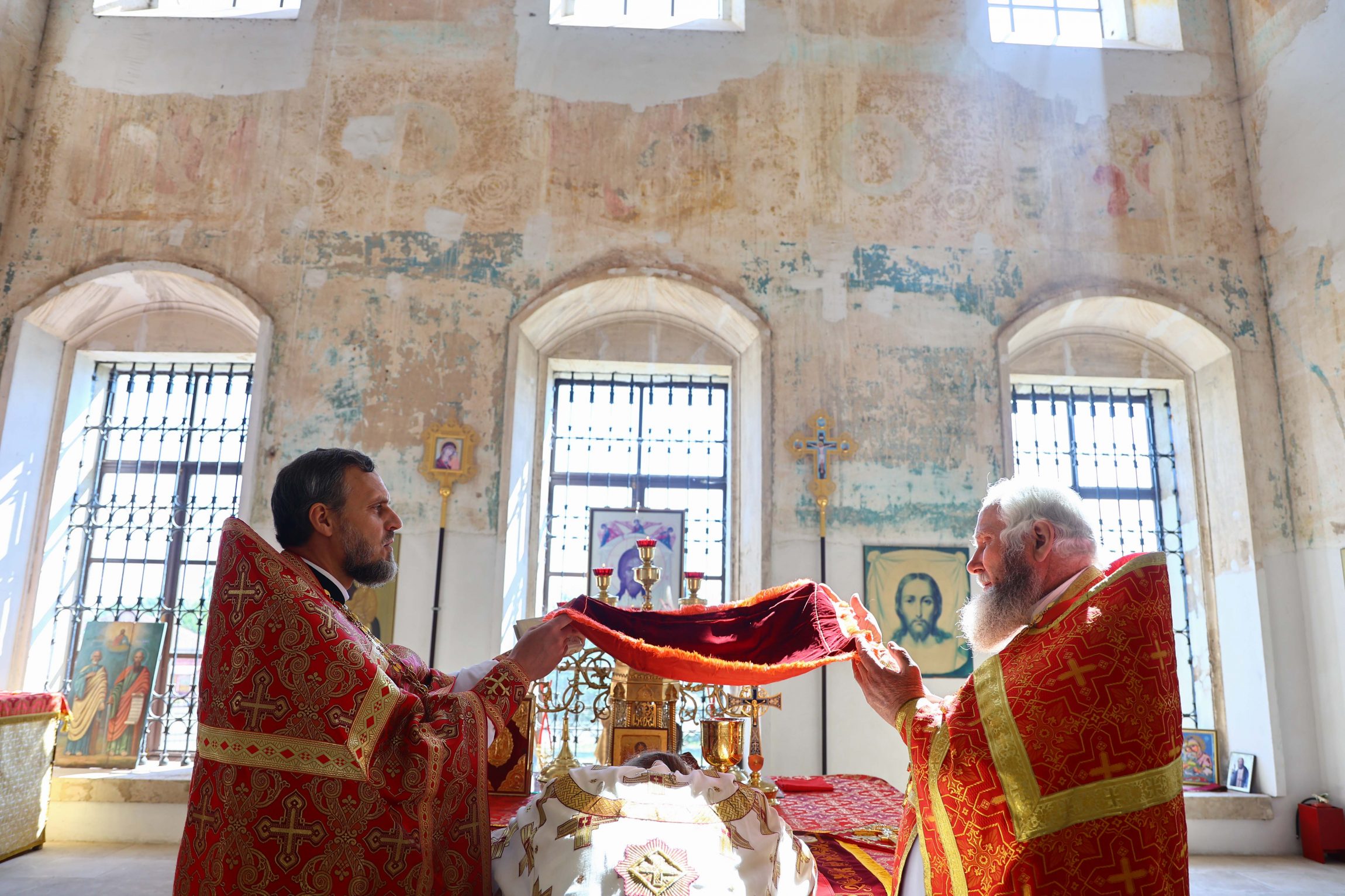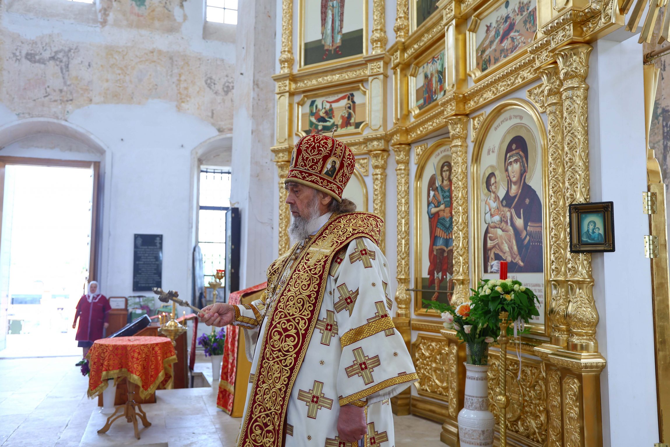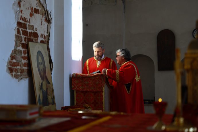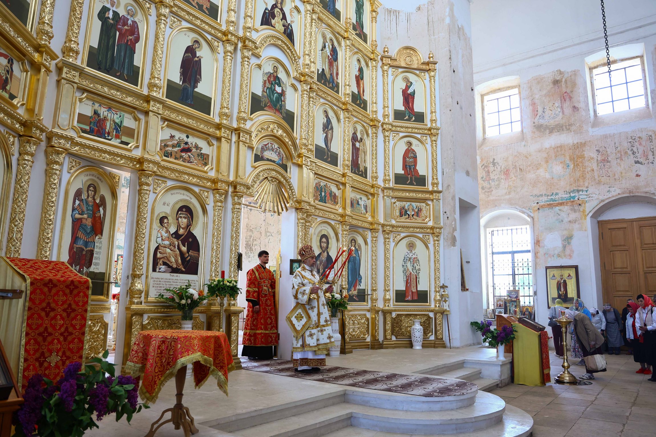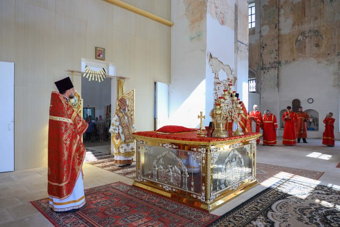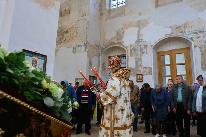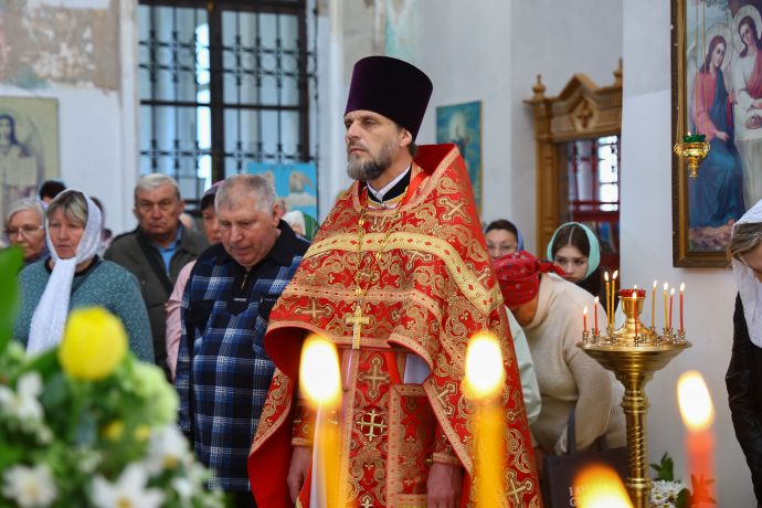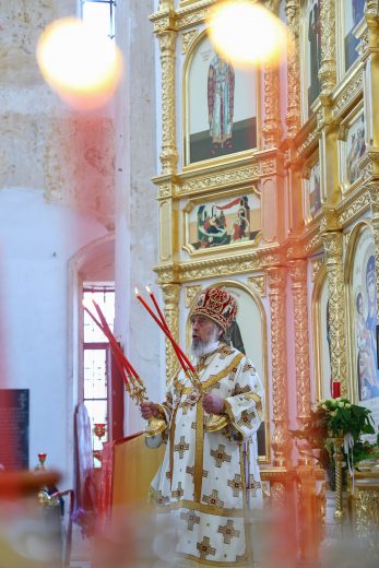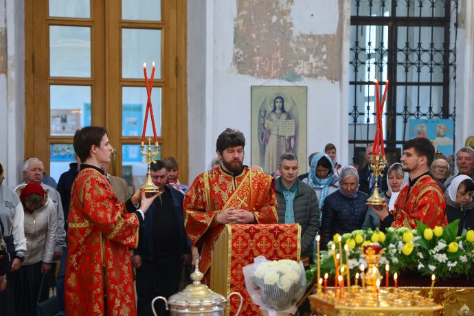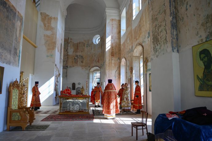 На сугубой ектении вознесены молитвы о благопоспешении христолюбивому Российскому воинству в установлении мира в сию лихую годину, на Святую Русь нашедшую, о мире на Украине, а также о сохранении единства святого Православия.