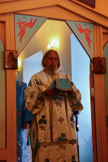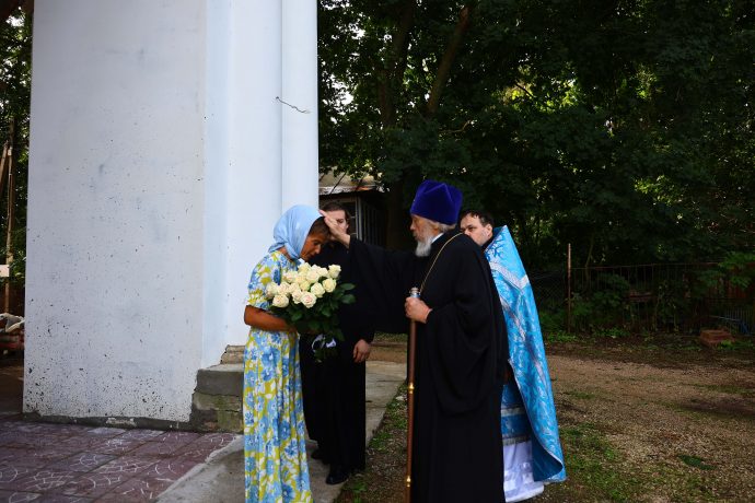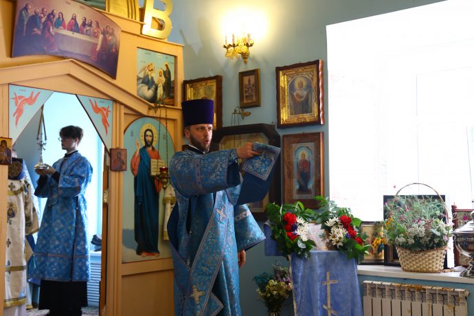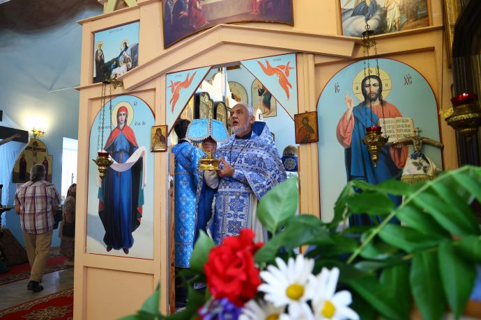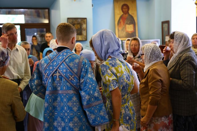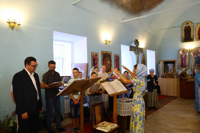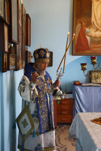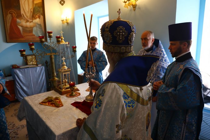 На сугубой ектении вознесены молитвы о благопоспешении христолюбивому Российскому воинству в установлении мира в сию лихую годину, на Святую Русь нашедшую, о мире на Украине, а также о сохранении единства святого Православия.