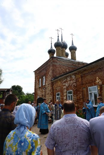 В день малого престольного праздника митрополит Тульский и Ефремовский Алексий совершил Божественную литургию и крестный ход в восстанавливающемся Свято-Покровском храме села Алешня в сослужении благочинного Западного округа протоиерея Игоря Корейши и настоятеля протоиерея Алексия Соловьёва.