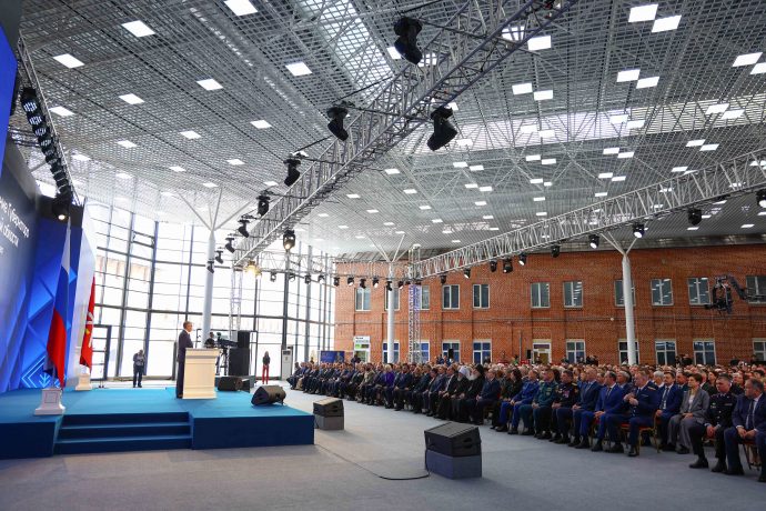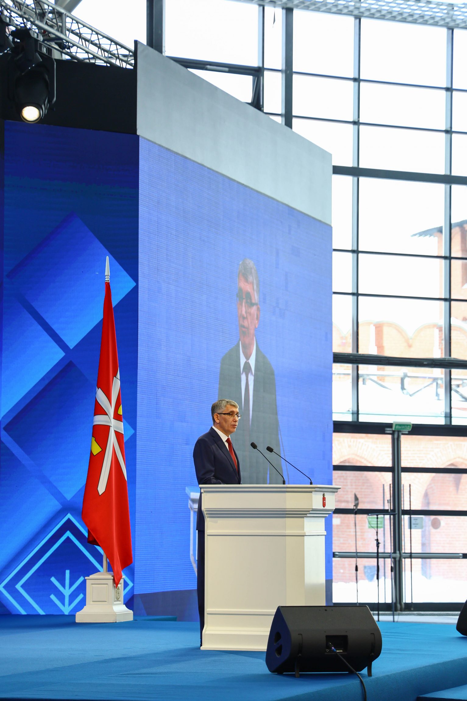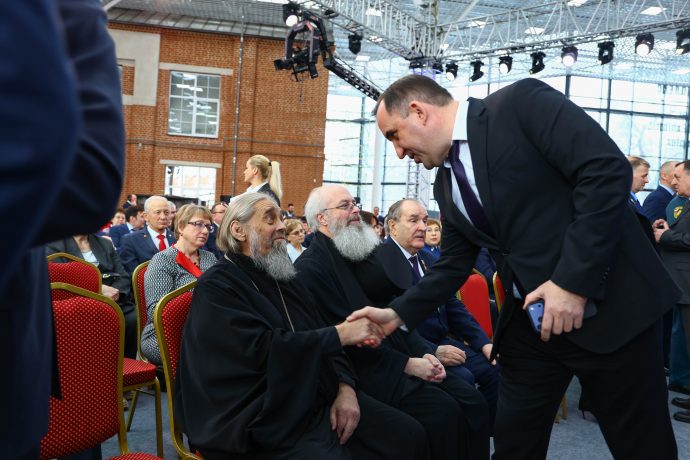 Дмитрий Миляев выступил в Атриуме Тульского кремля перед представителями государственной и региональной власти, Вооруженных Сил России, деятелями науки и культуры, представителями высших учебных заведений и общественных организаций. В качестве почетных гостей собрания были также приглашены митрополит Тульский и Ефремовский Алексий и епископ Белевский и Алексинский Серафим.