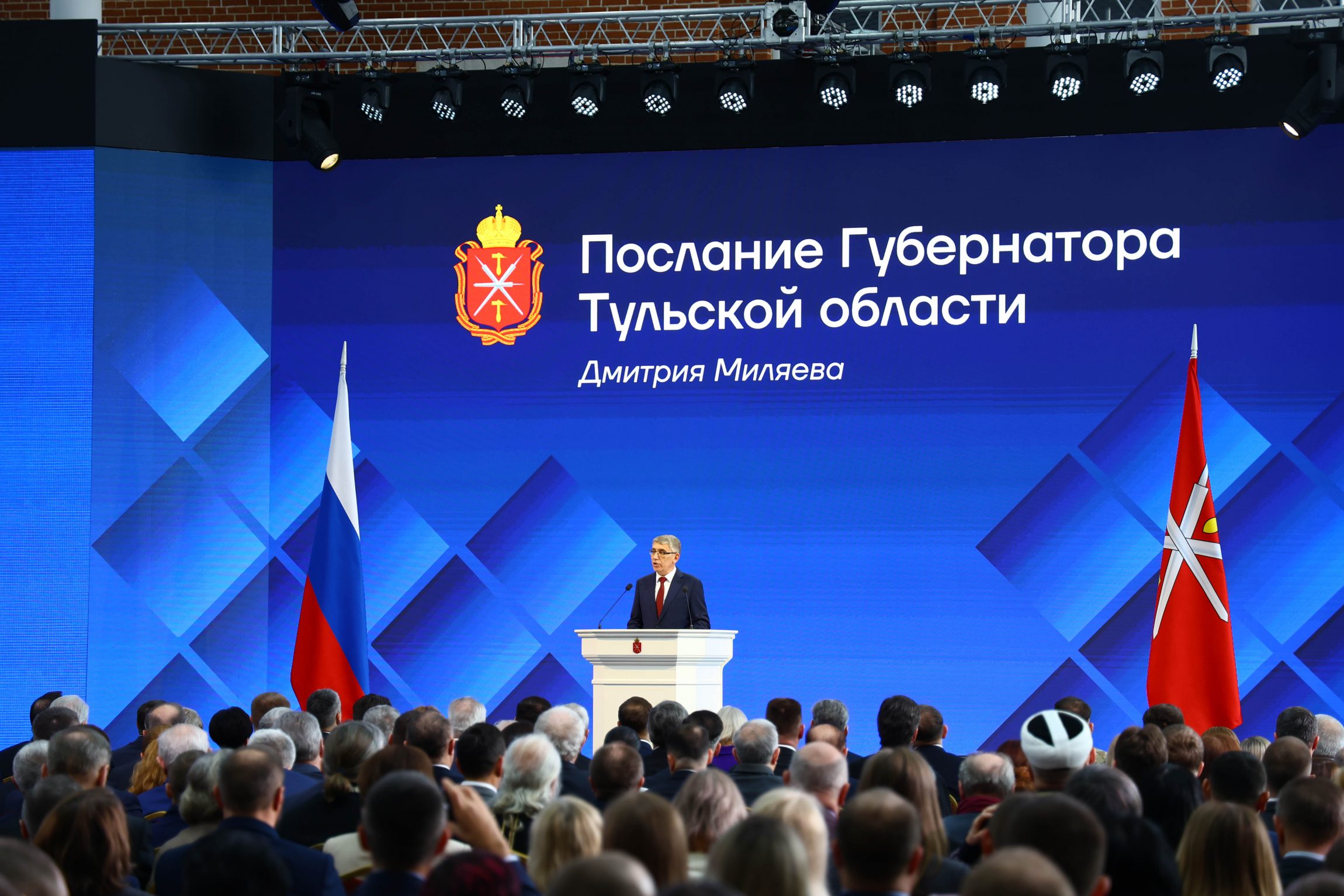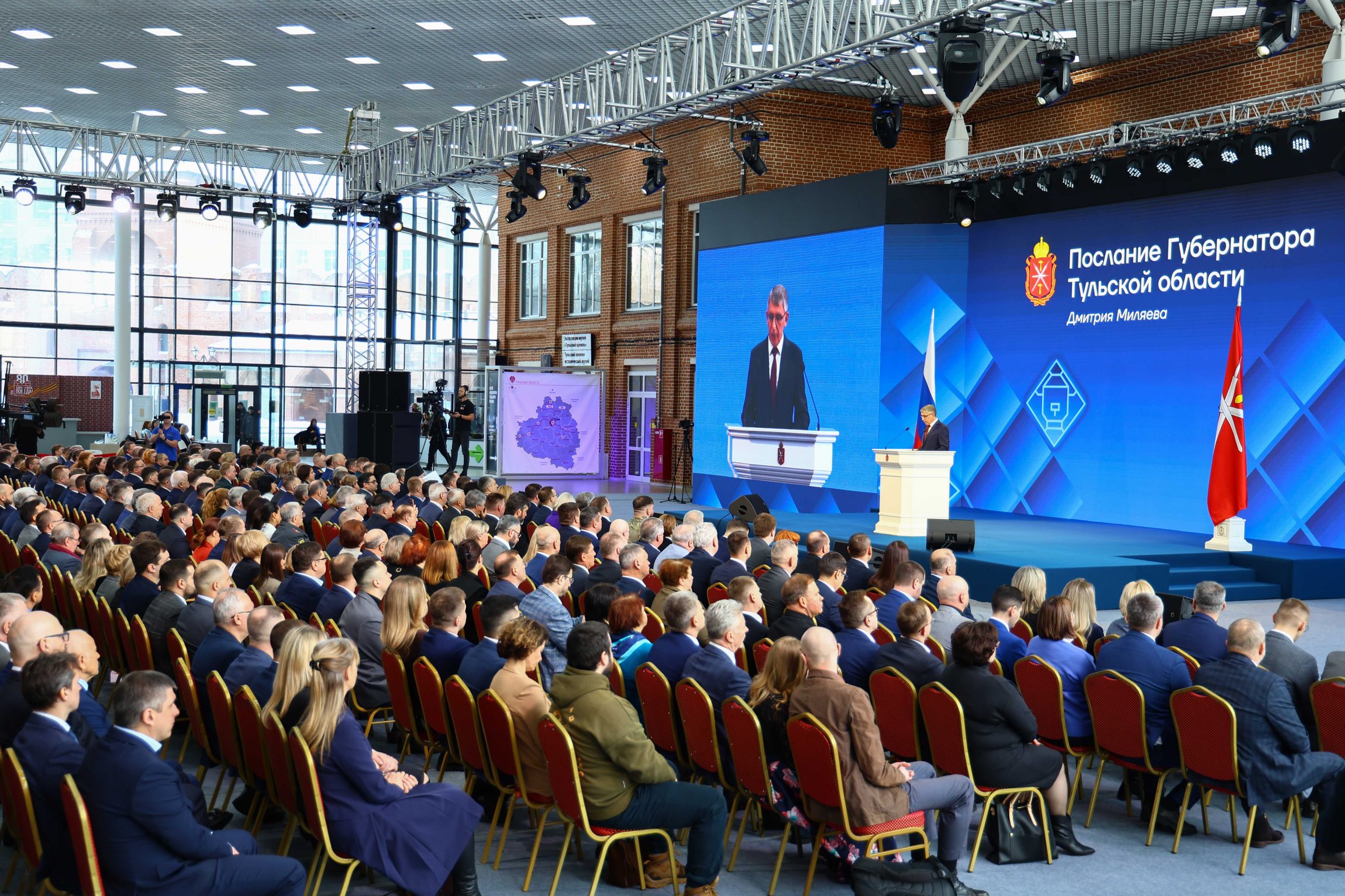 Губернатор Тульской области Дмитрий Миляев впервые в должности главы региона обратился с Посланием к жителям Тульского края. В числе почетных гостей собрания были митрополит Тульский и Ефремовский Алексий и епископ Белевский и Алексинский Серафим.