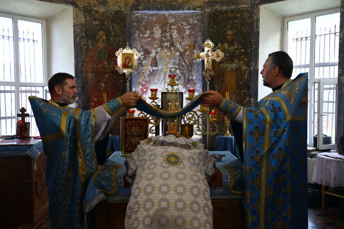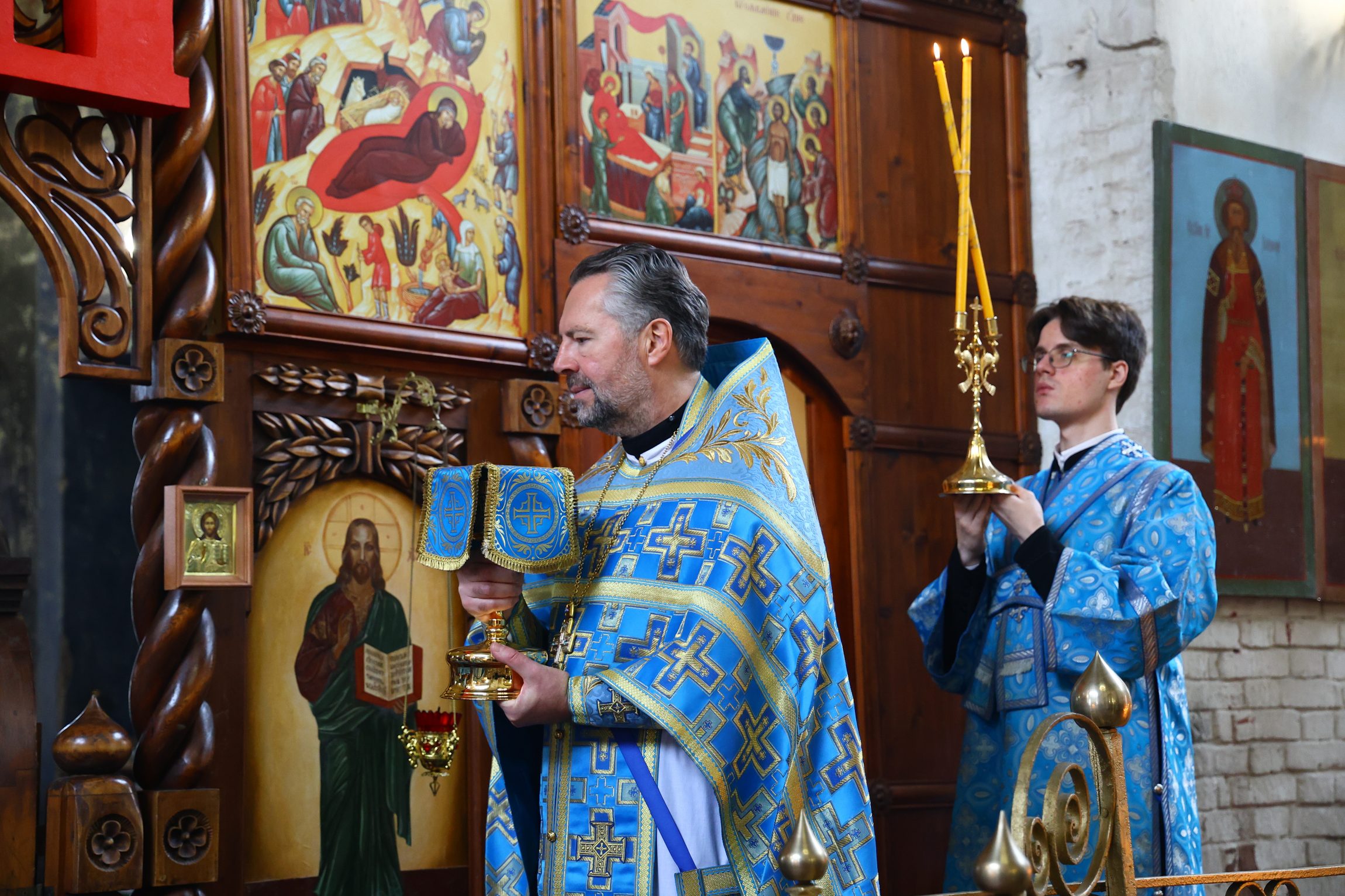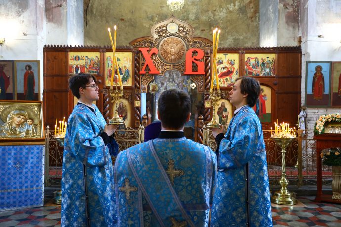 По заамвонной молитве совершено славление перед местночтимым образом Пречистой Девы Марии, именуемом «Казанский».