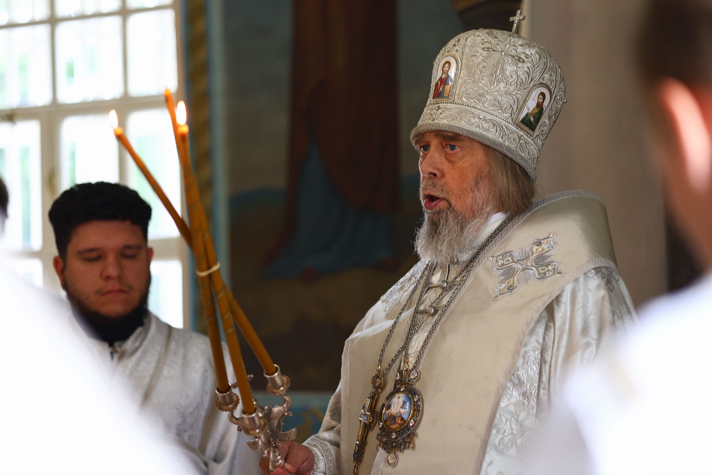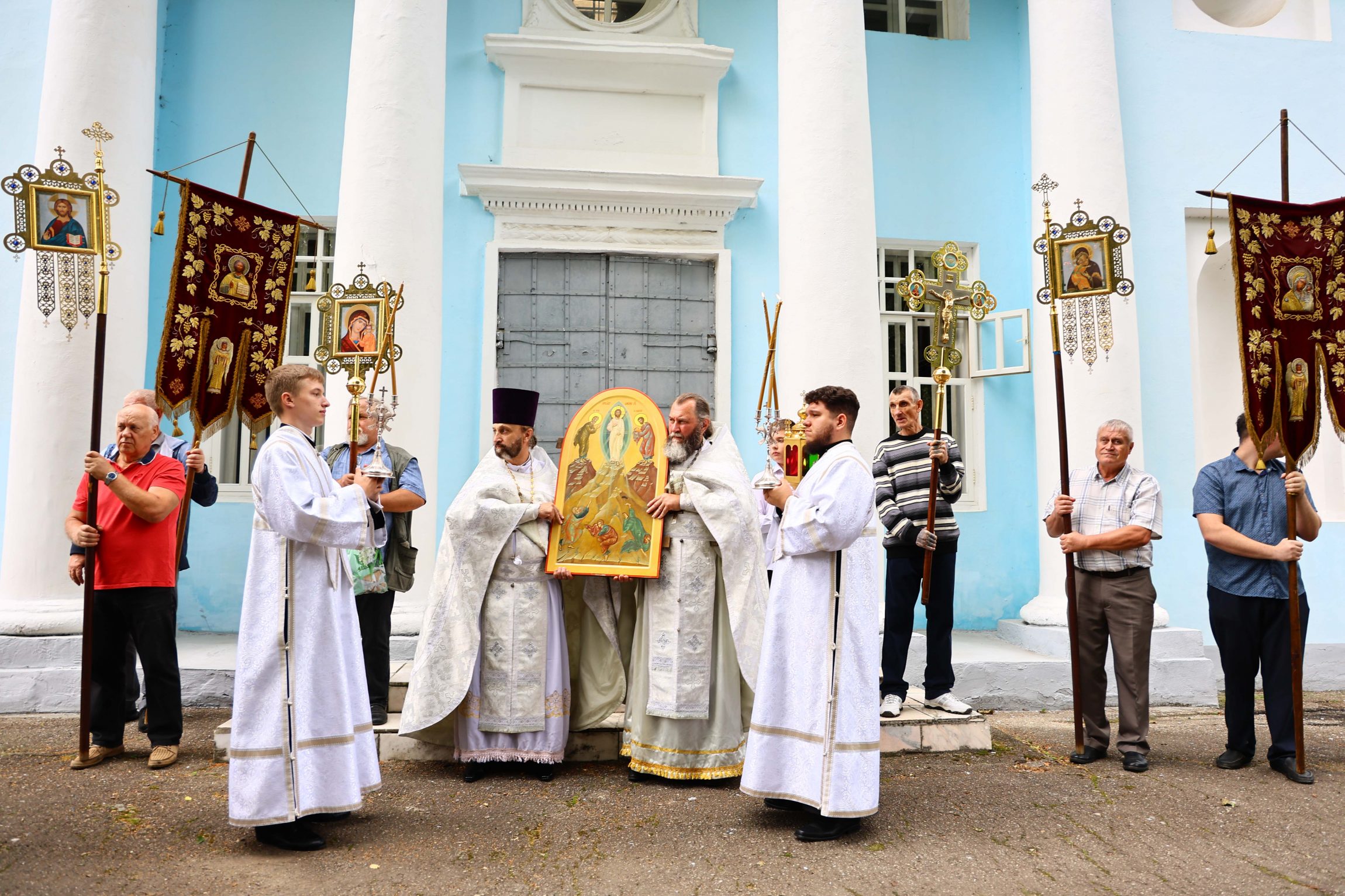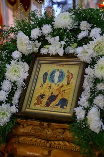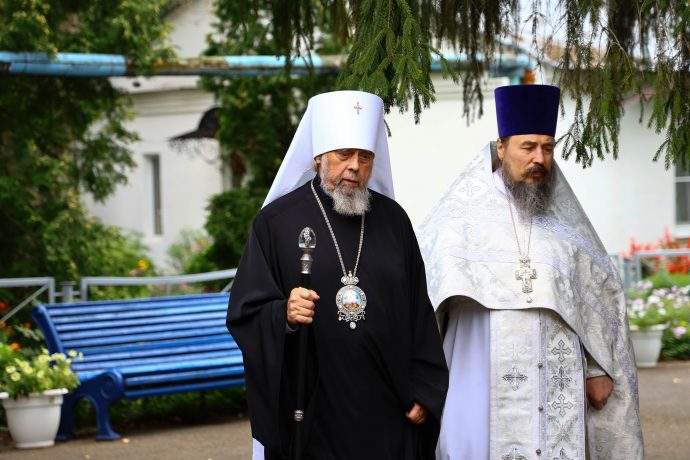 Глава Тульской митрополии по окончании богослужения поздравил духовенство и прихожан с торжеством Преображения Господня: «Словом мира и любви о Христе приветствую всех вас, всечестные отцы и возлюбленные о Господе братья и сестры, в благословенный и торжественный день престольного праздника сего святого храма, когда и мы на Донской земле со всей православной христианской вселенной единочувственно, единодушно, единомысленно, единонравно и единодейственно прославляем мироспасительное событие — Преображение Господа и Спасителя нашего Иисуса Христа и светом Его богооткровенной истины насыщаем смыслы своего ума, движения своих сердец, а через причащение Святых Христовых Таин, обретая сотелесность и единокровность со Христом как со своим Подвигоположником, и самые движения наших крови и плоти стремимся преобразить в христоподобные для того, чтобы в короткий отрезок земной нашей жизни выявить максимальную схожесть с Ним, и через это испытать уже здесь, всей полнотой своего человеческого естества, начатки движения в Царствие Божие, пришедшее в силе (Мк. 9:1) для каждого из нас.