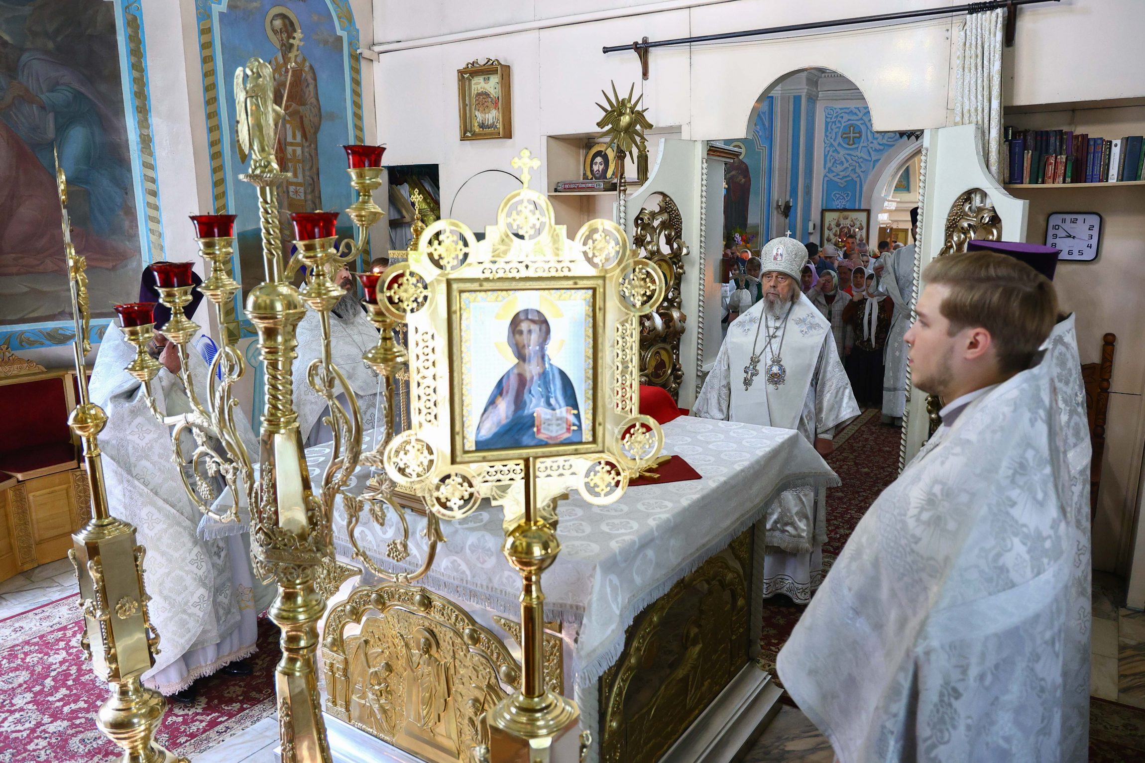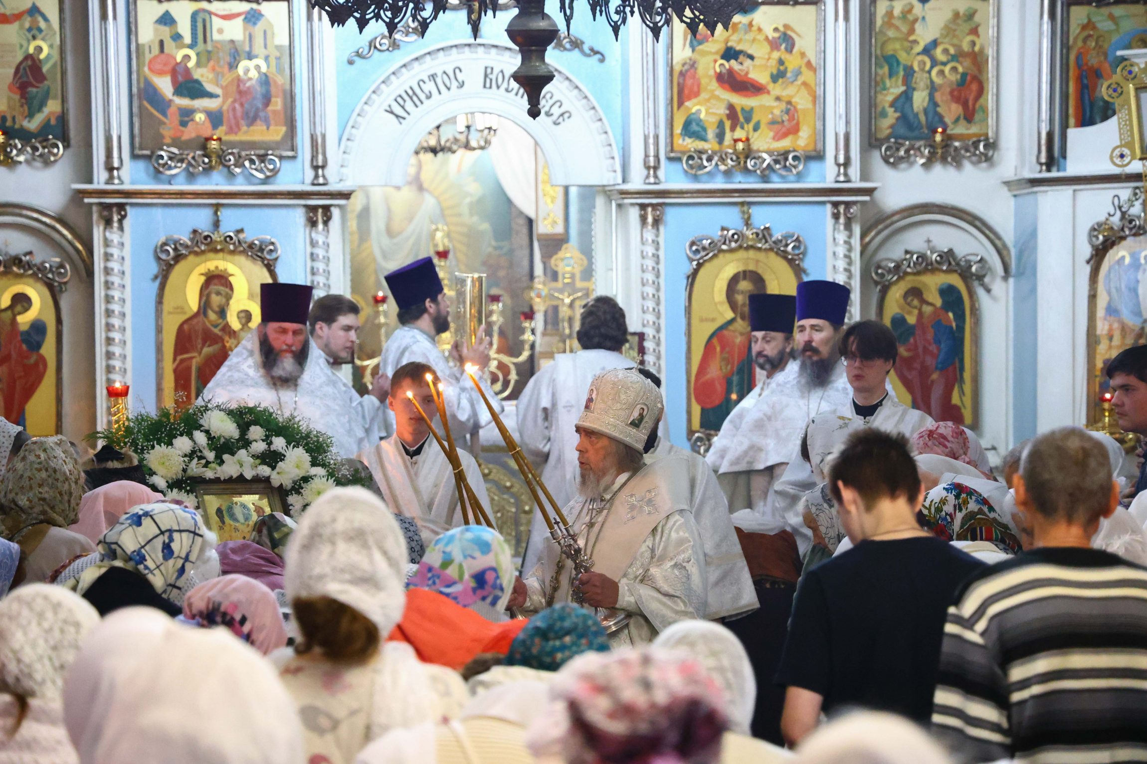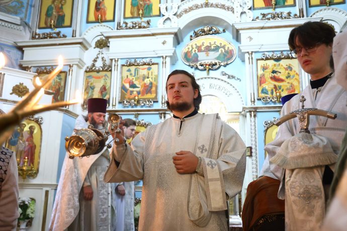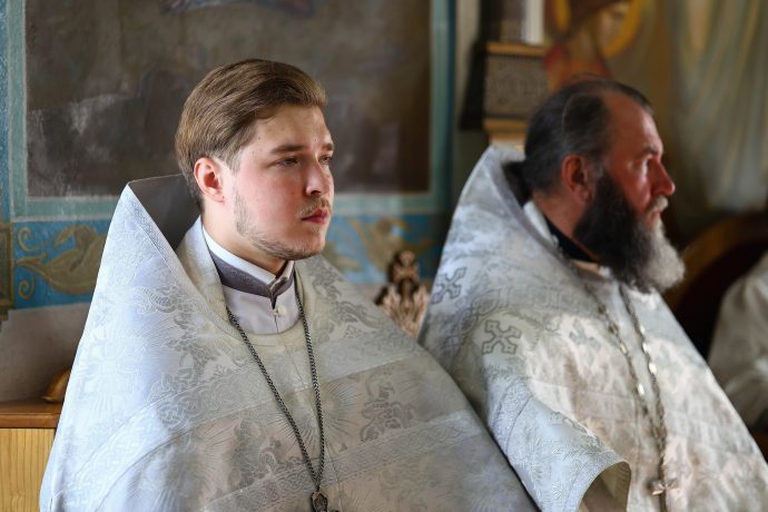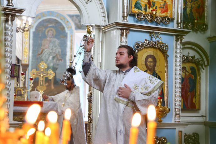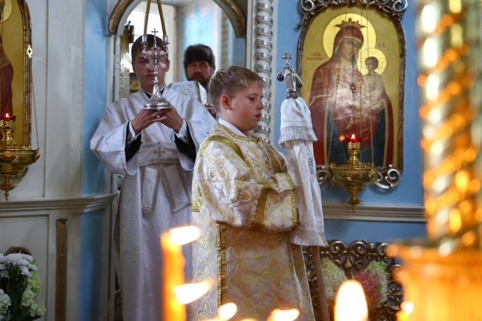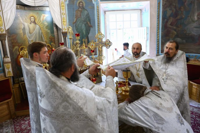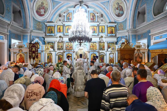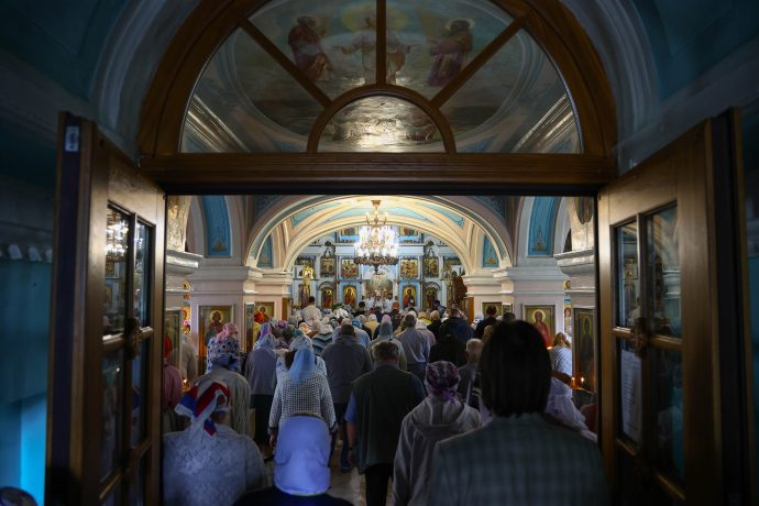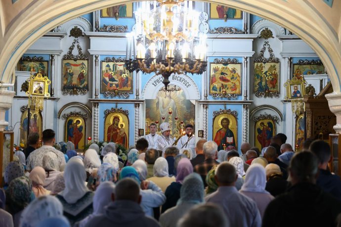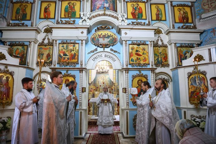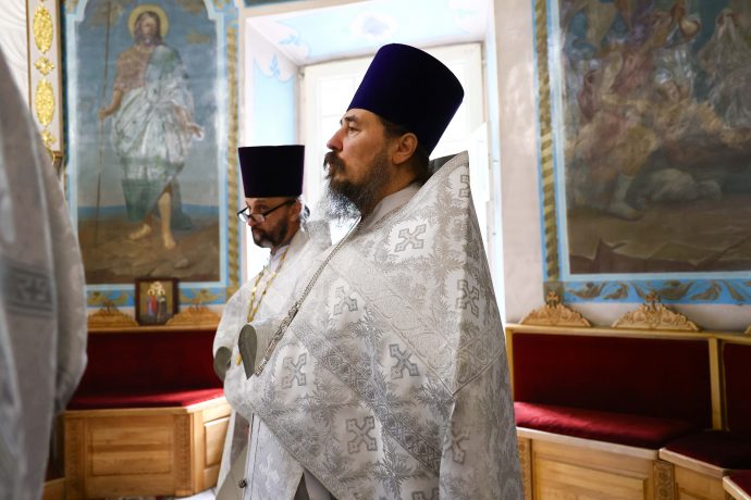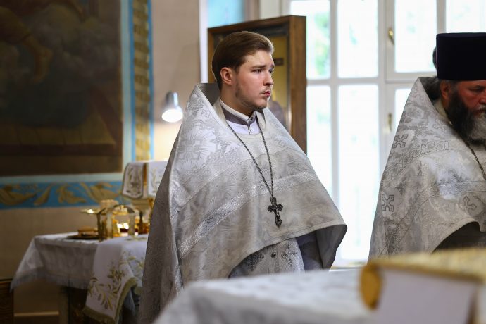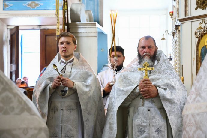 На сугубой ектении вознесены молитвы о благопоспешении христолюбивому Российскому воинству в установлении мира в сию лихую годину, на Святую Русь нашедшую, о мире на Украине, а также о сохранении единства святого Православия.