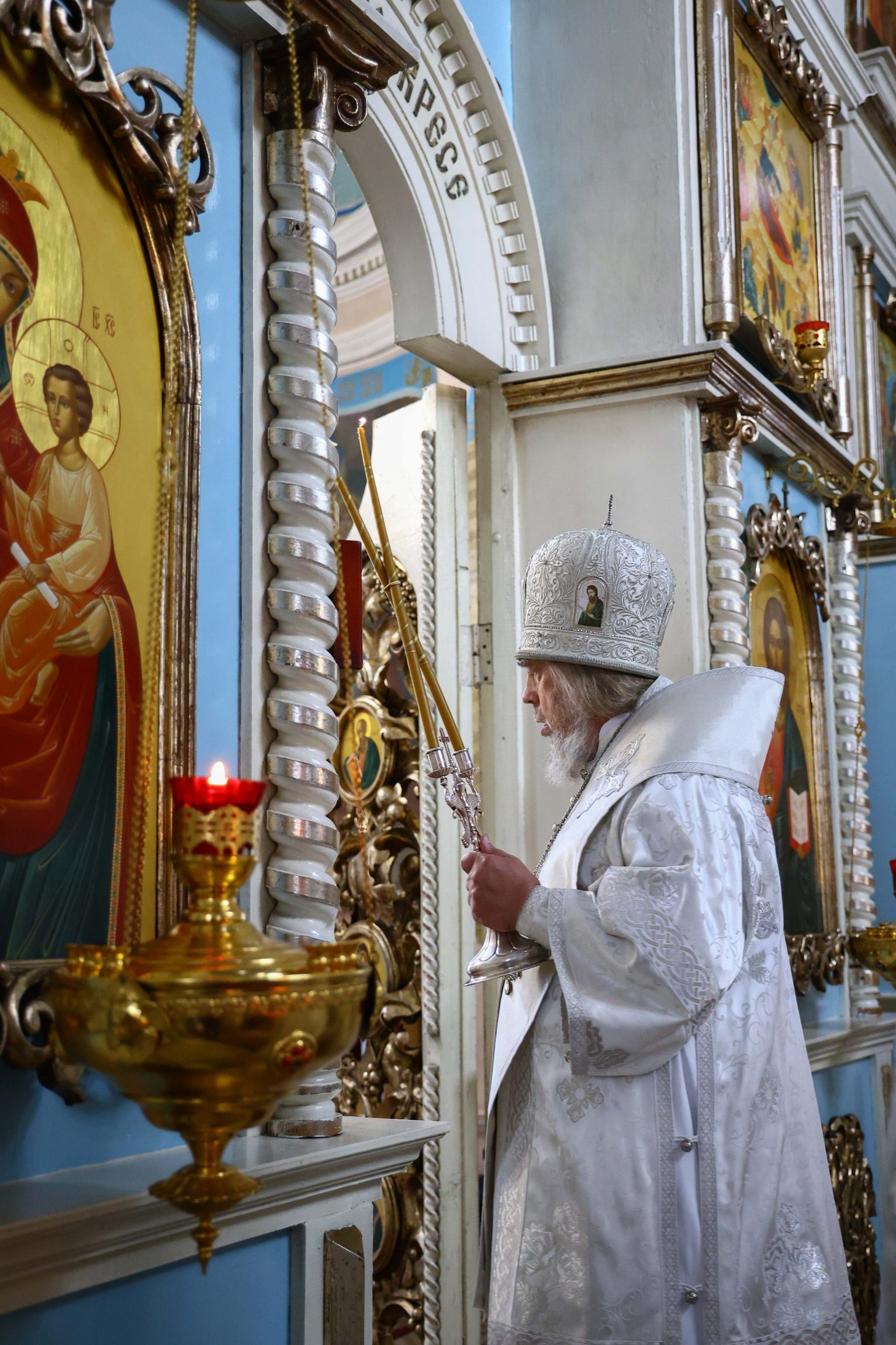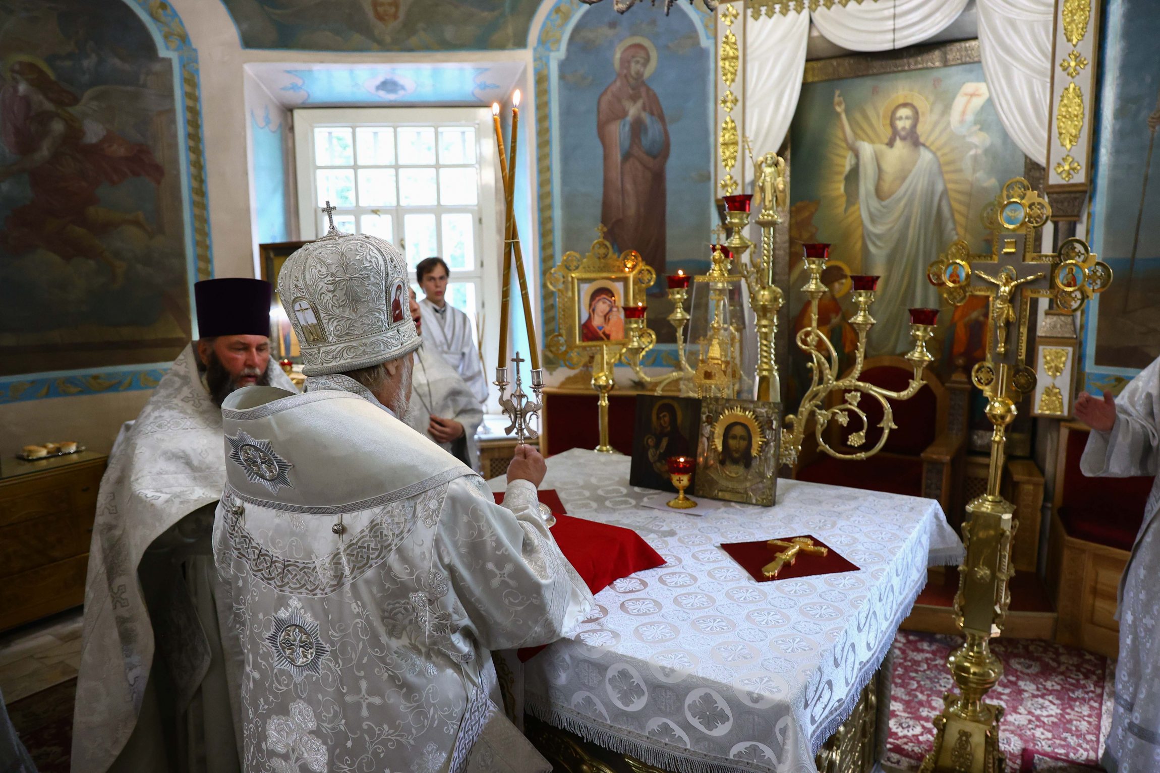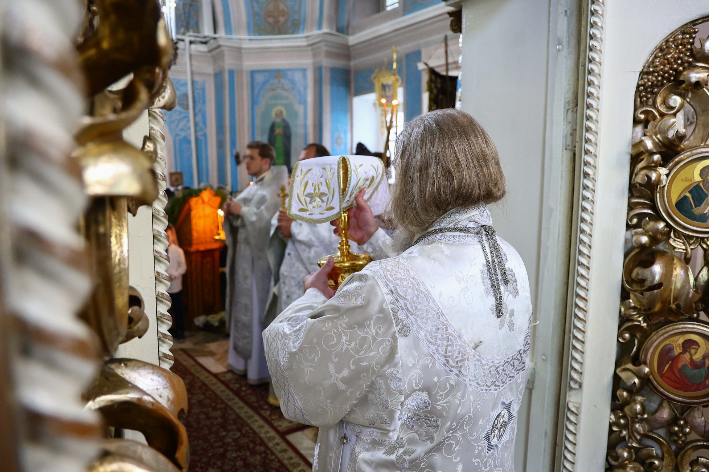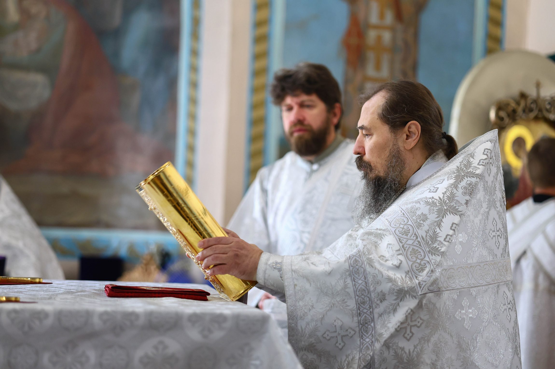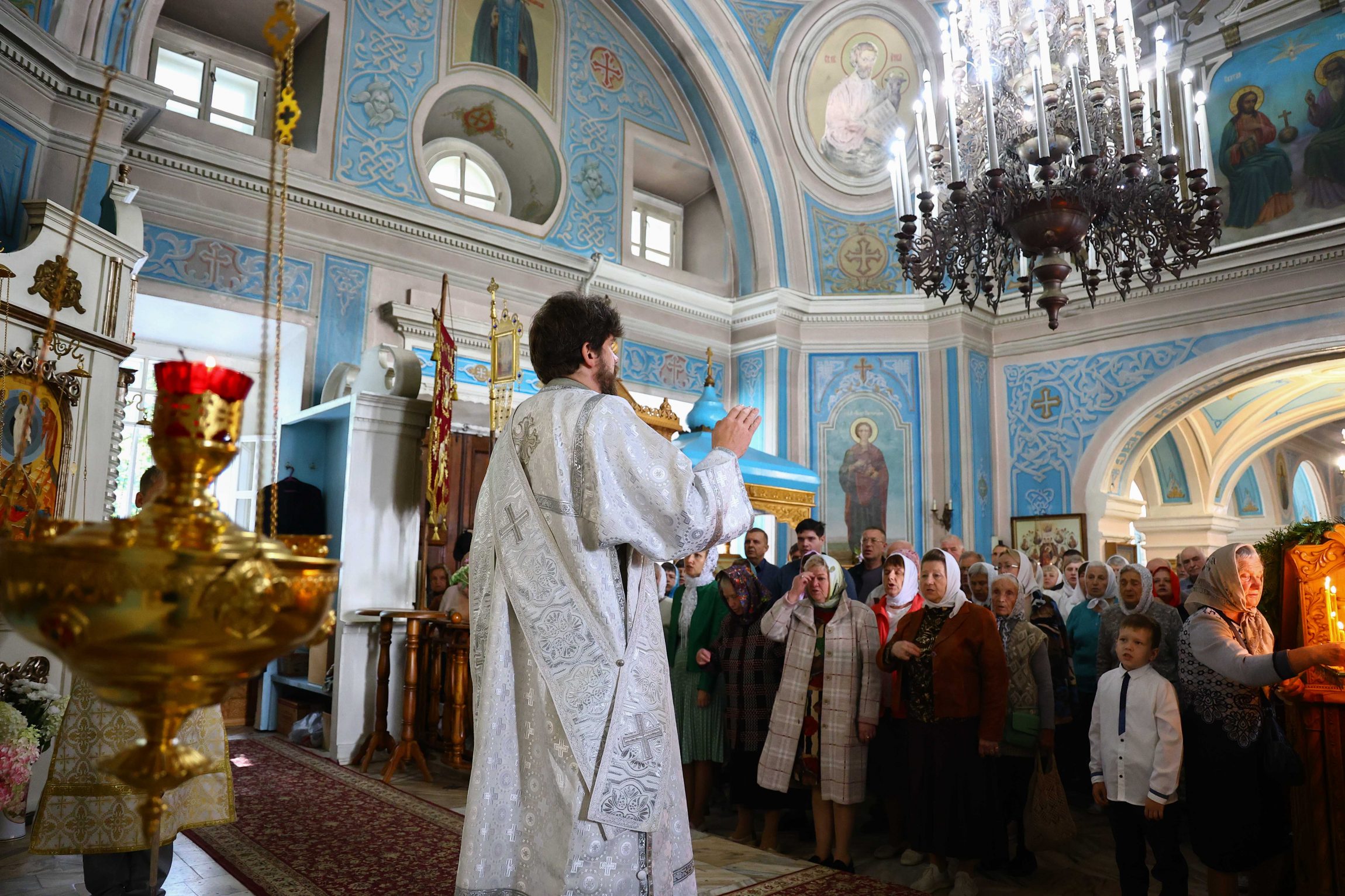 На сугубой ектении вознесены молитвы о благопоспешении христолюбивому Российскому воинству в установлении мира в сию лихую годину, на Святую Русь нашедшую, о мире на Украине, а также о сохранении единства святого Православия.