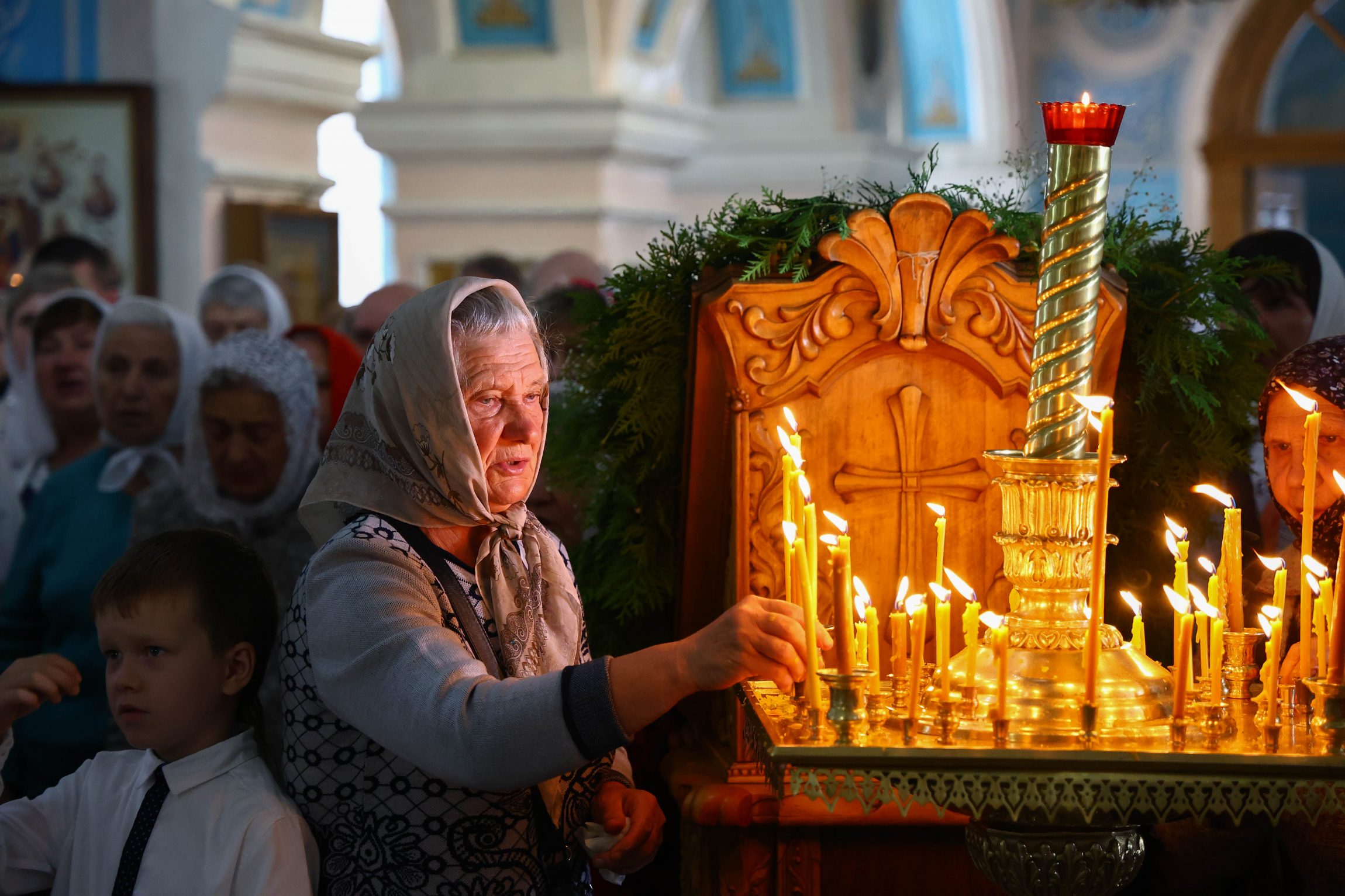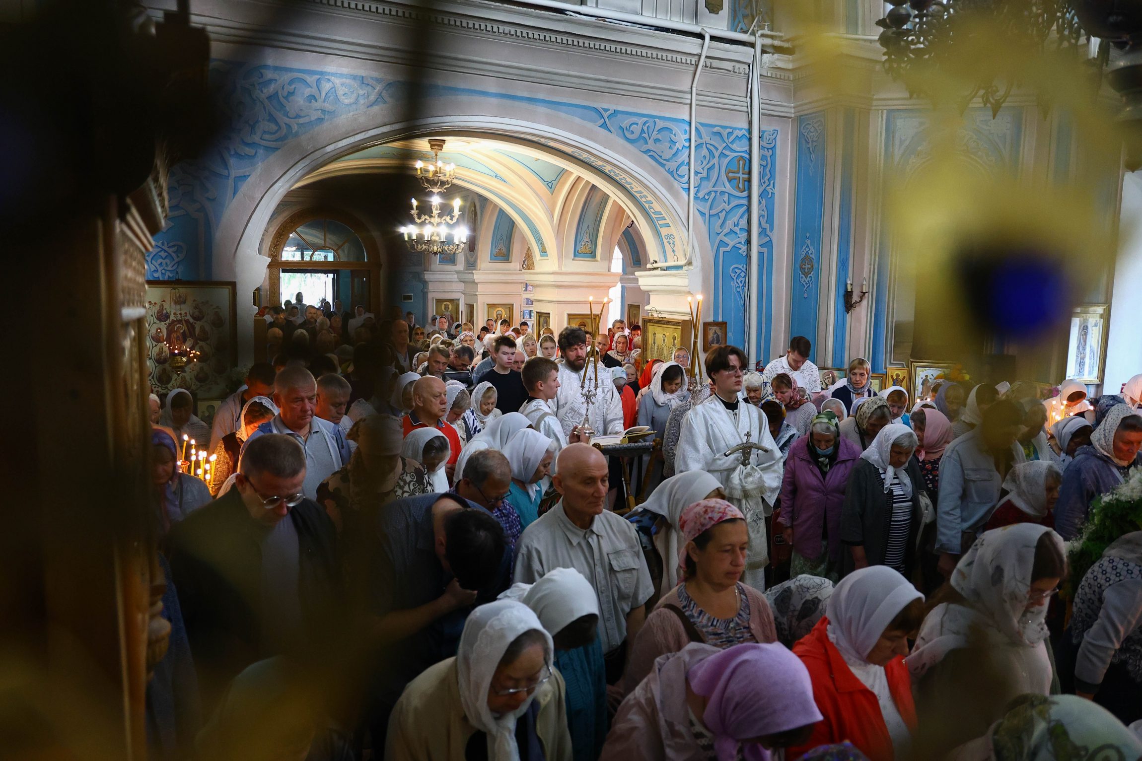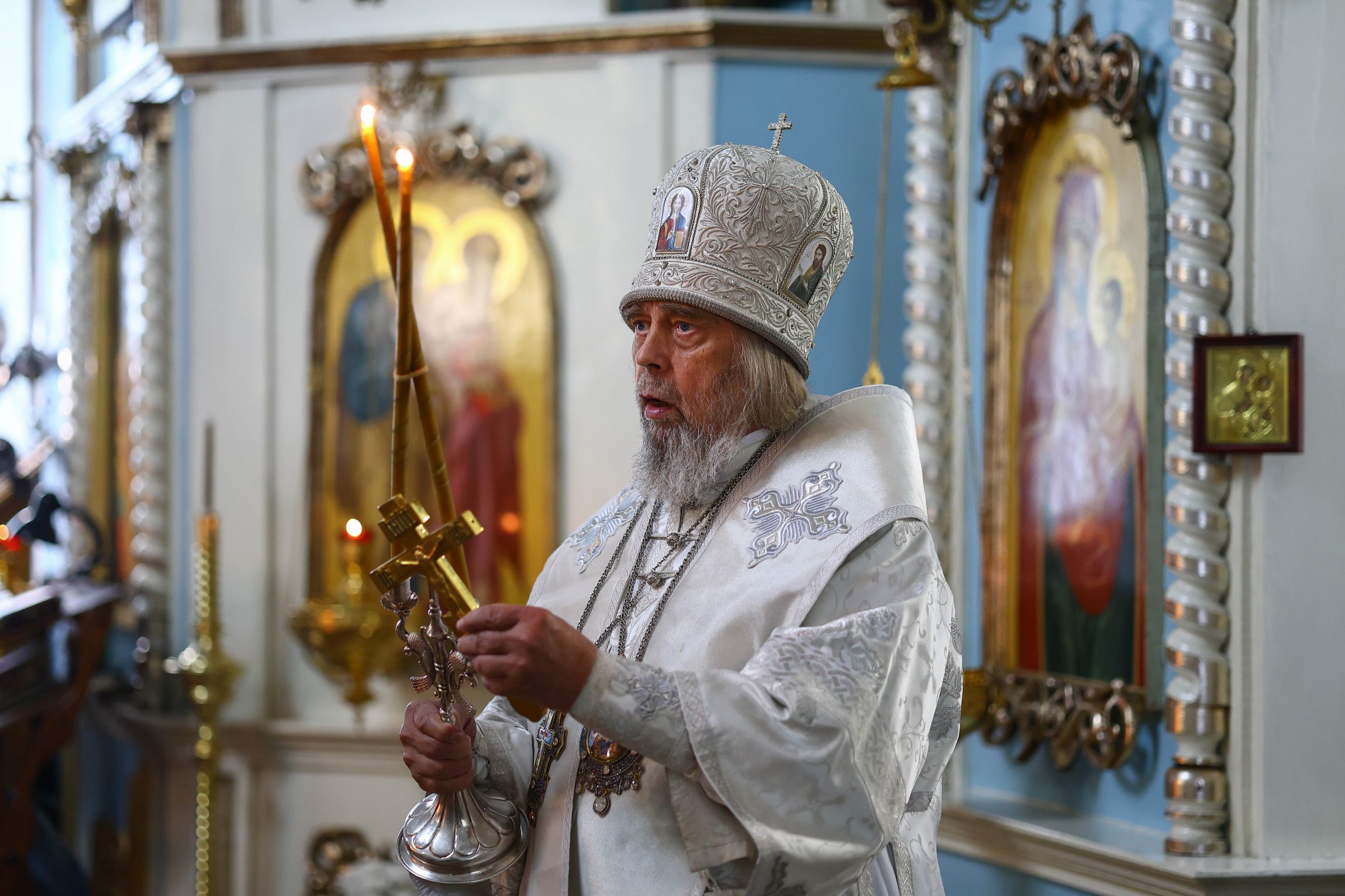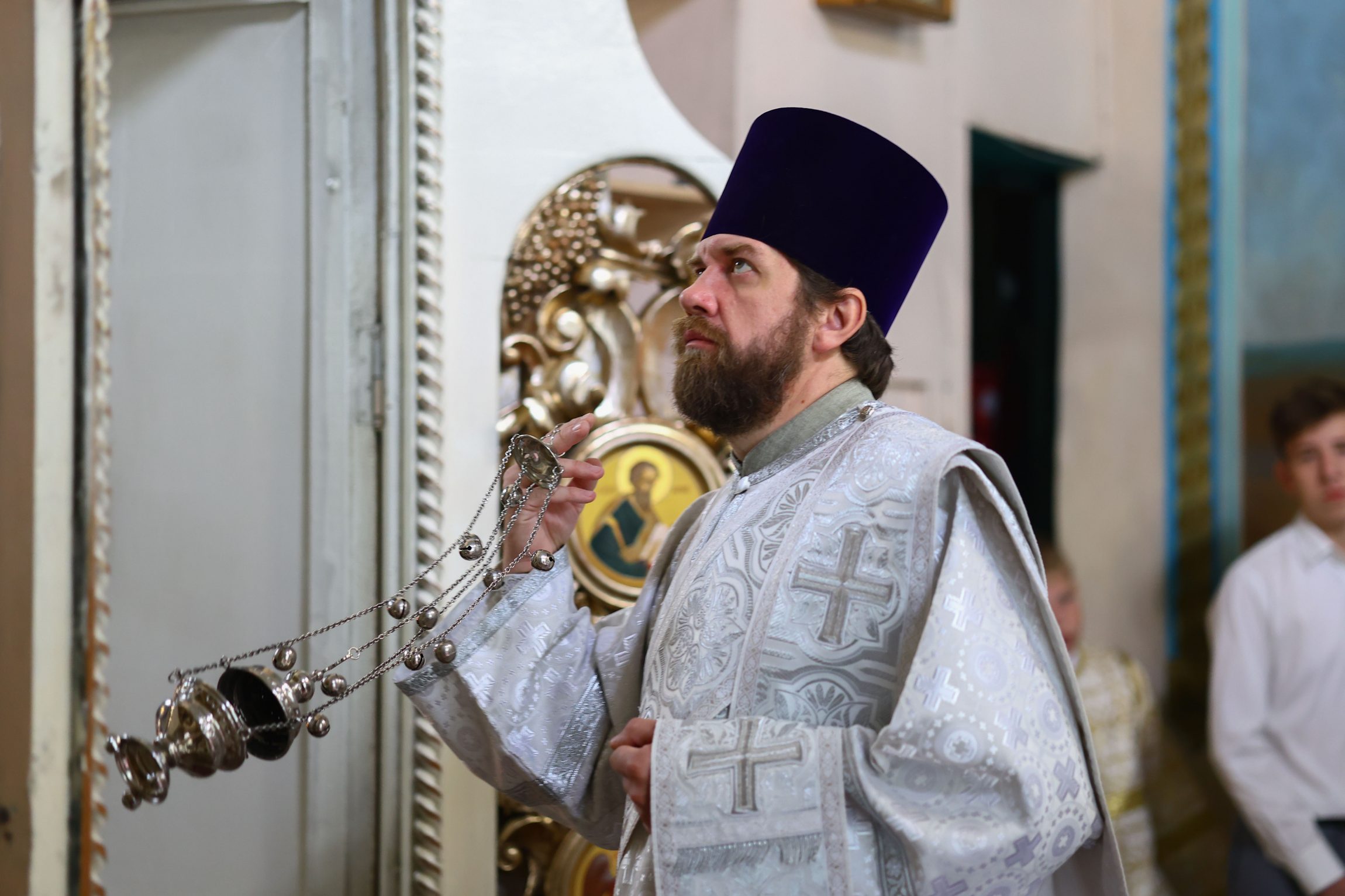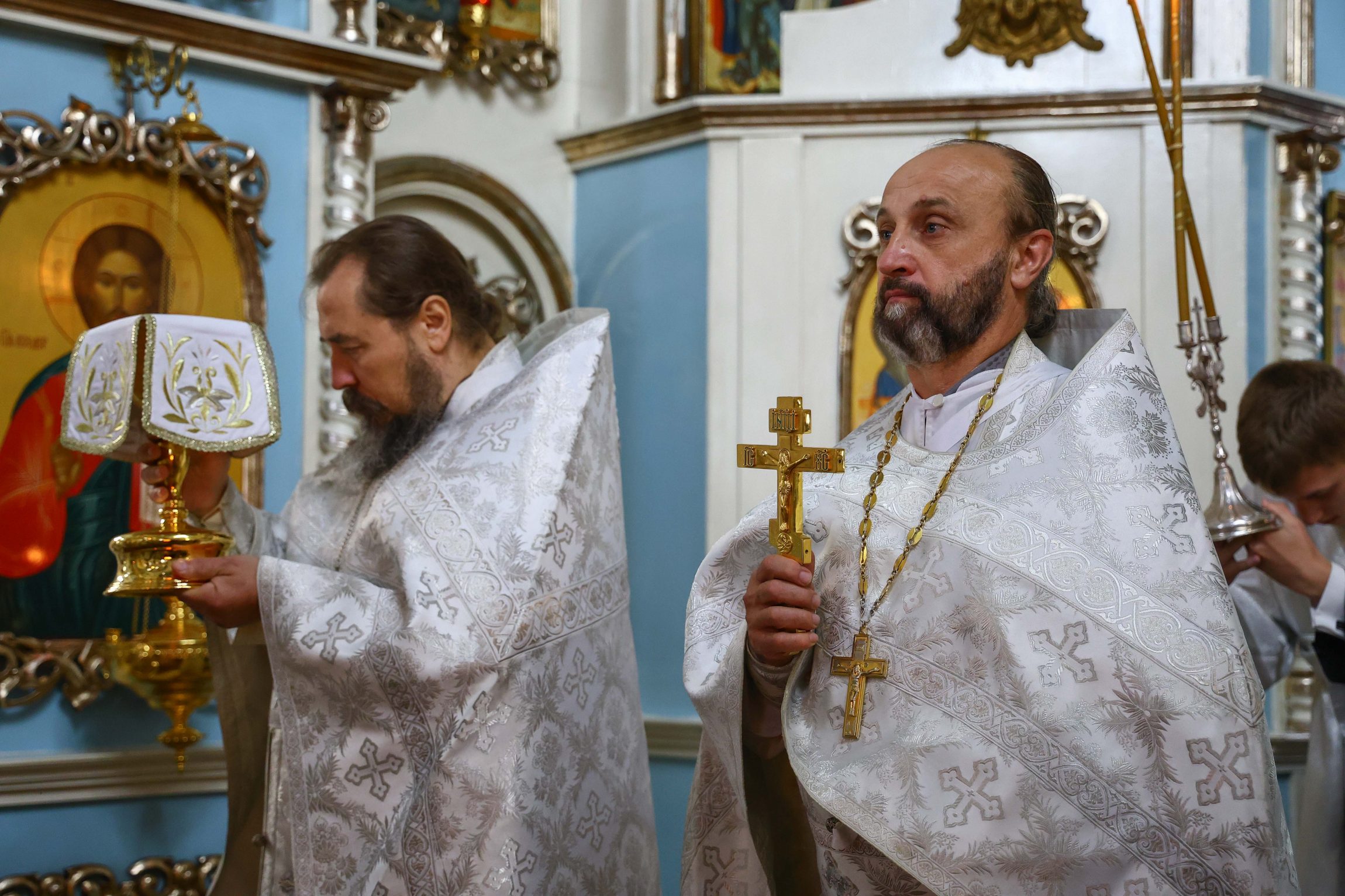 На сугубой ектении вознесены молитвы о благопоспешении христолюбивому Российскому воинству в установлении мира в сию лихую годину, на Святую Русь нашедшую, о мире на Украине, а также о сохранении единства святого Православия.