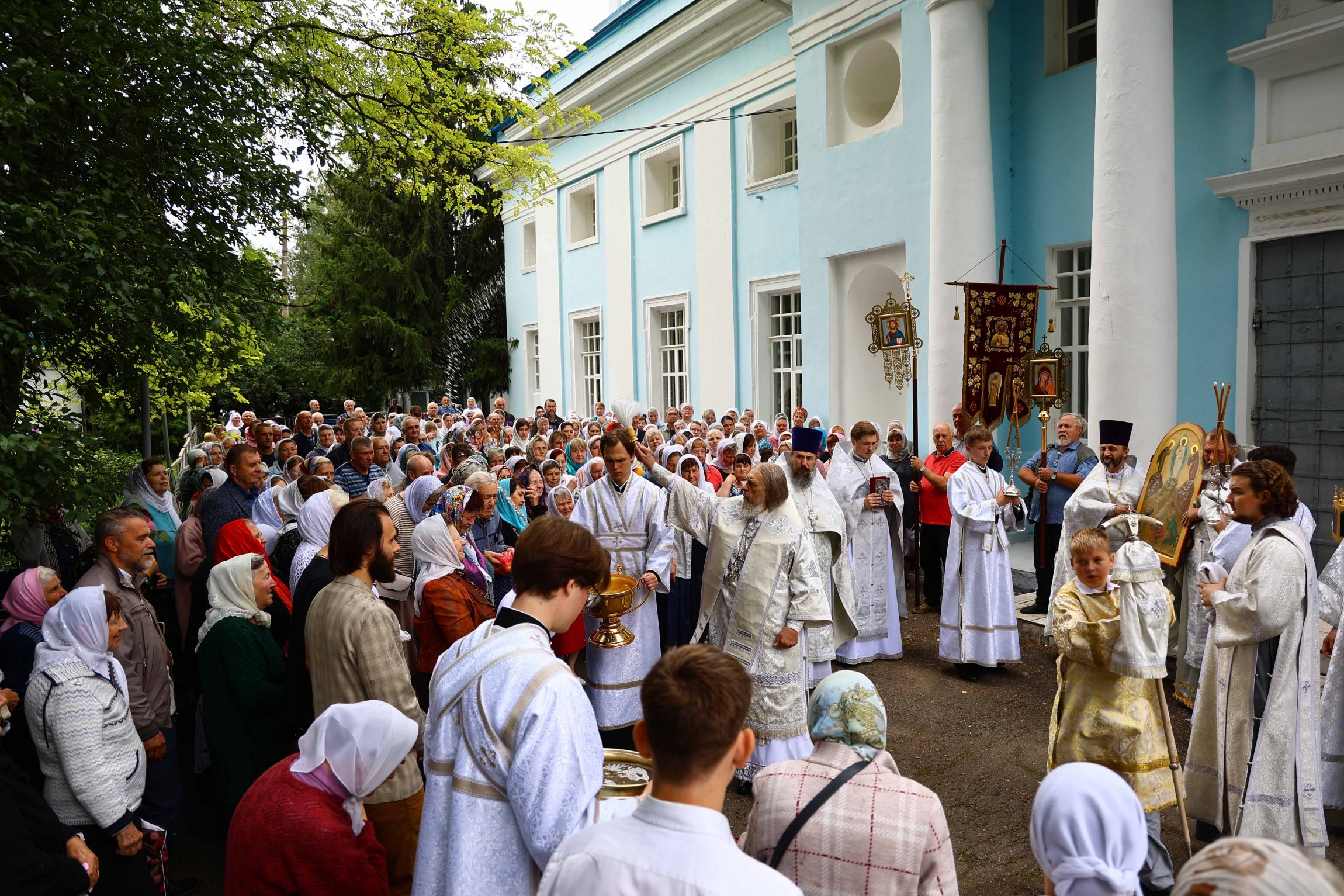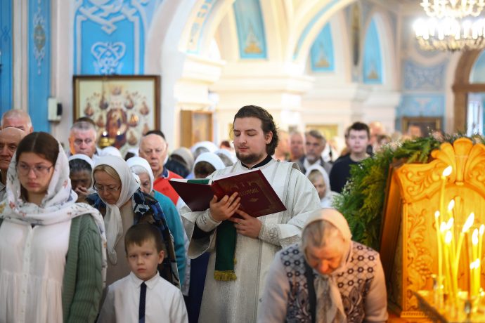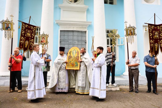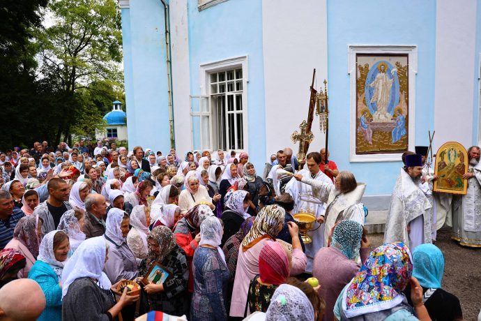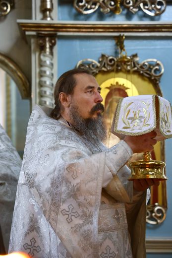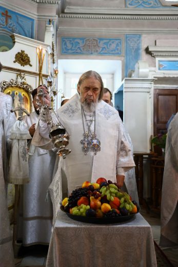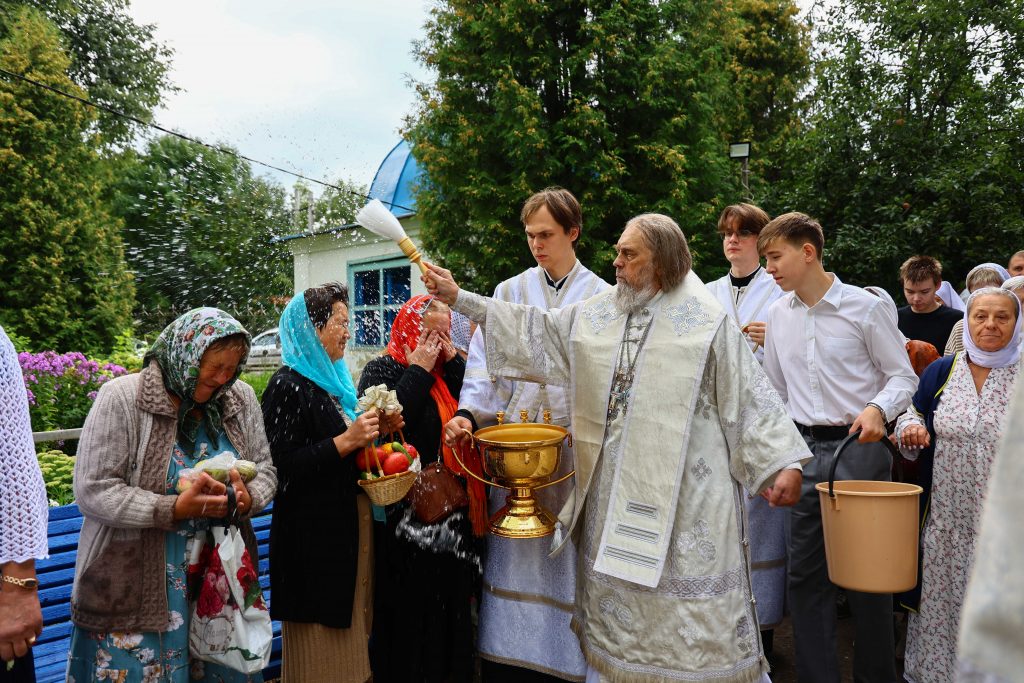 В день престольного праздника митрополит Тульский и Ефремовский Алексий совершил Божественную литургию, крестный ход и освящение свежих плодов в благодарность Богу за урожай в соименном храме города Донского в сослужении духовенства Новомосковского округа.