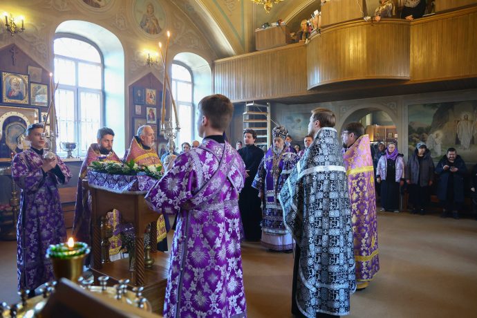Митрополит Тульский и Ефремовский Алексий совершил Литургию Преждеосвященных Даров и праздничный молебен в храме Серафима Саровского в Туле.