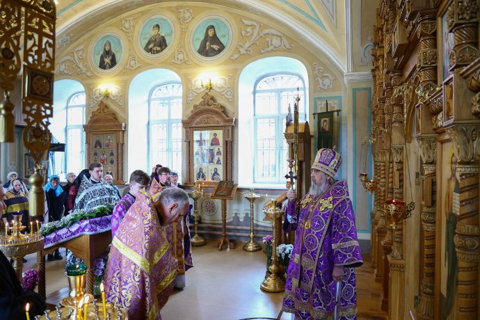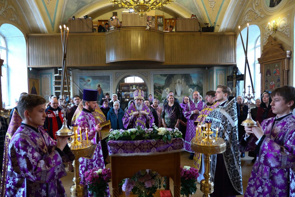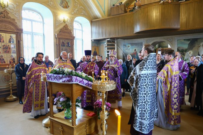 Митрополит Тульский и Ефремовский Алексий совершил Литургию Преждеосвященных Даров и праздничный молебен в храме Серафима Саровского в Туле.