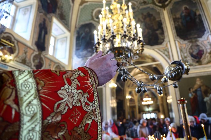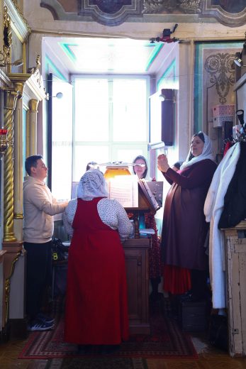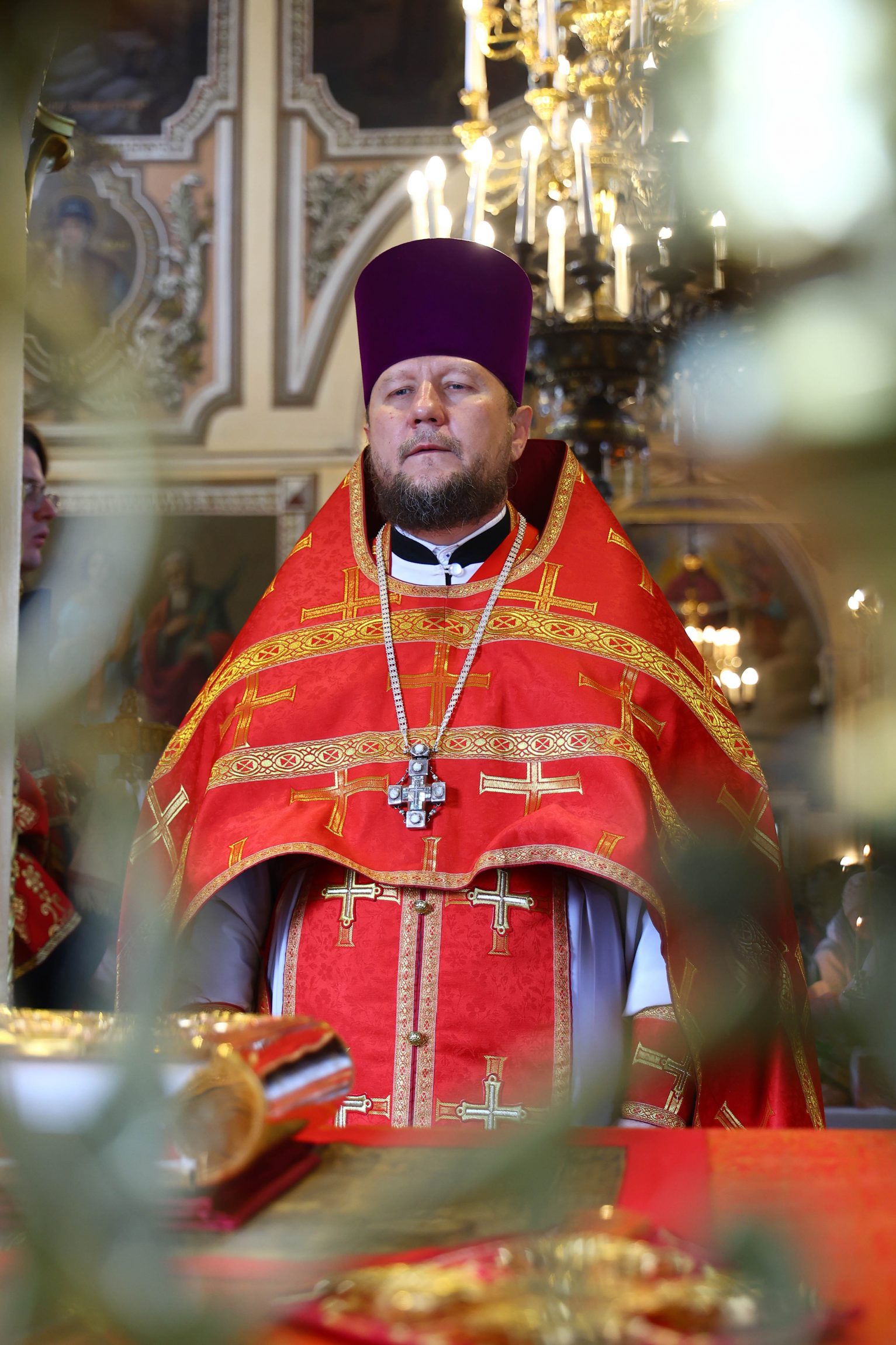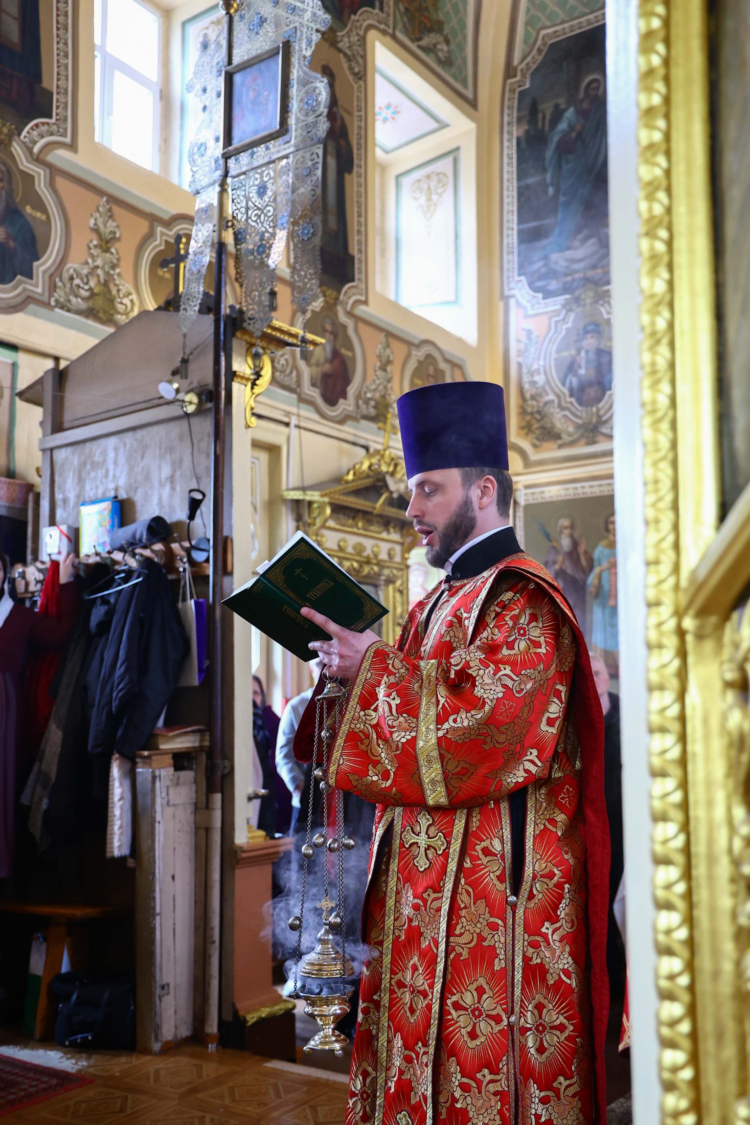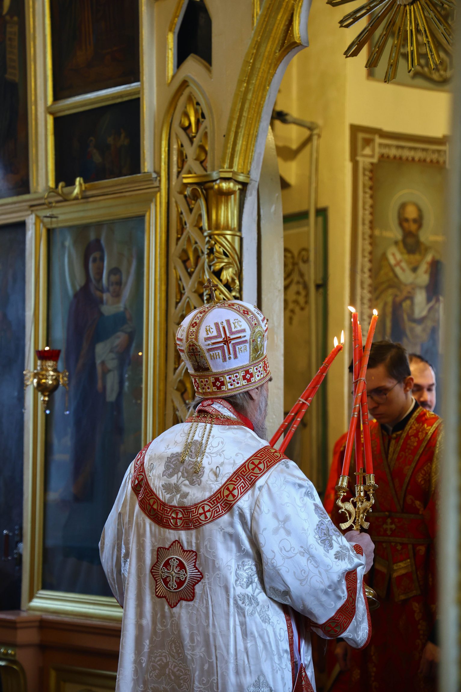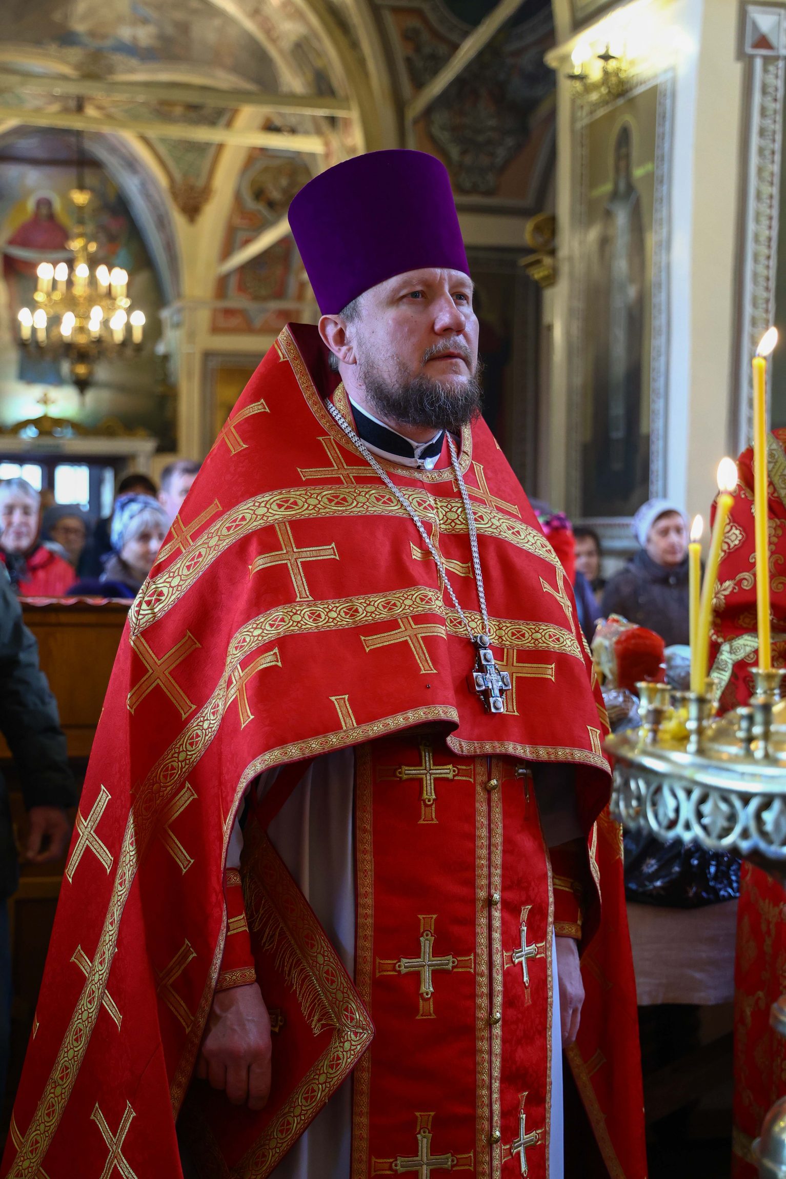 На сугубой ектении вознесены молитвы о благопоспешении христолюбивому Российскому воинству в установлении мира в сию лихую годину, на Святую Русь нашедшую, о мире на Украине, а также о сохранении единства святого Православия.