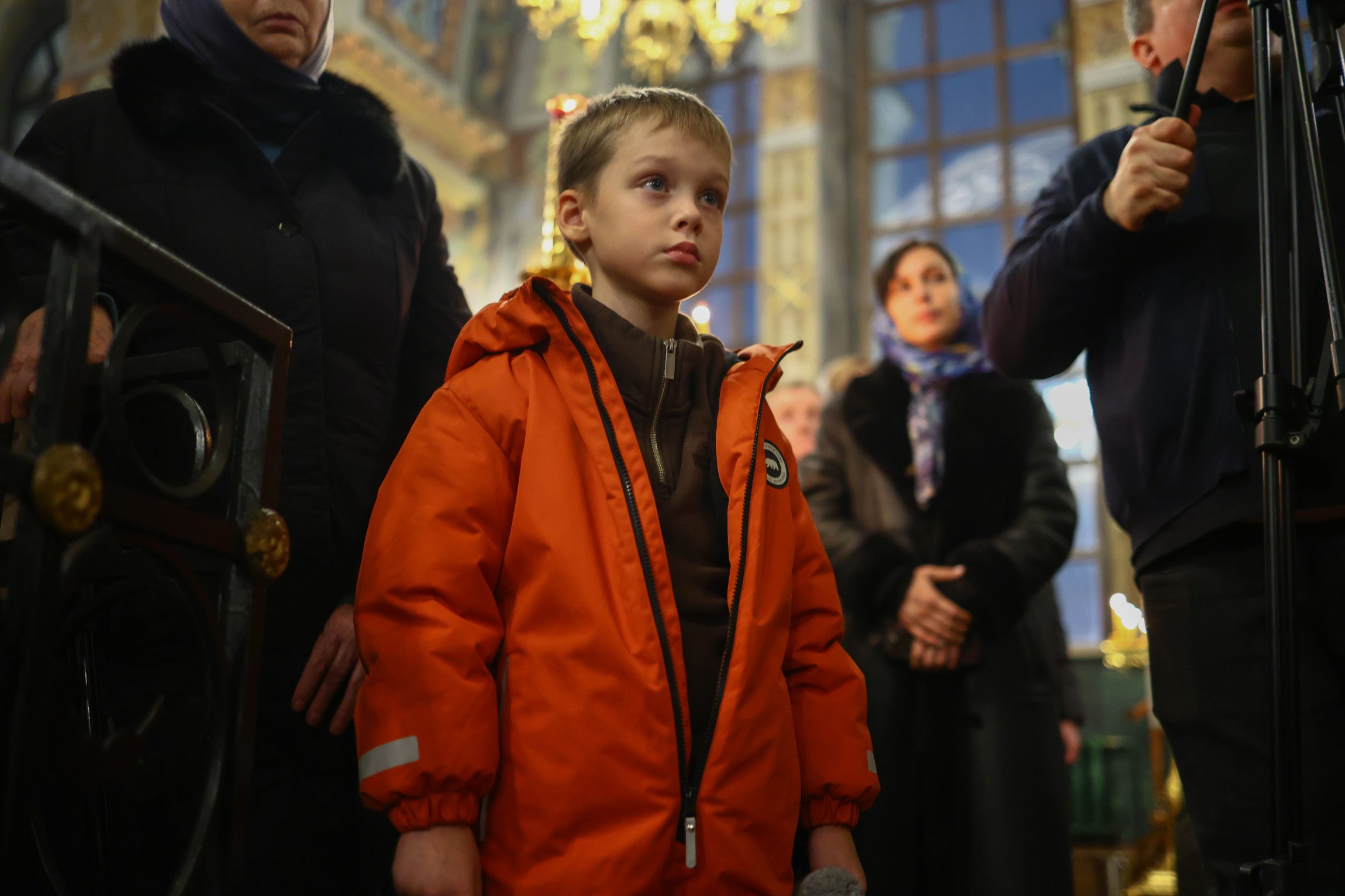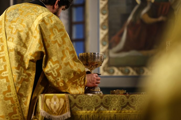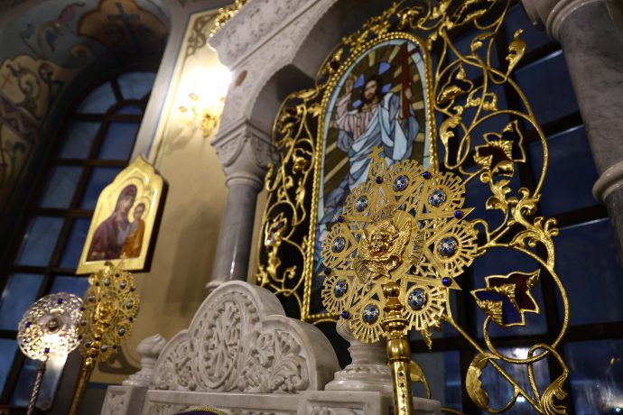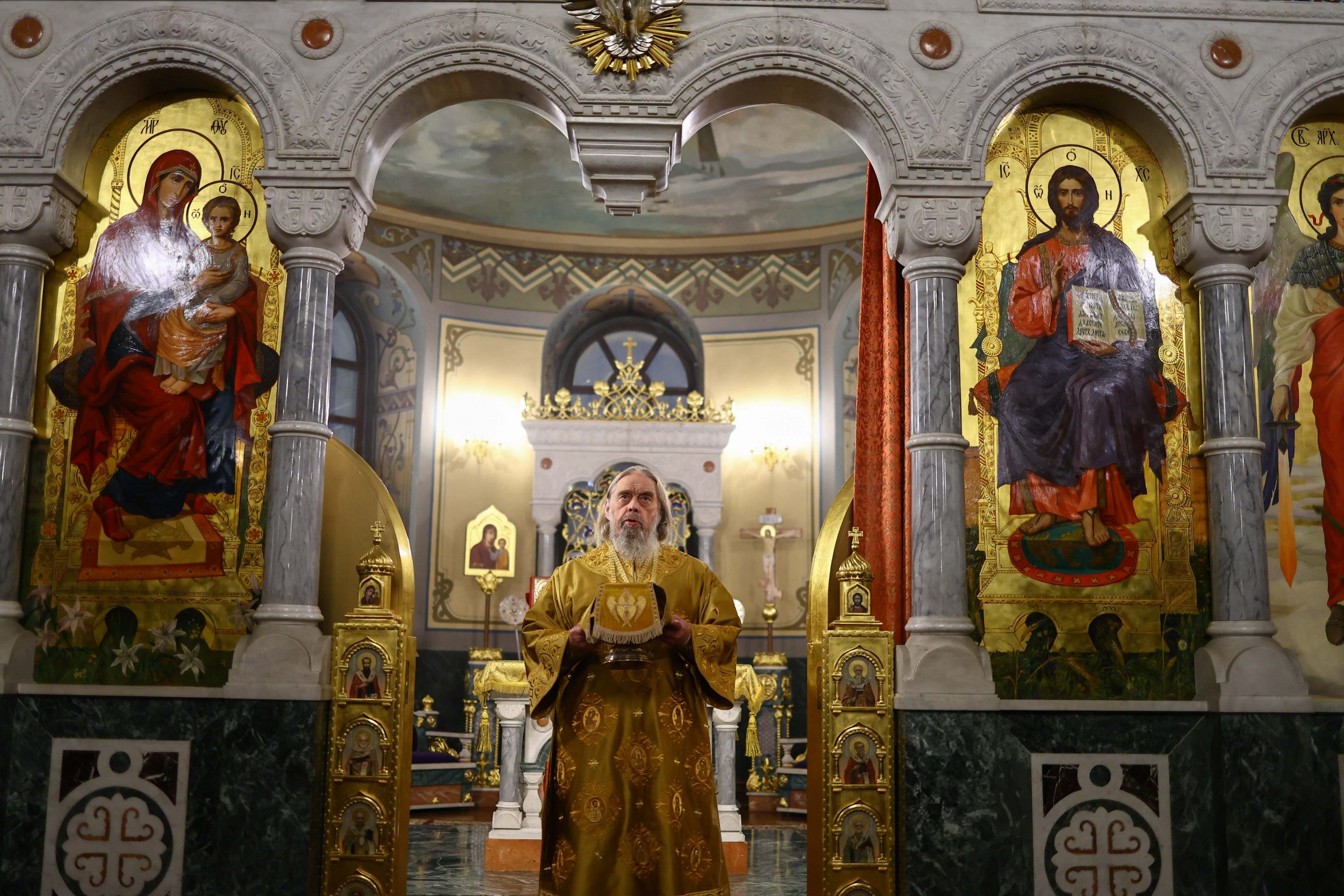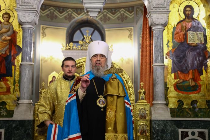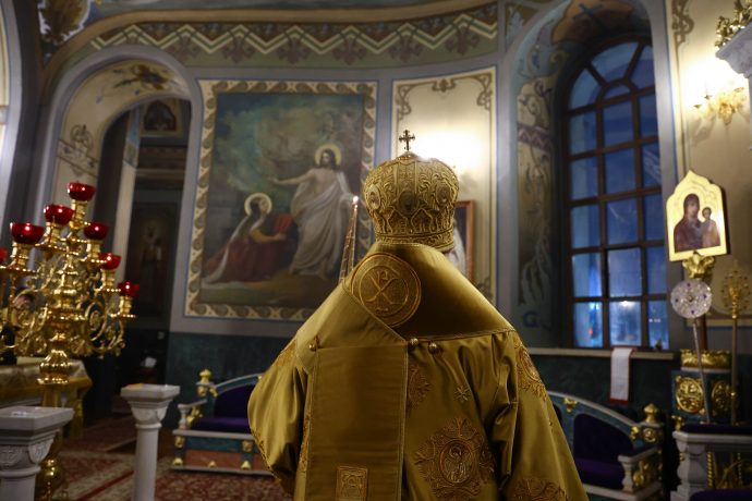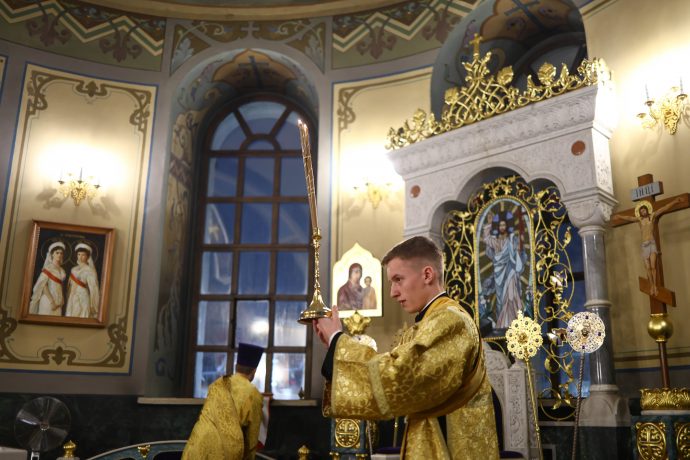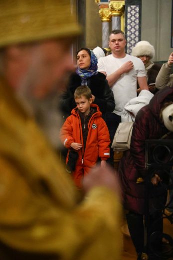 На сугубой ектении вознесены молитвы о благопоспешении христолюбивому Российскому воинству в установлении мира в сию лихую годину, на Святую Русь нашедшую, о мире на Украине, а также о сохранении единства святого Православия.