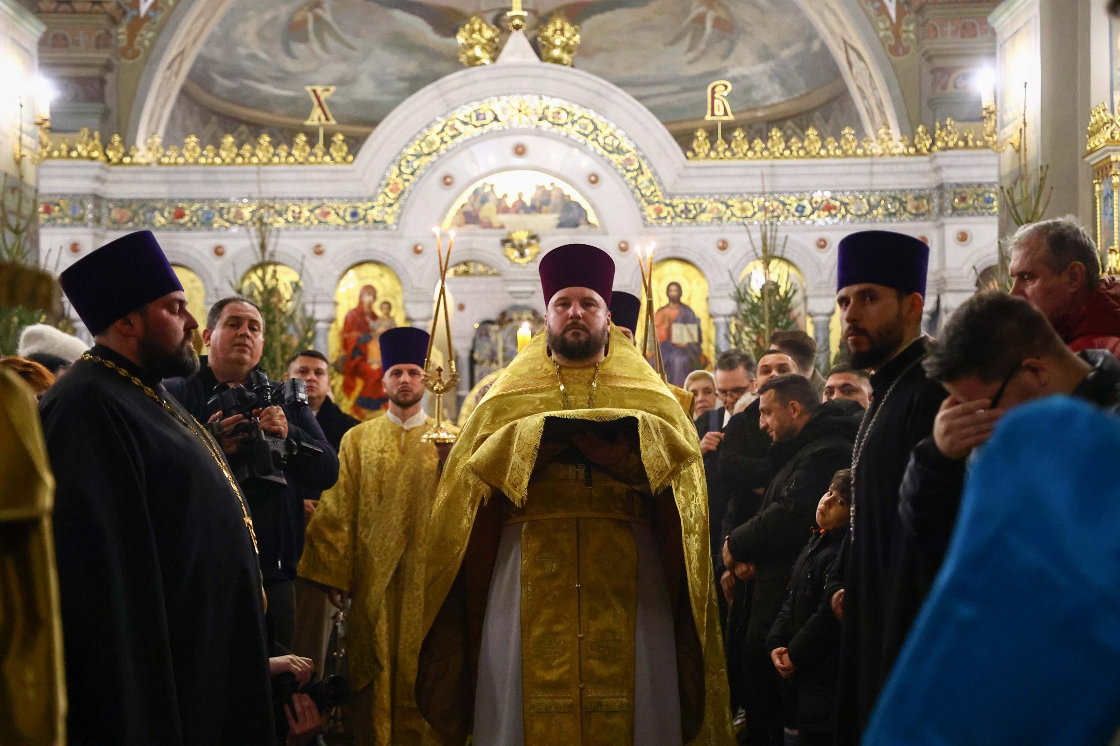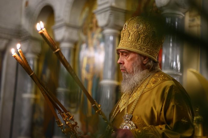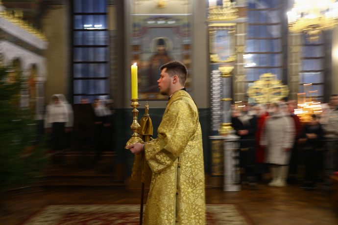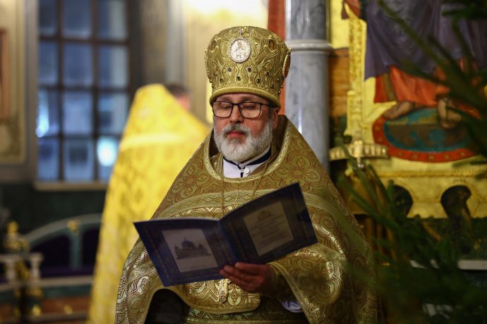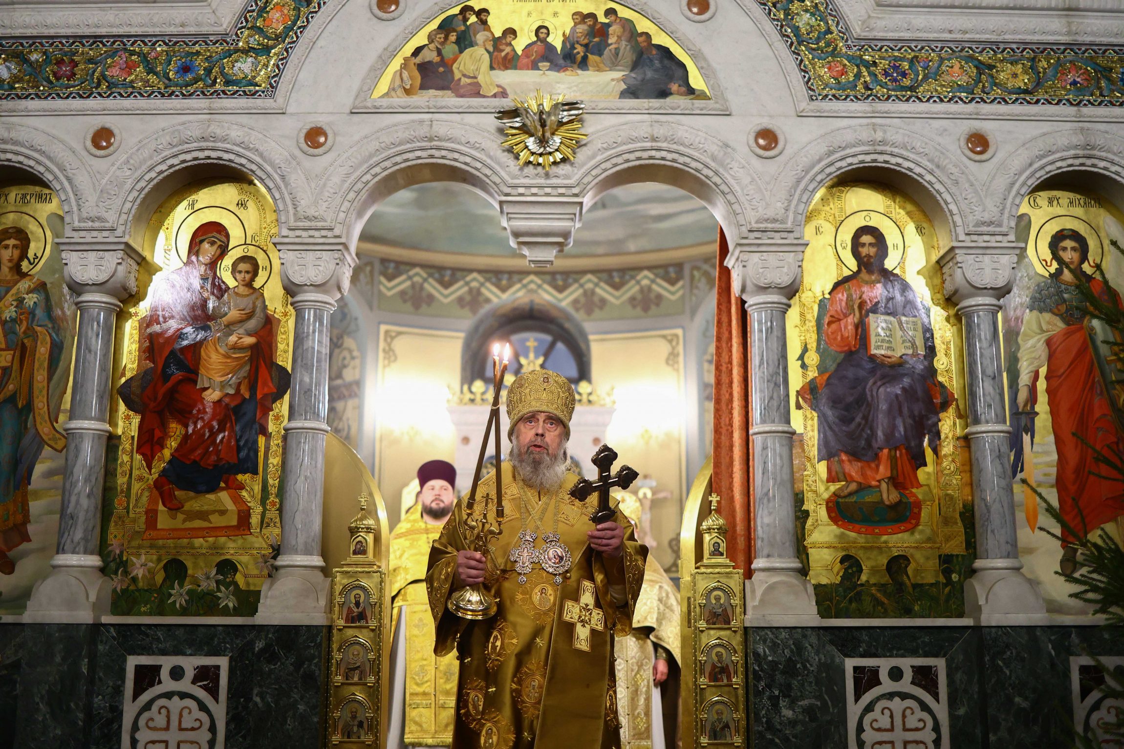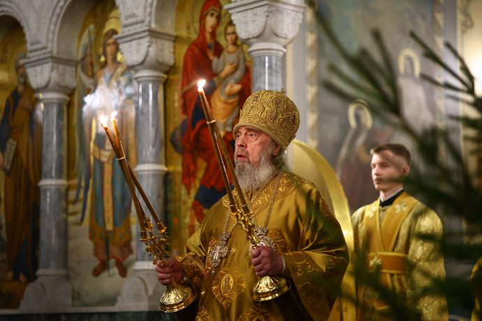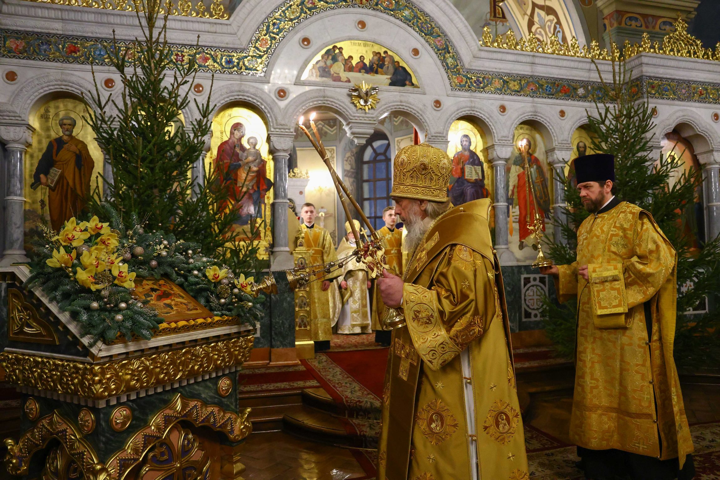 В Рождественскую ночь митрополит Тульский и Ефремовский Алексий совершил Божественную литургию в Успенском кафедральном соборе города Тулы в сослужении соборного духовенства.