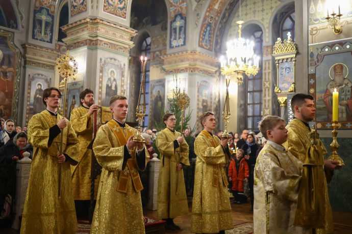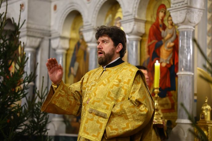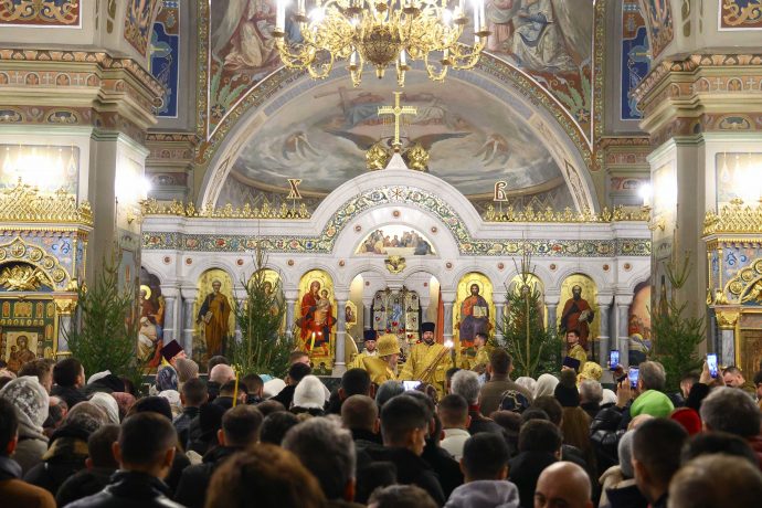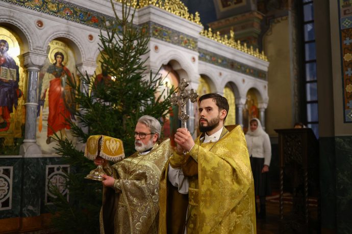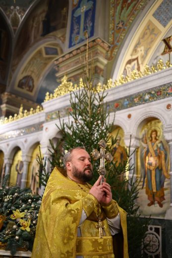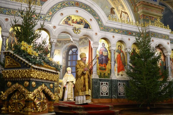 По окончании богослужения совершено славление празднику Рождества Христова.