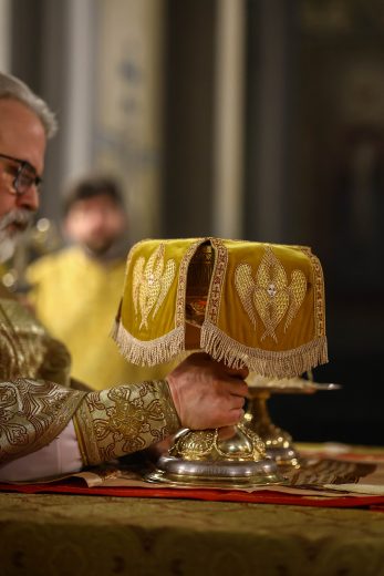 По запричастном стихе настоятель собора протоиерей Сергий Резухин огласил Рождественское послание Патриарха Московского и всея Руси Кирилла архипастырям, пастырям, диаконам, монашествующим и всем верным чадам Русской Православной Церкви, по завершении которого Его Святейшеству возглашено многолетие.