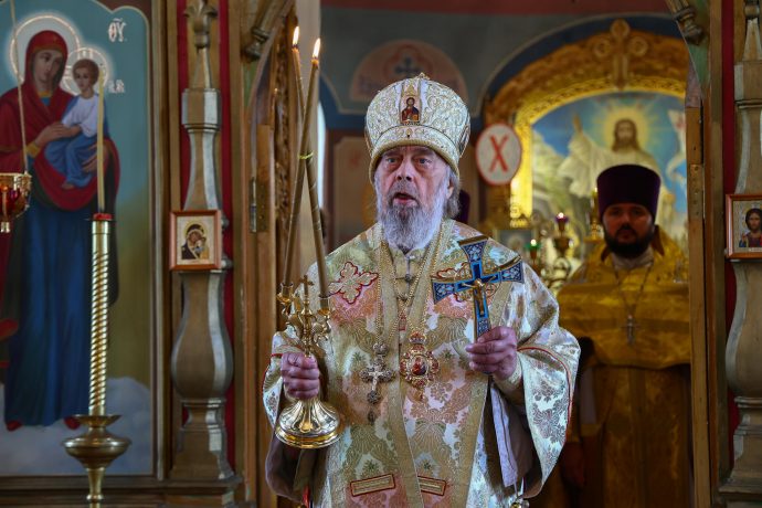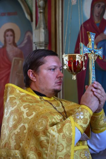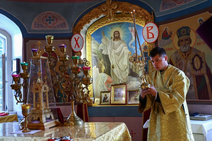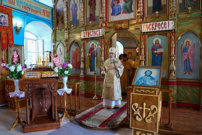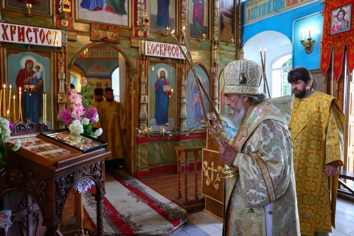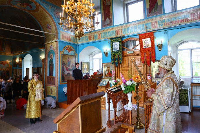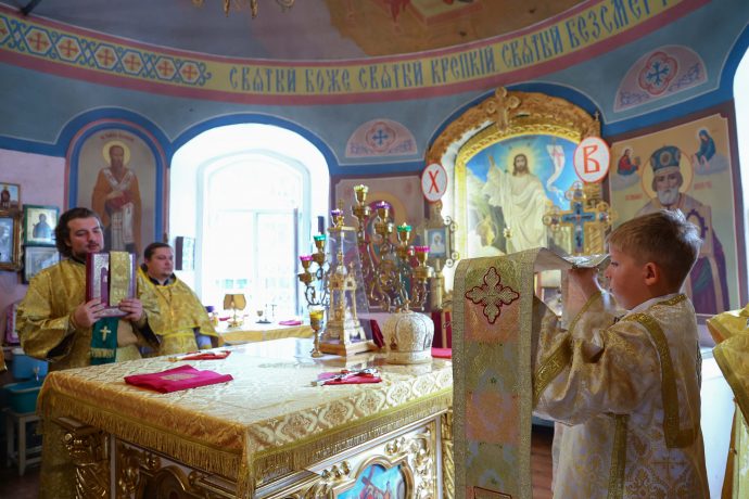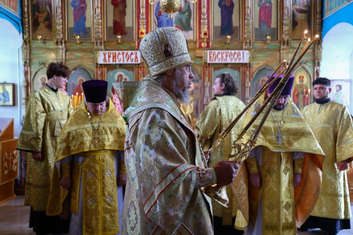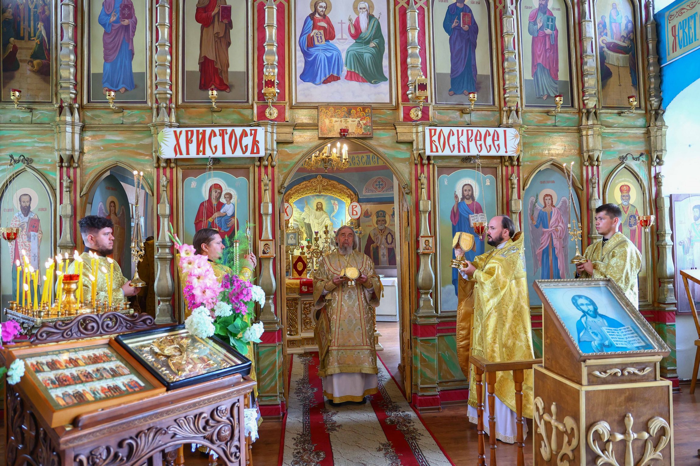 На сугубой ектении вознесены молитвы о благопоспешении христолюбивому Российскому воинству в установлении мира в сию лихую годину, на Святую Русь нашедшую, о мире на Украине, а также о сохранении единства святого Православия.