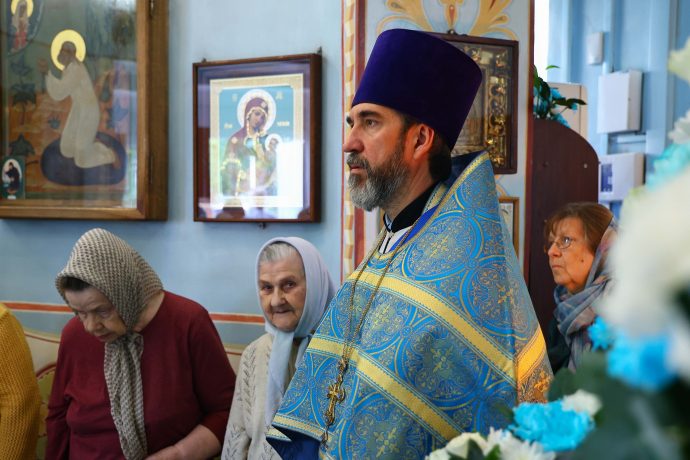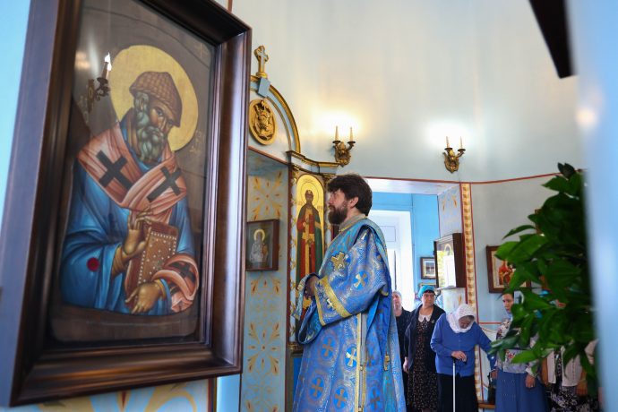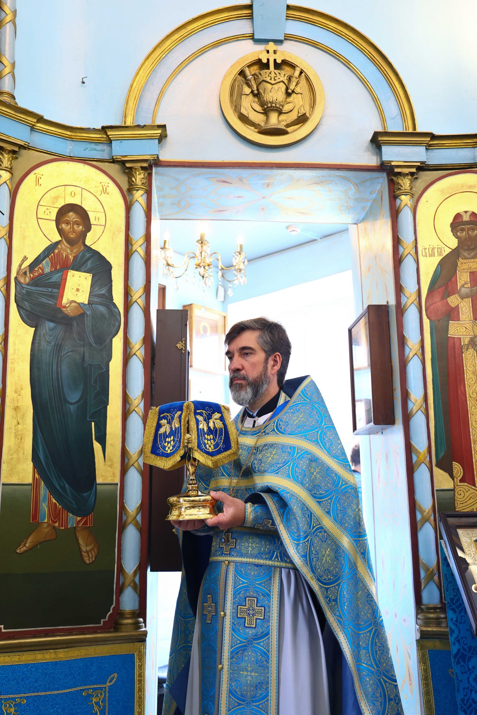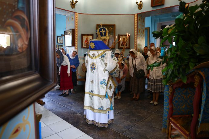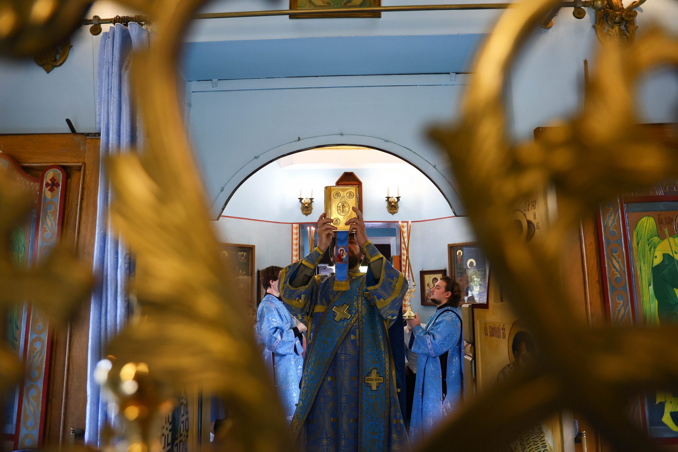 На сугубой ектении вознесены молитвы о благопоспешении христолюбивому Российскому воинству в установлении мира в сию лихую годину, на Святую Русь нашедшую, о мире на Украине, а также о сохранении единства святого Православия.